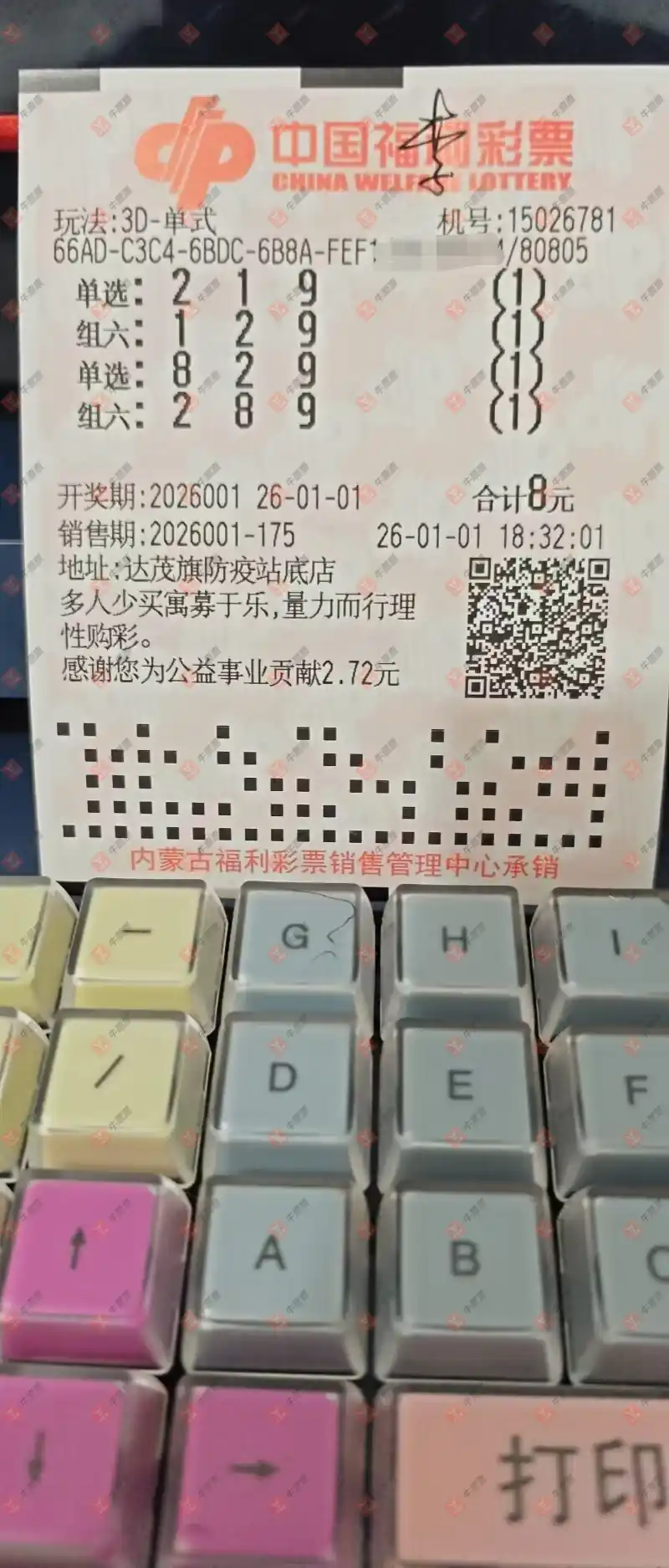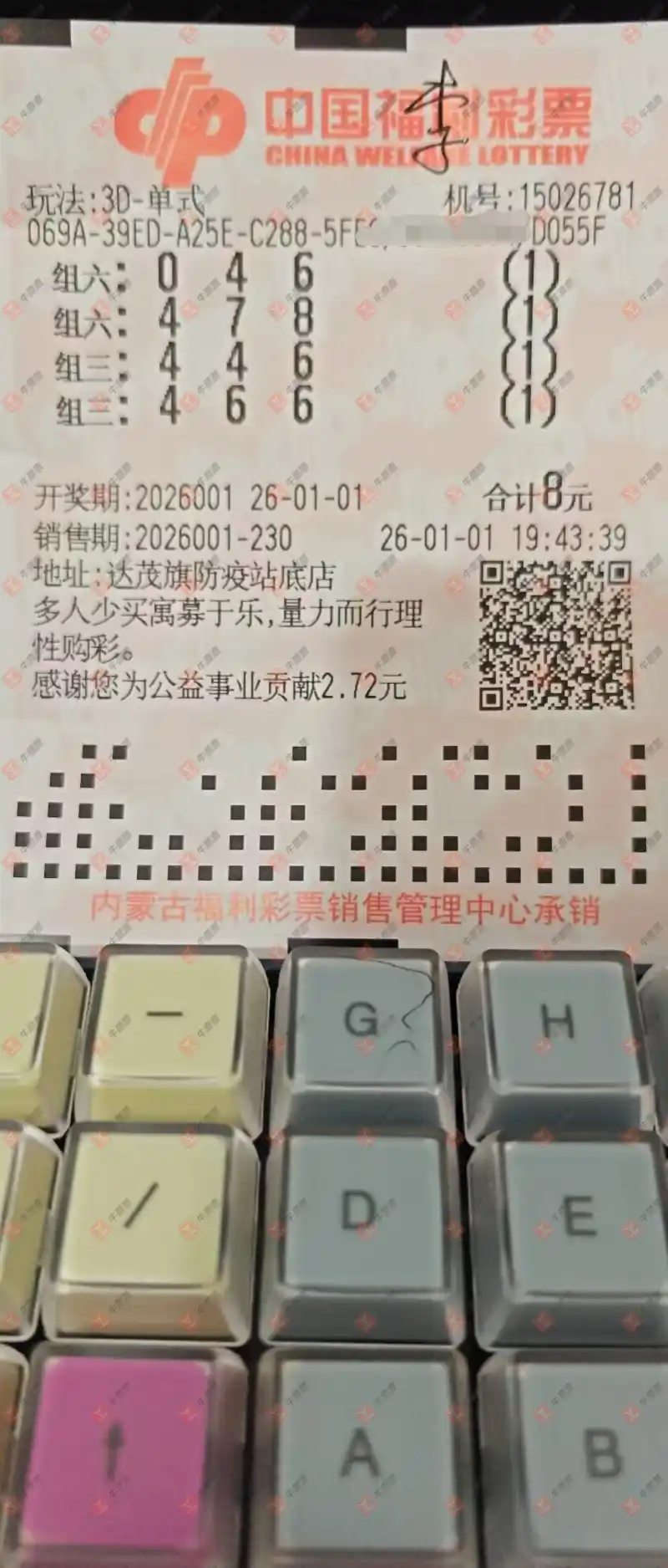 福彩3D 2026001期