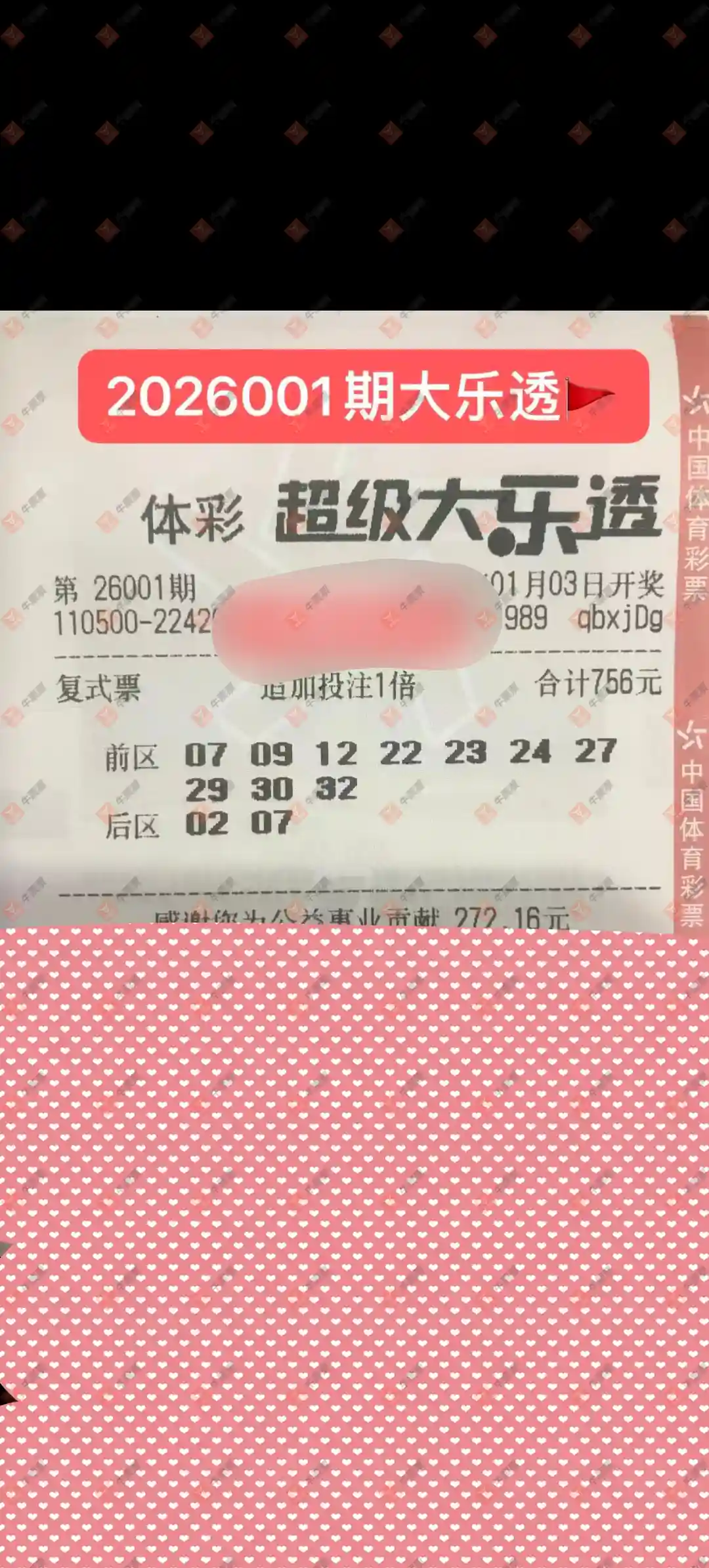 这是合资票 24个股份 一个人才分了1300多 中了9万多块钱