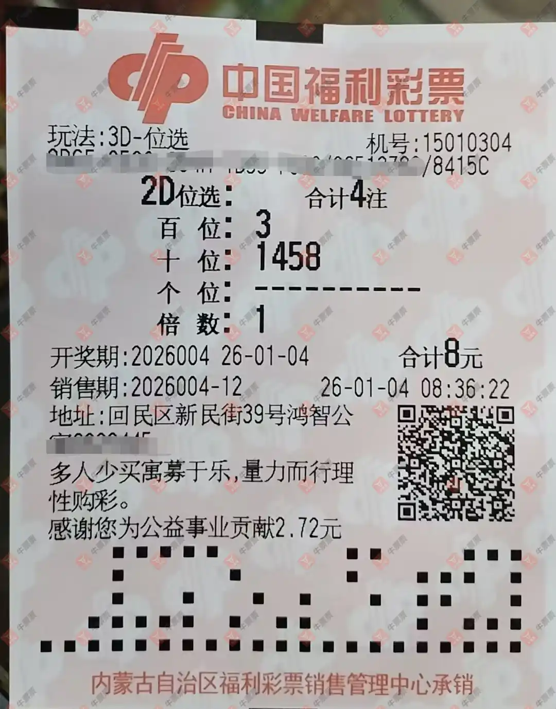 福彩3D 2026004期