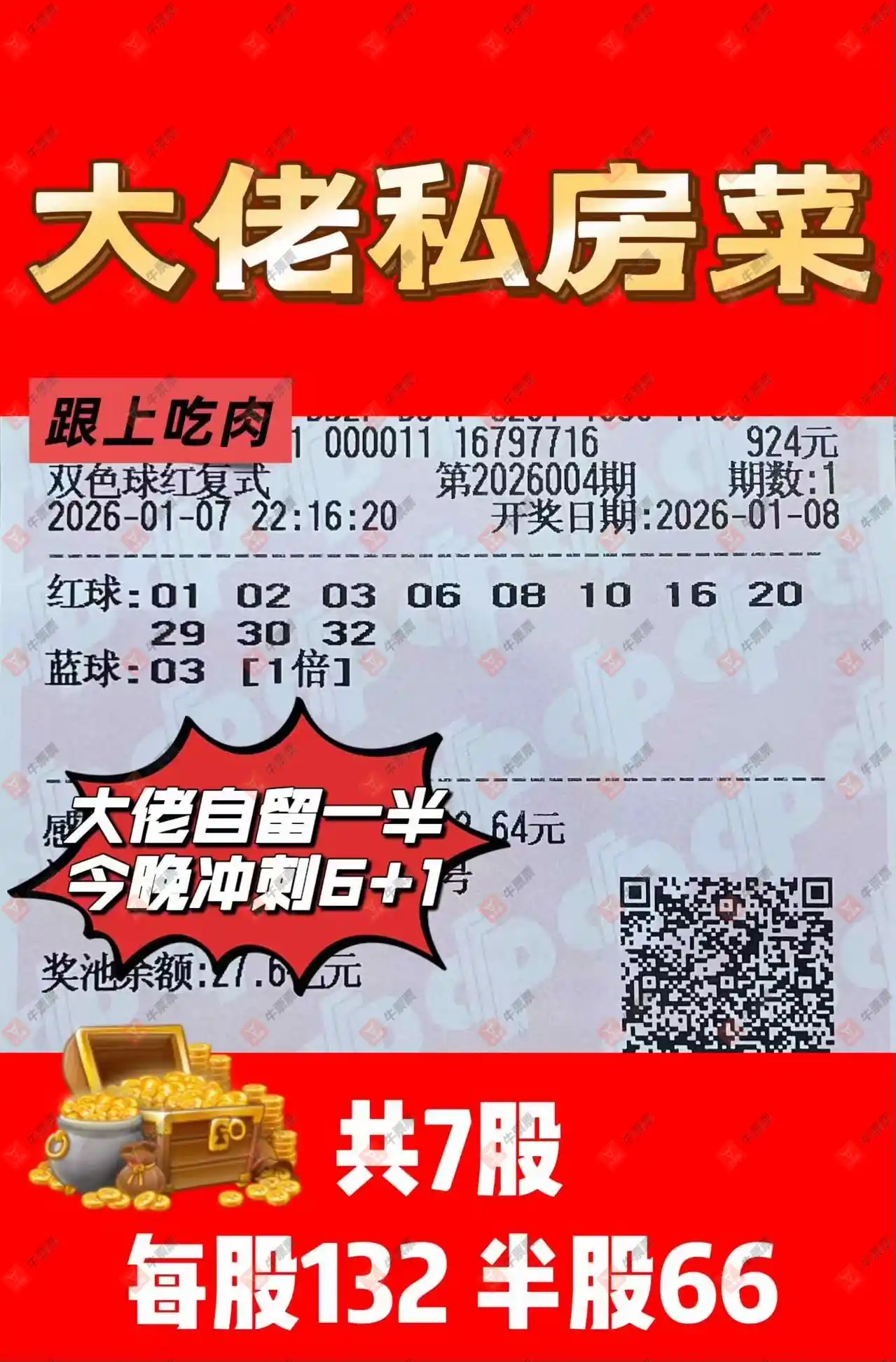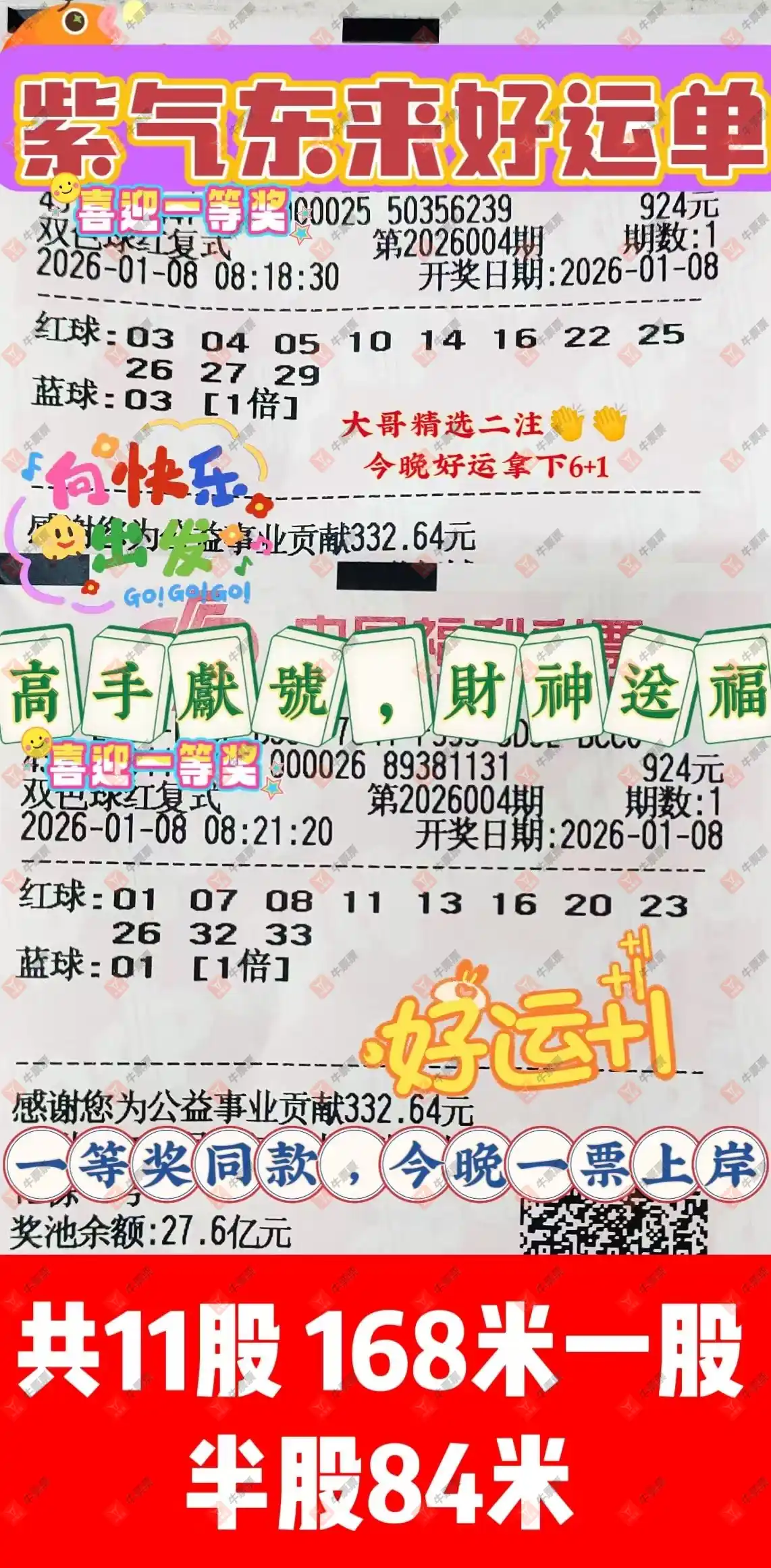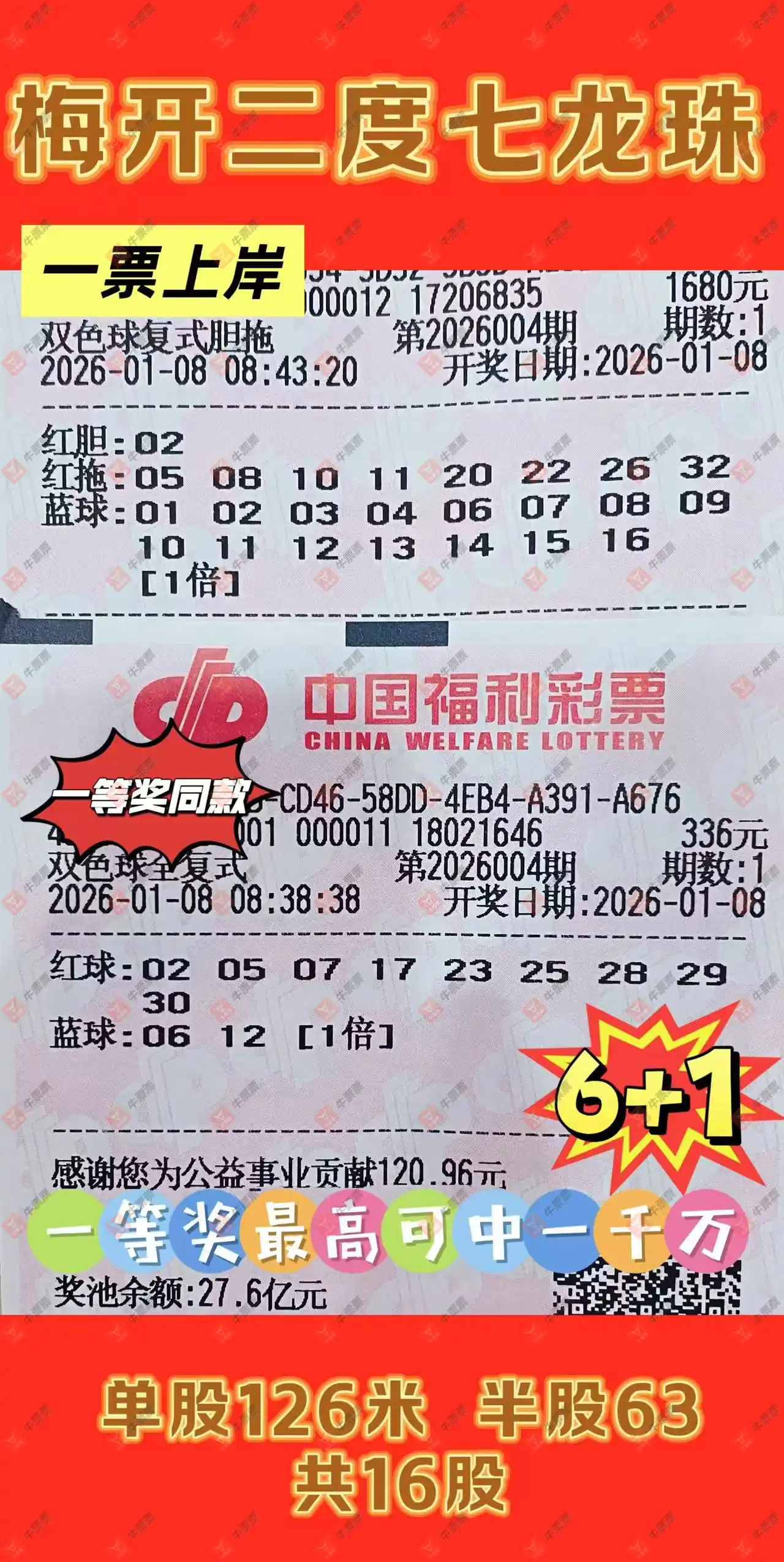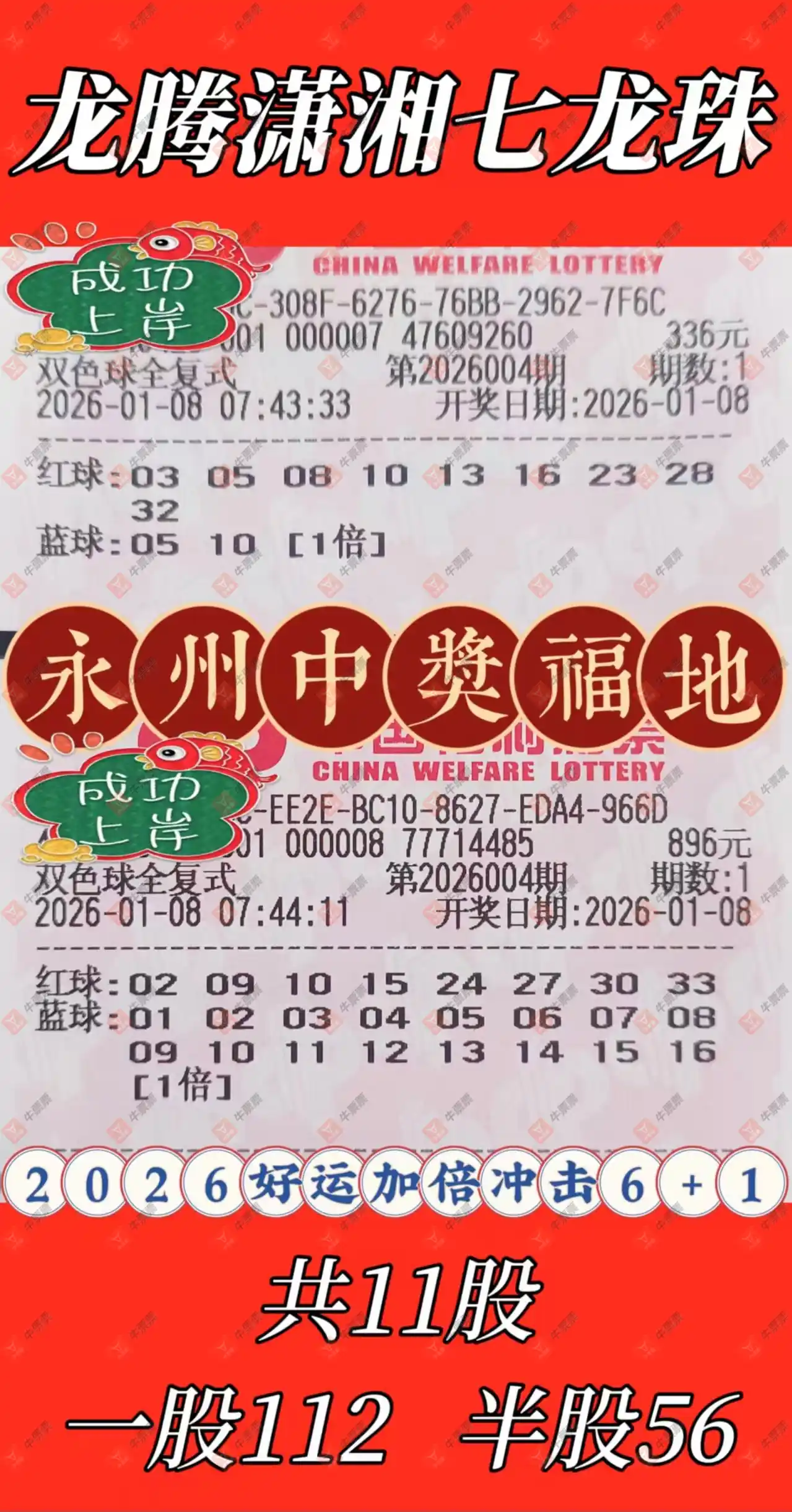 晒中004期双色球合买票