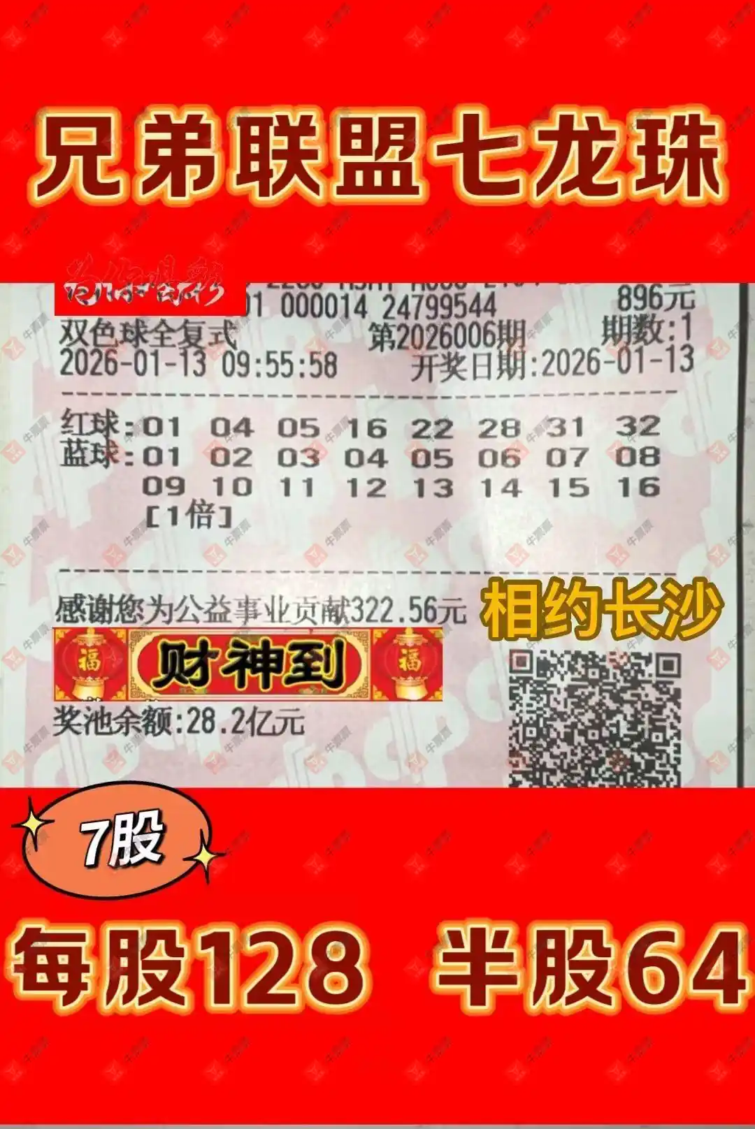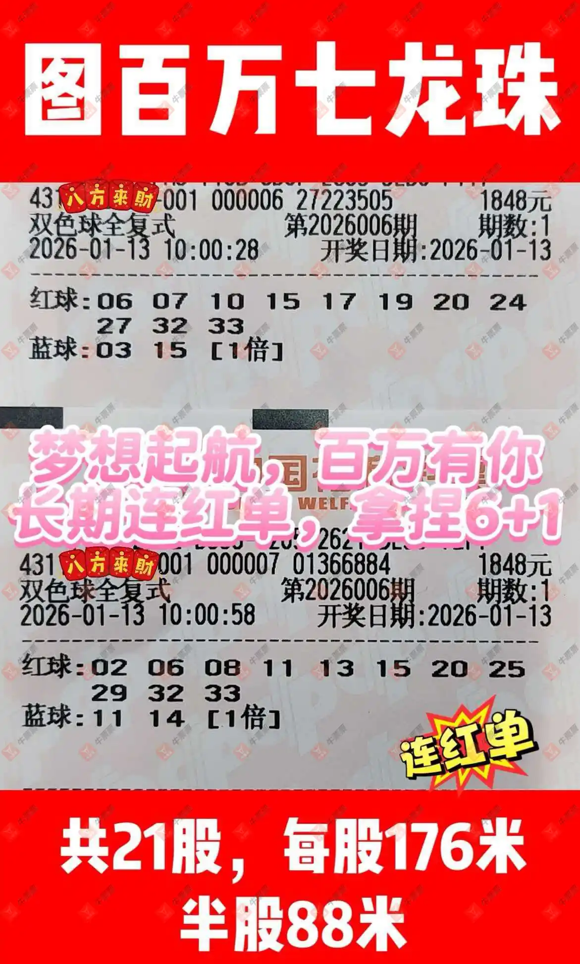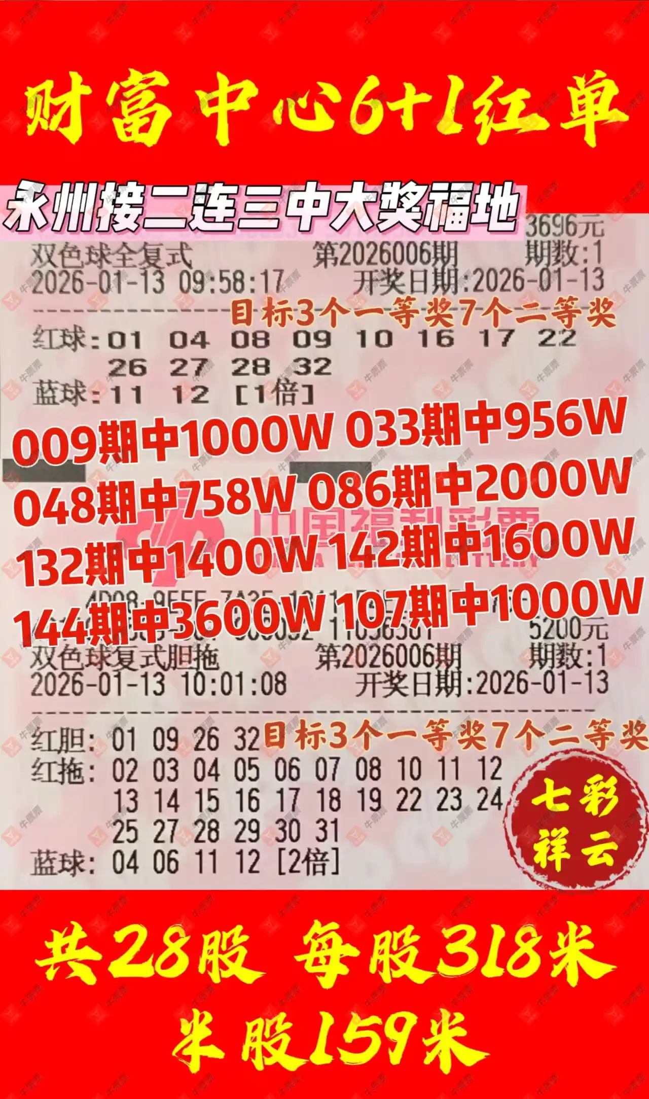 晒中006期双色球合买票