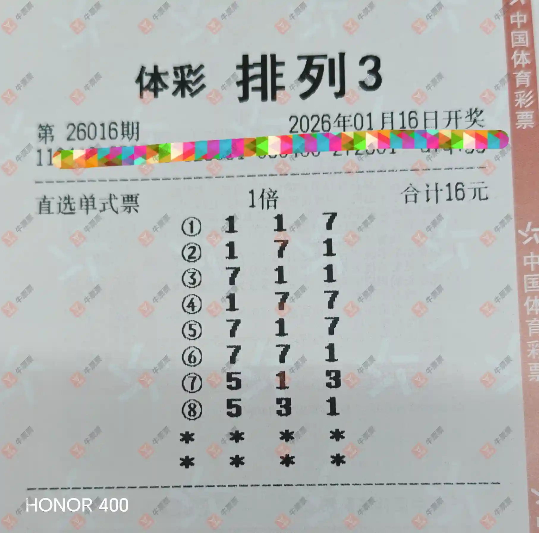 排列三 2026016期