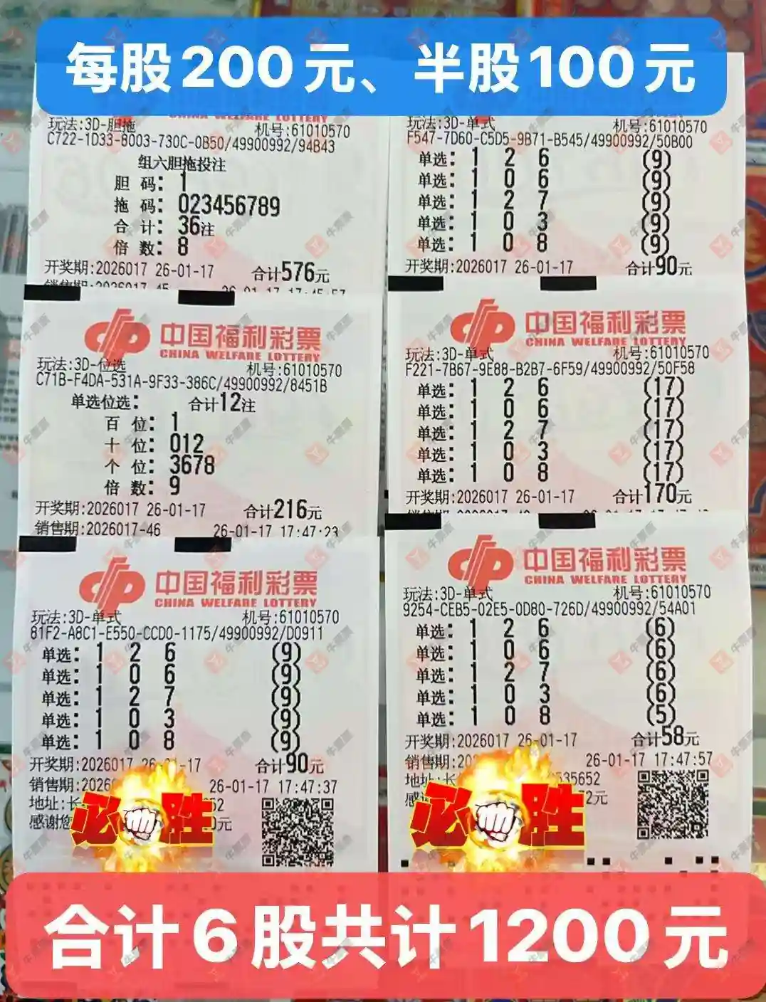 第三套陕西票独胆1组六全包,结合第一套湖南票百位独胆4,两码14 46 16注意避坑,注意单独1今夜成杀号。