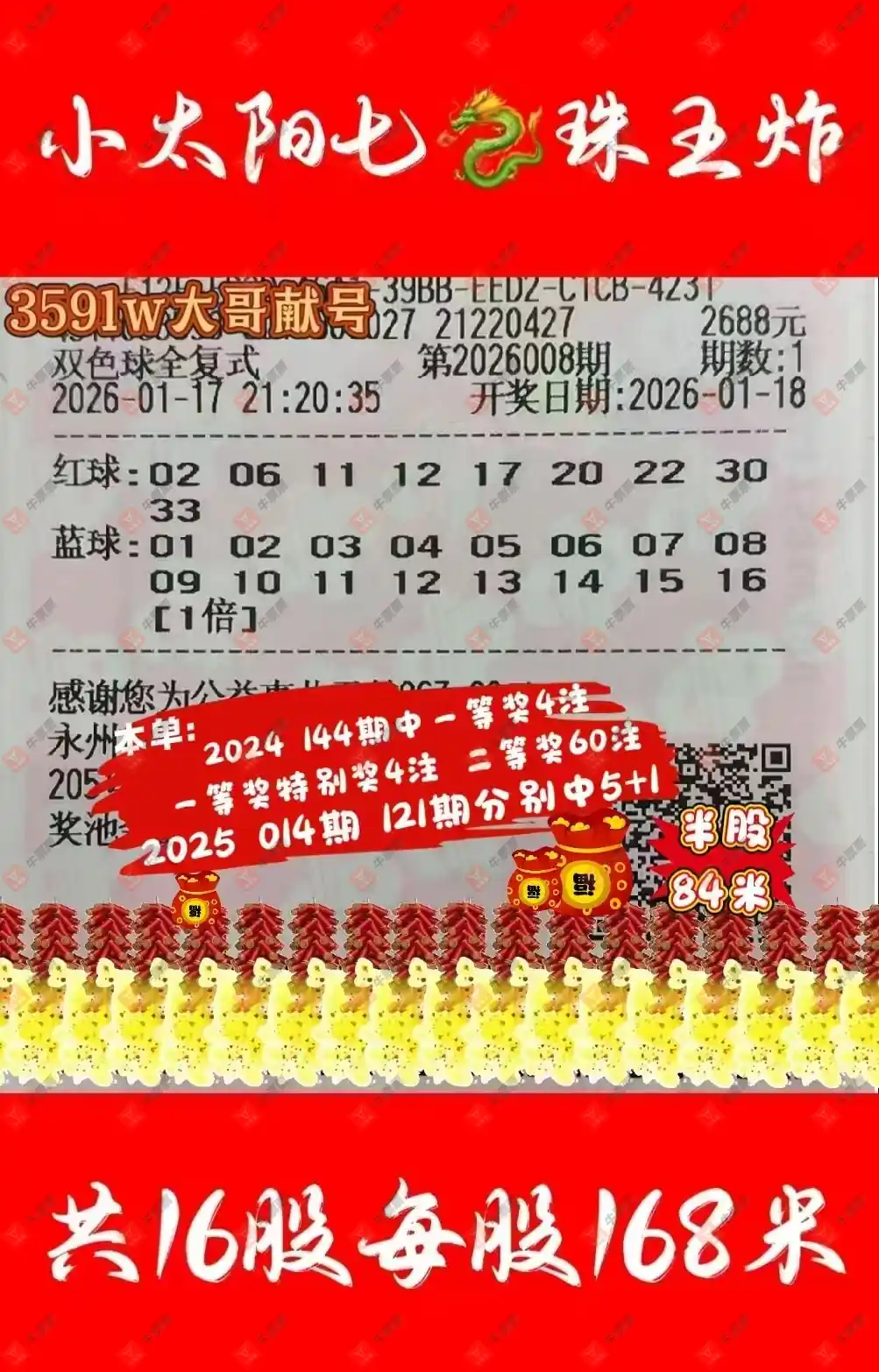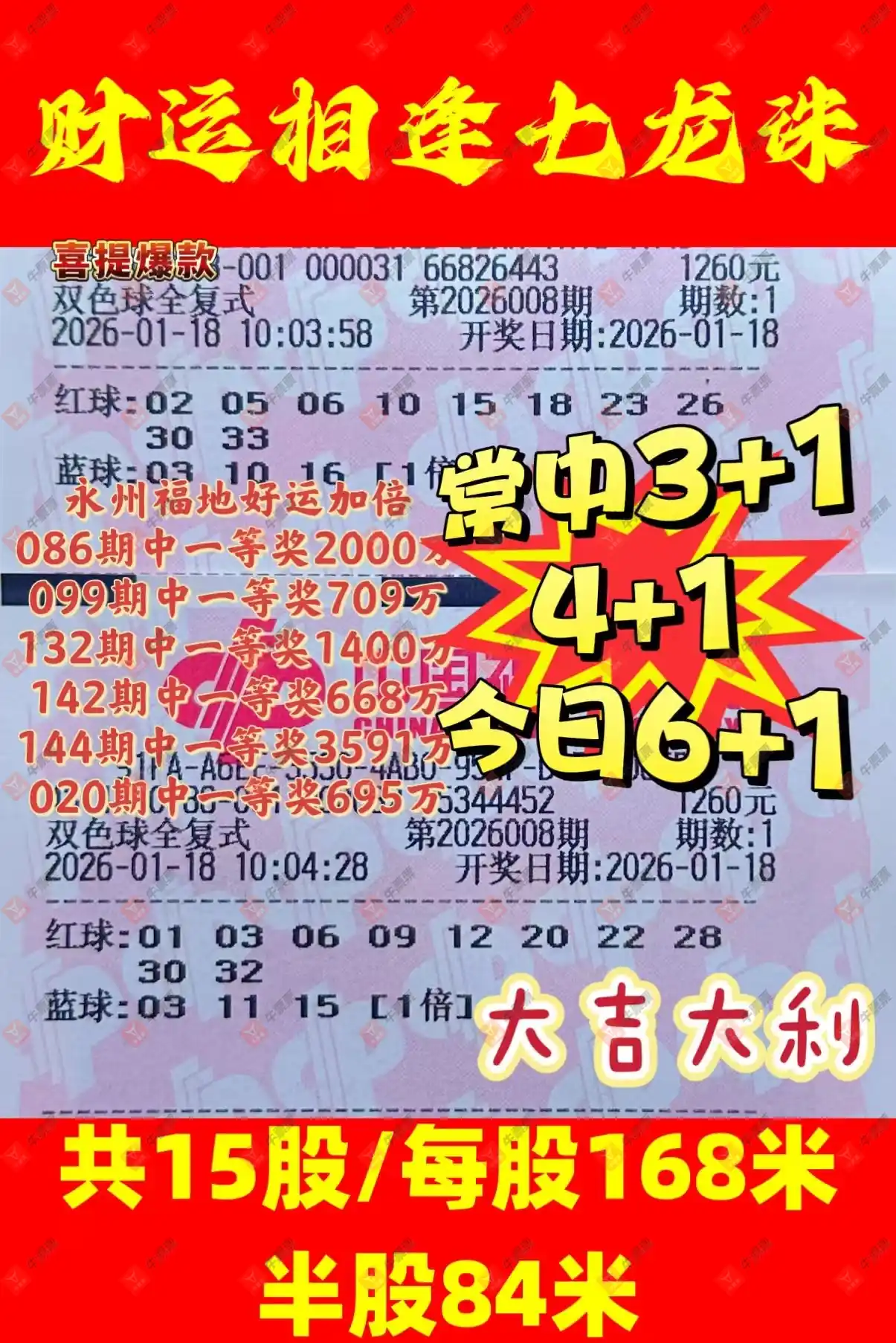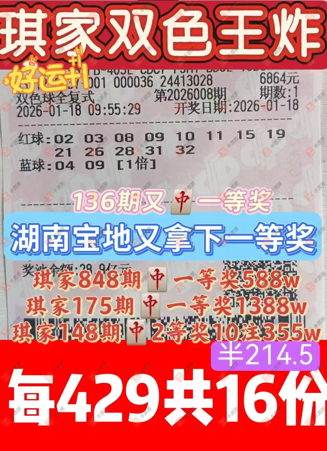 晒中008期双色球合买票参考