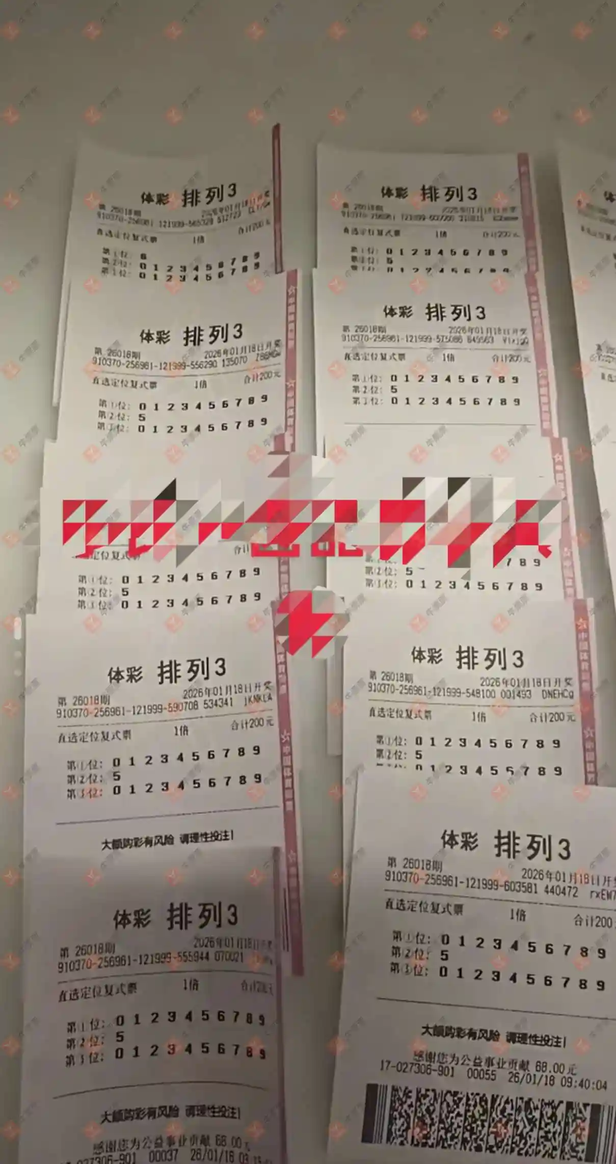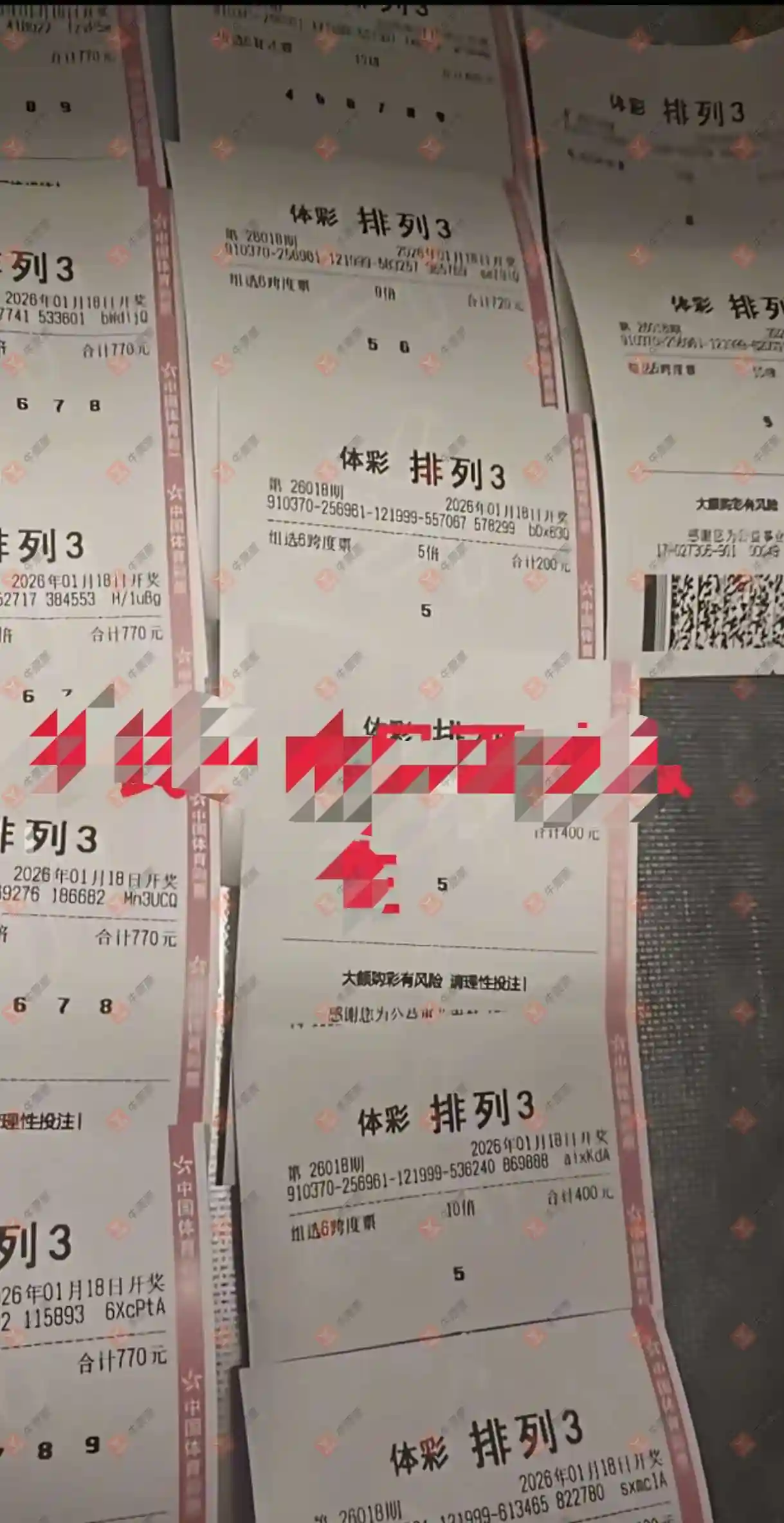 根据买不准原理分析:排三追号十位独胆5+偶偶奇定位+56跨度组六依旧进行中,估计继续盯着吃到底,而7码组六:3456789、2345678,杀号012、019又会蹦出哪个胆码?其中独胆3组六今天没看到票,是否一放弃就立马开奖?刺激不懂返奖率控制的人,以为继续买下去,一出票了还能中奖的错觉。第5张票两码判断胆码2估计是杀号。