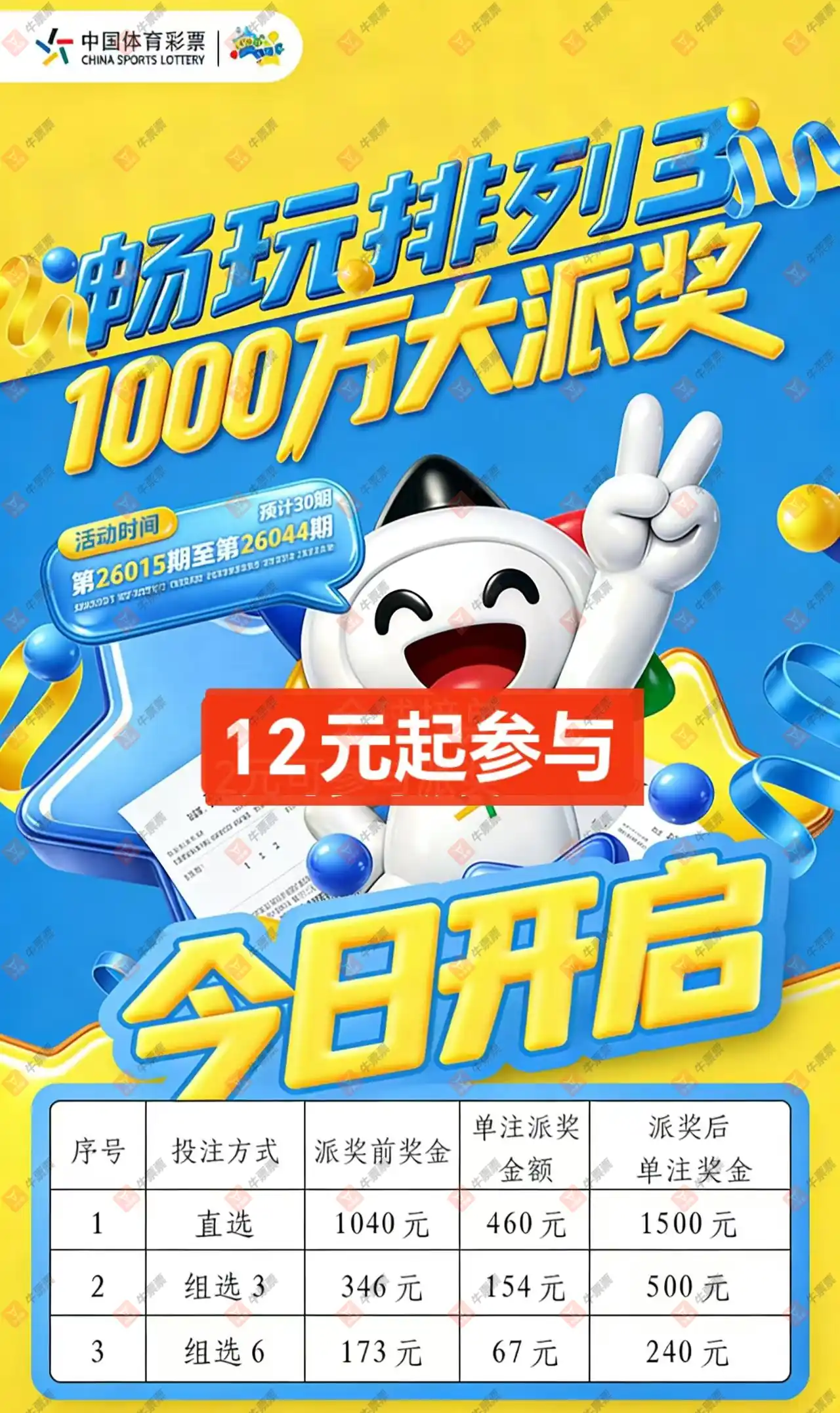 排三1000W大派奖,单张票满12元 🌷直选1040+460=1500 🌷组三346+154=500 🌷组六173+67=240, 实票参考可参与