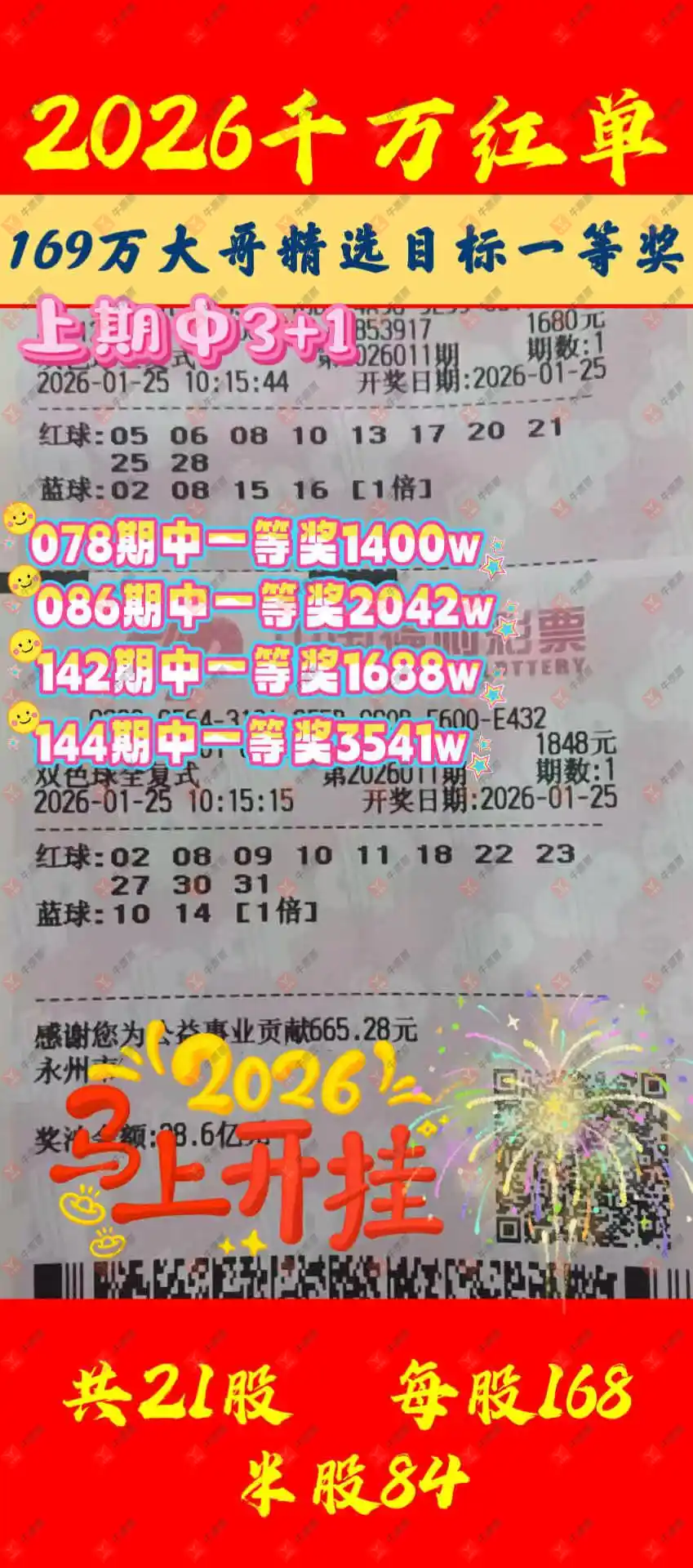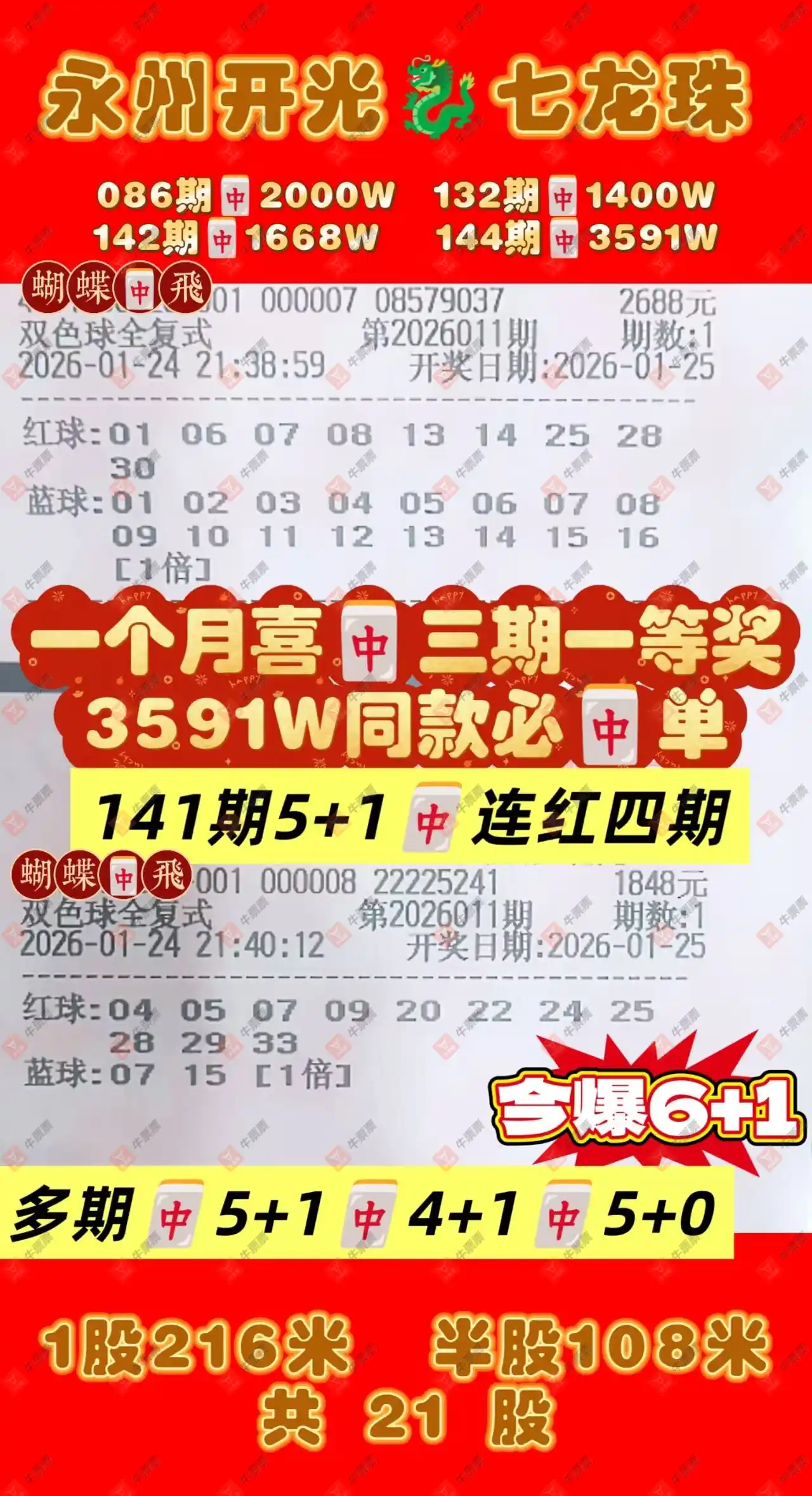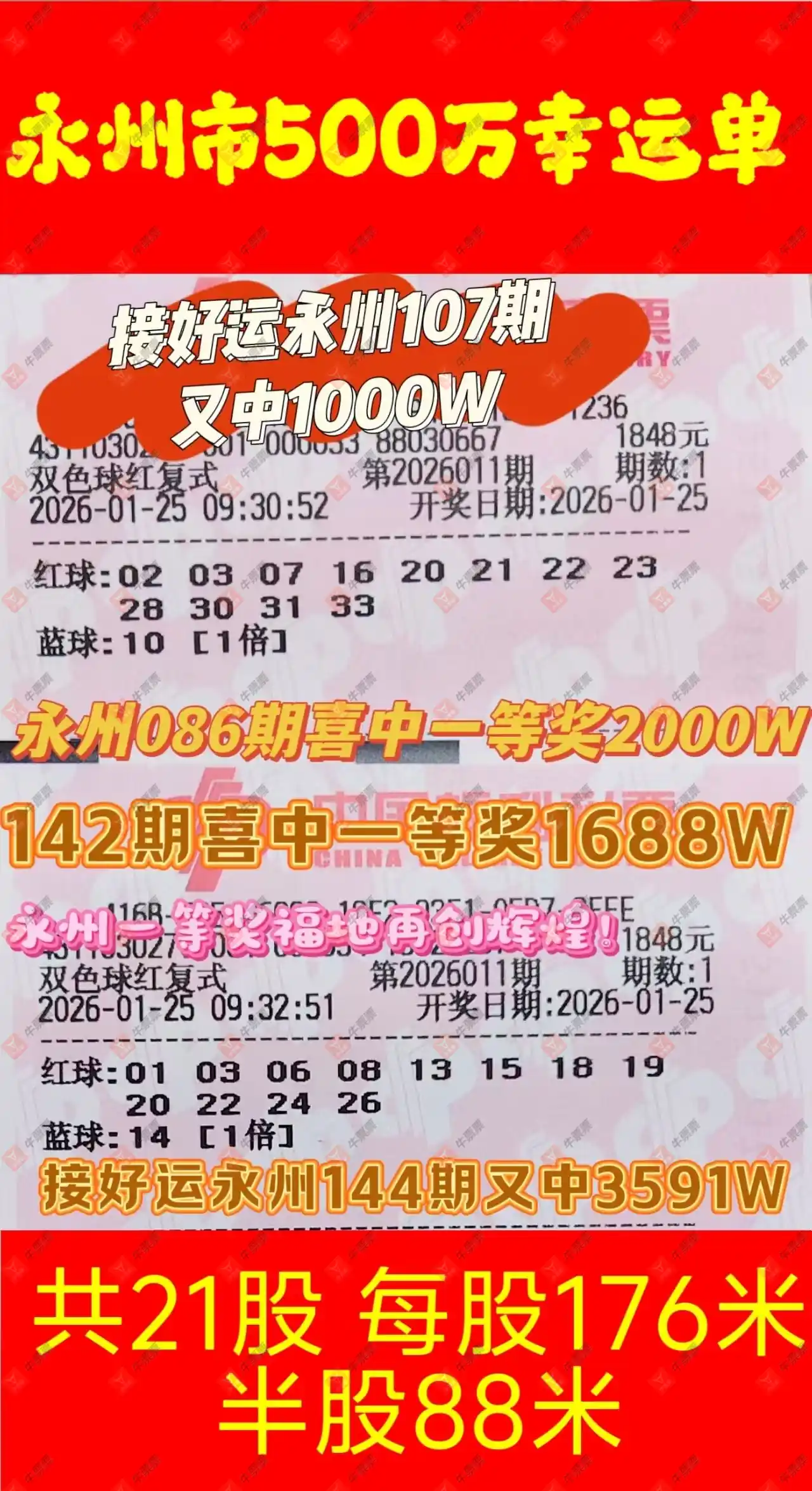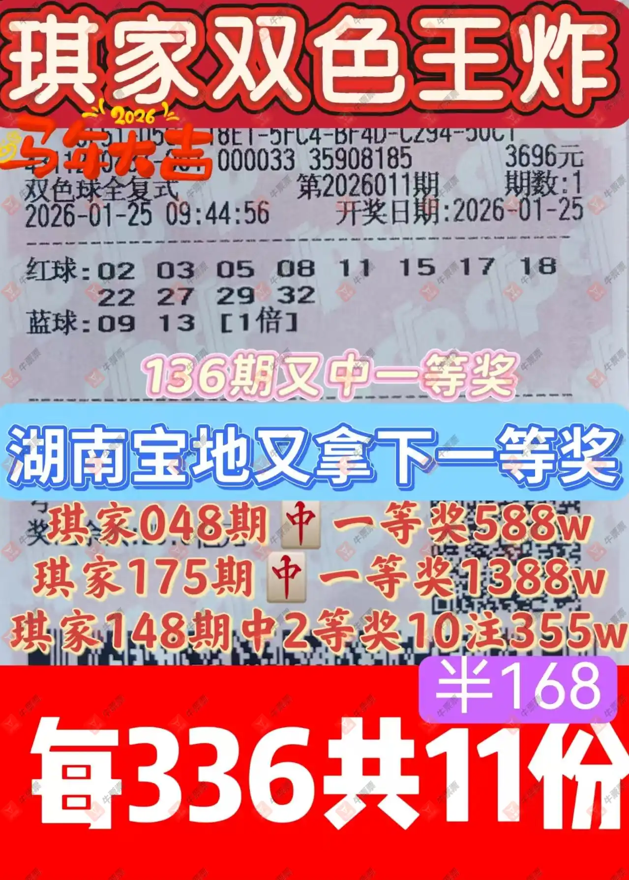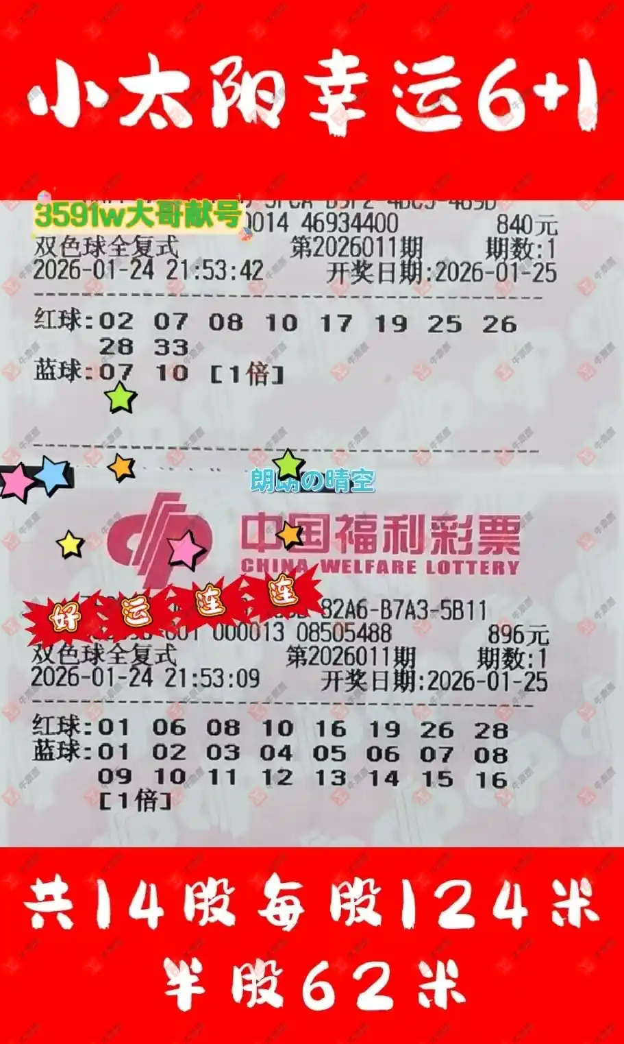 晒中011期双色球合买票