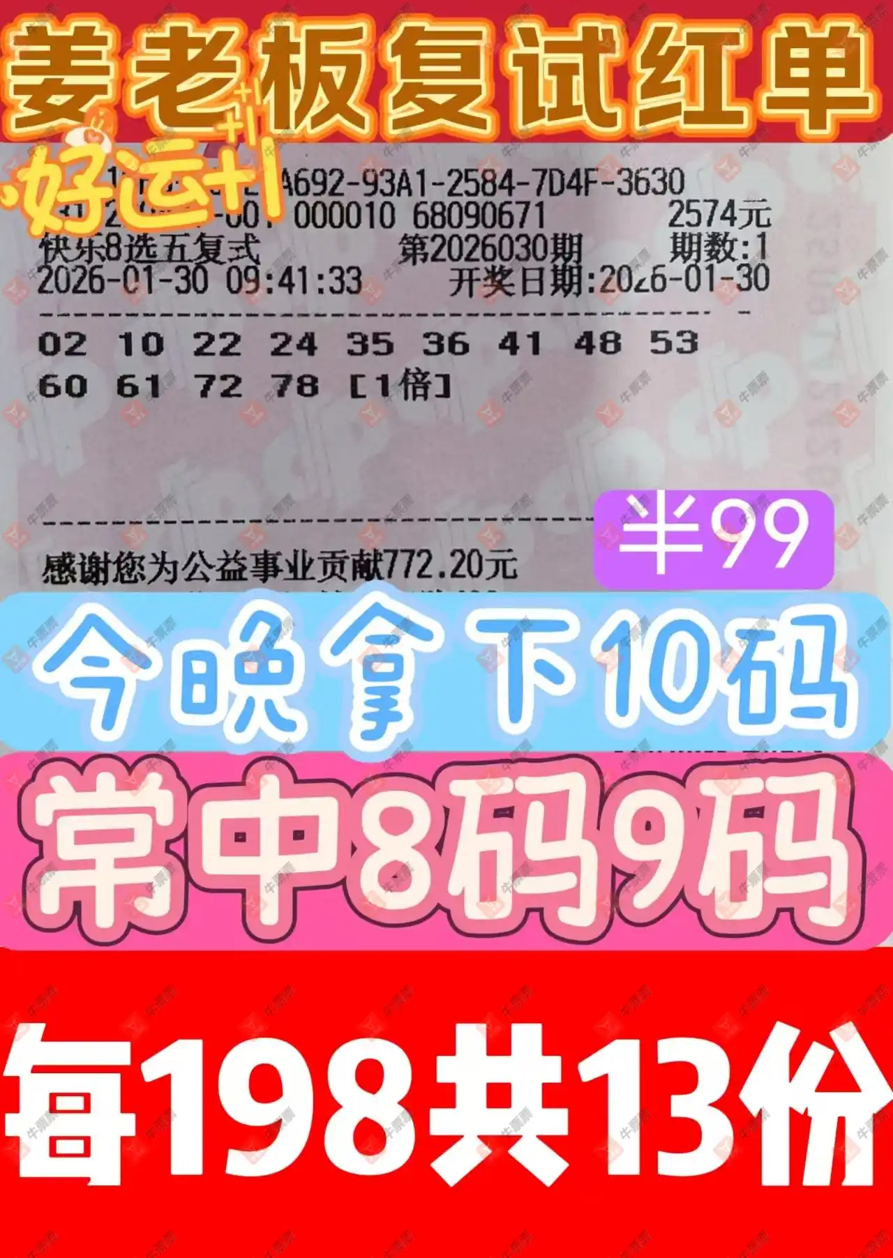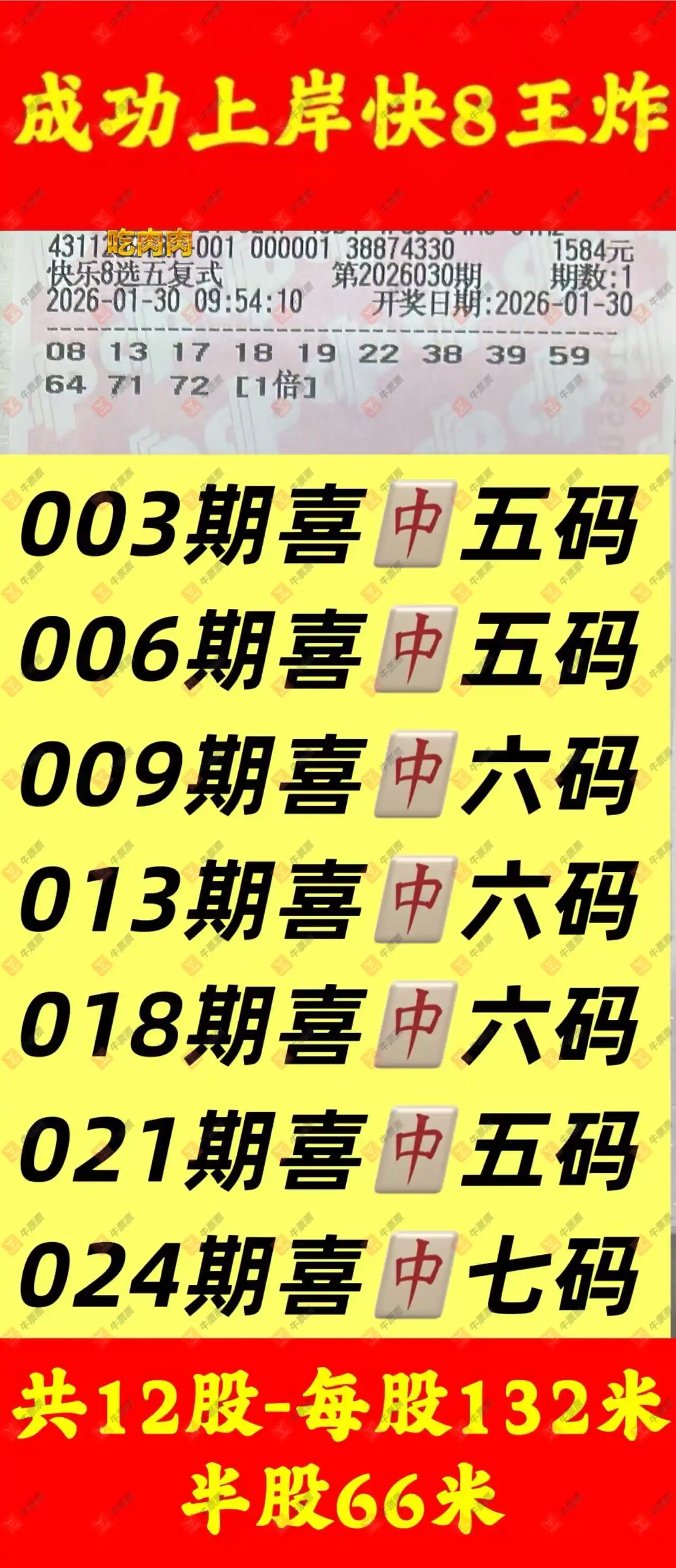 晒中030期快八合买票