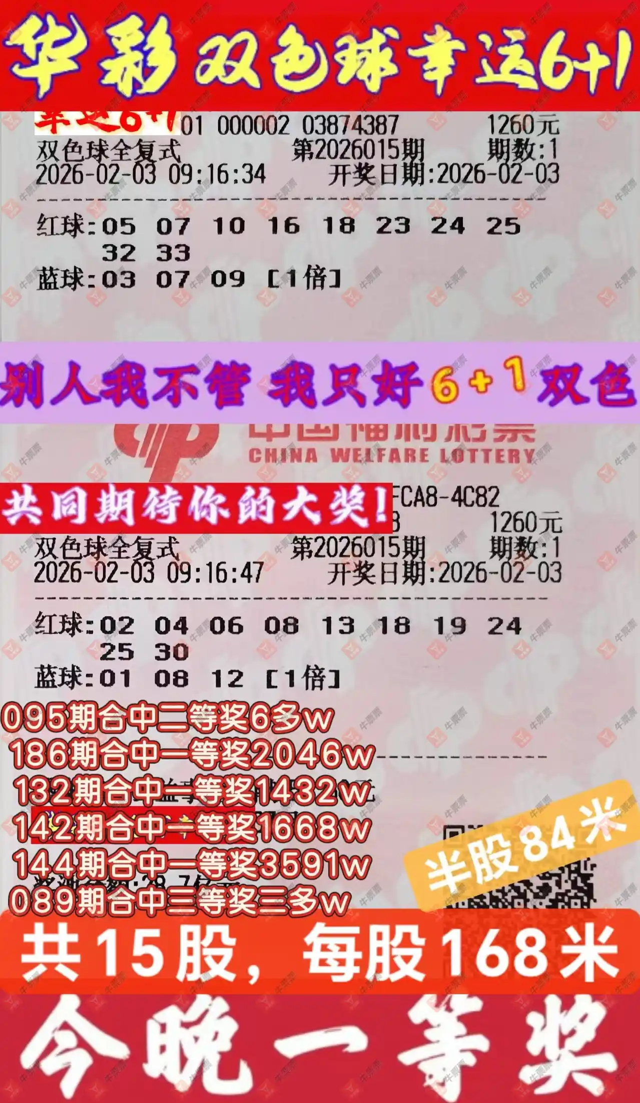 晒中015期双色球合买票参考