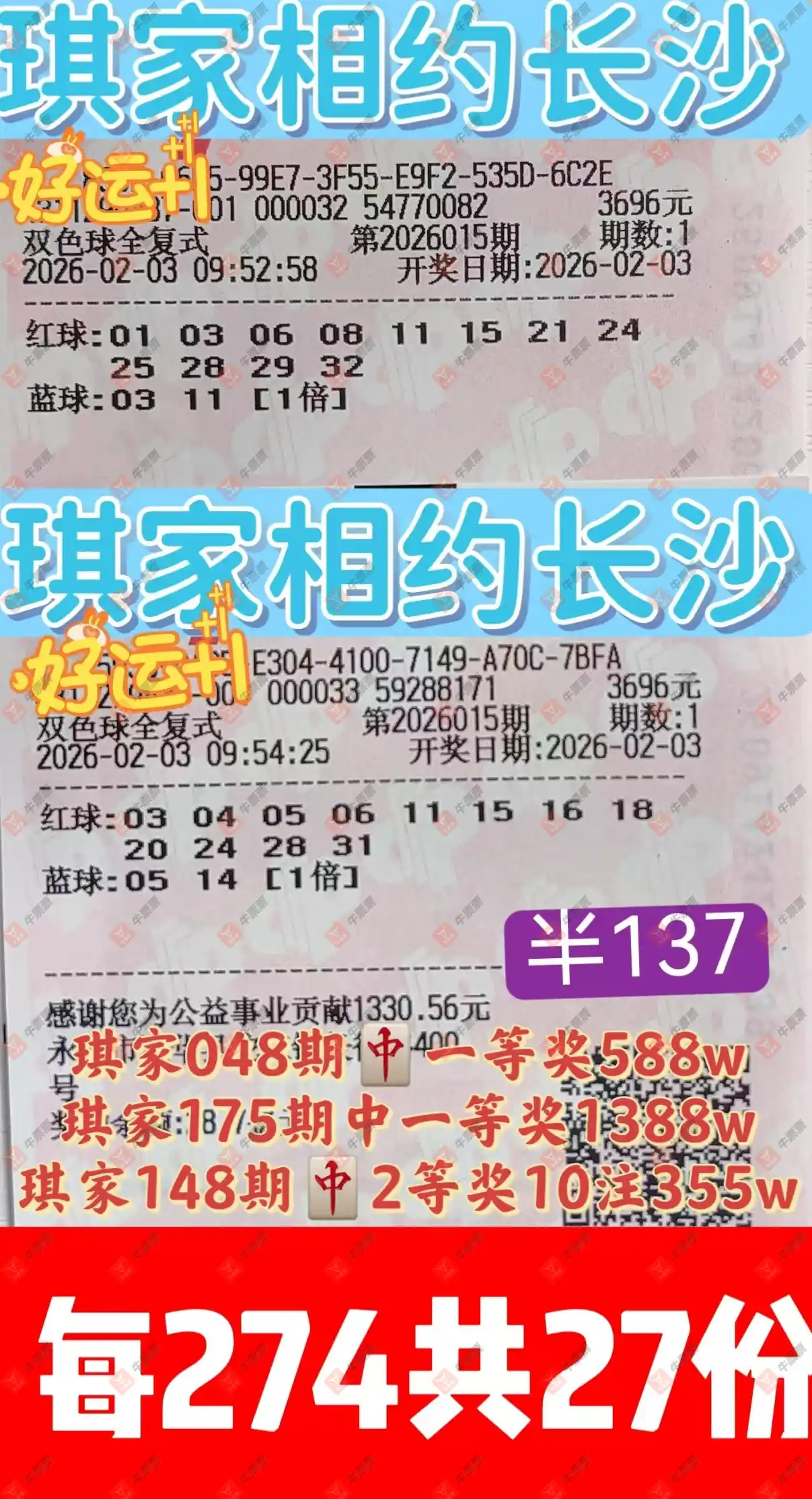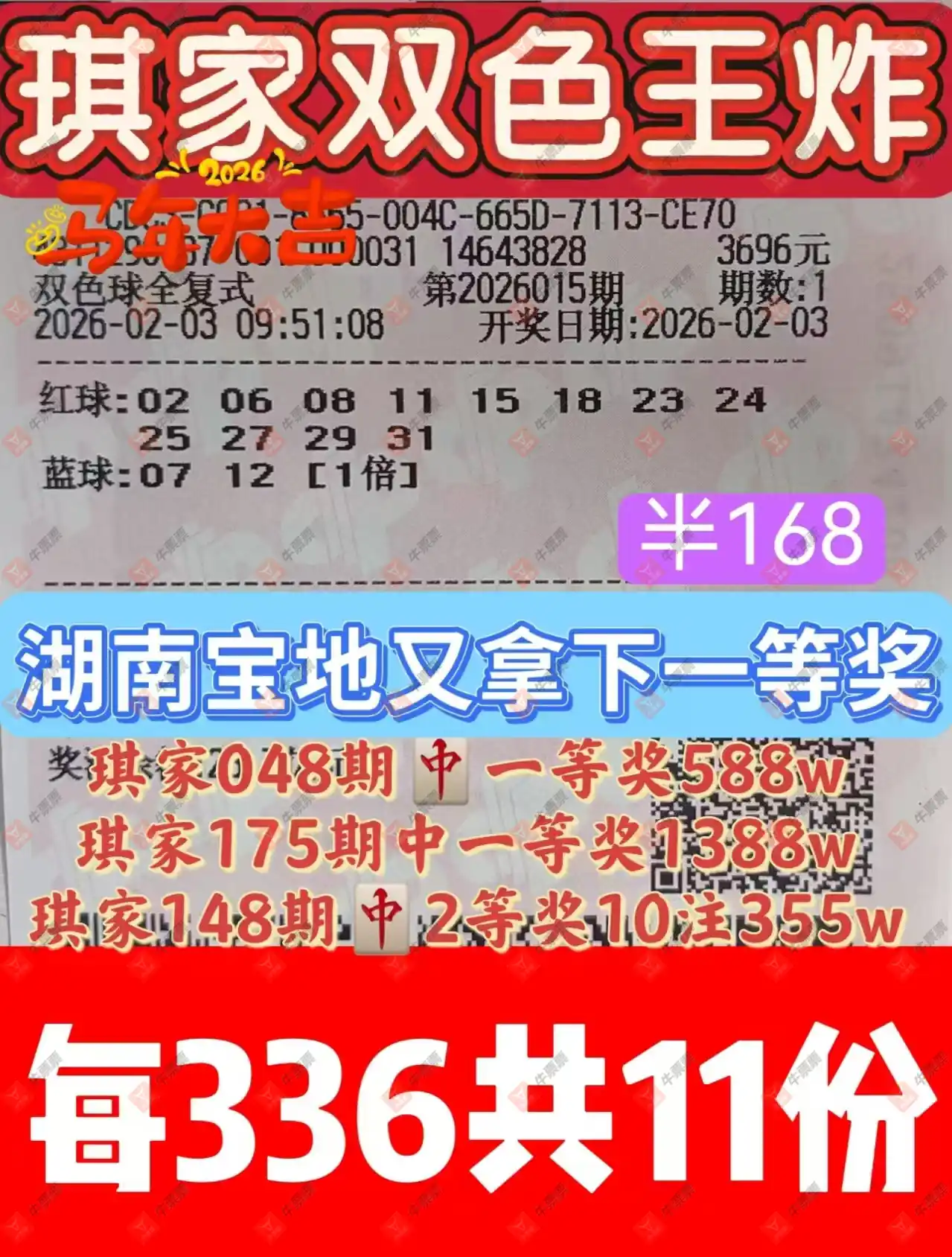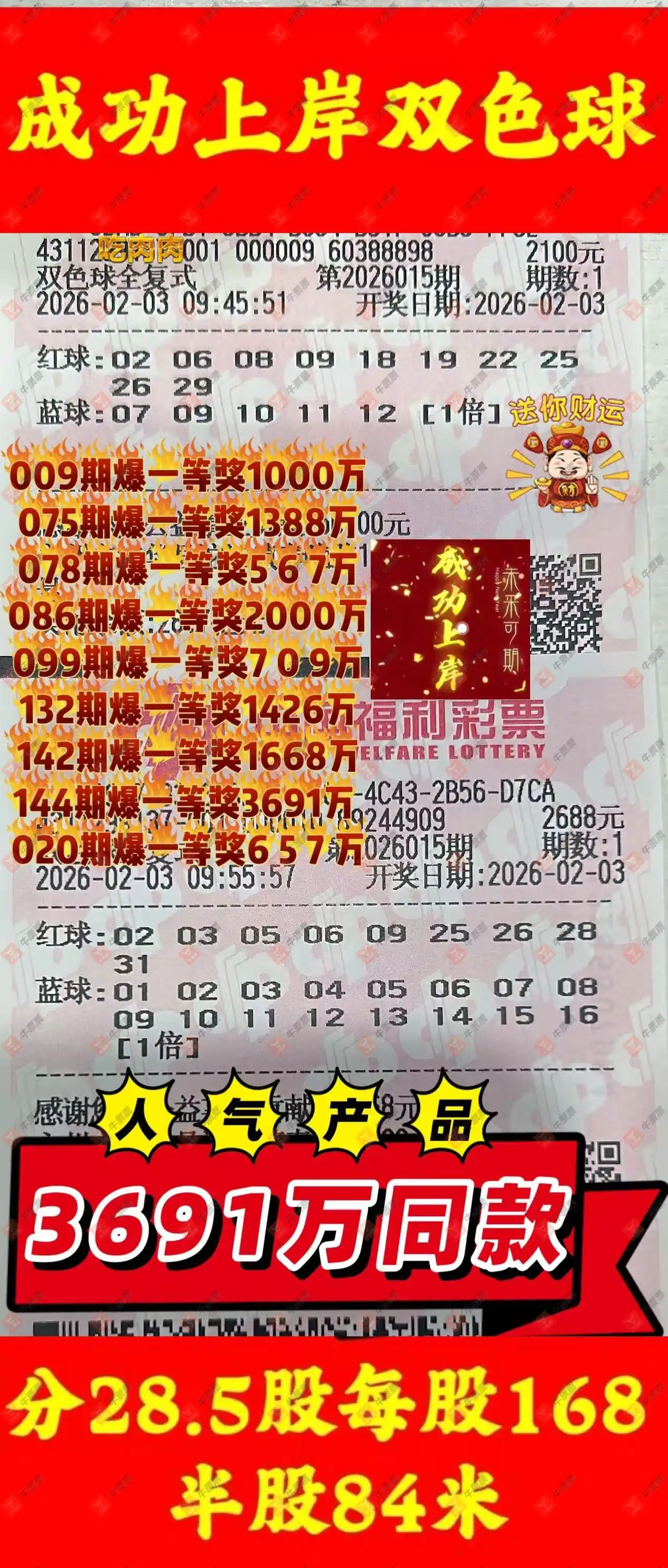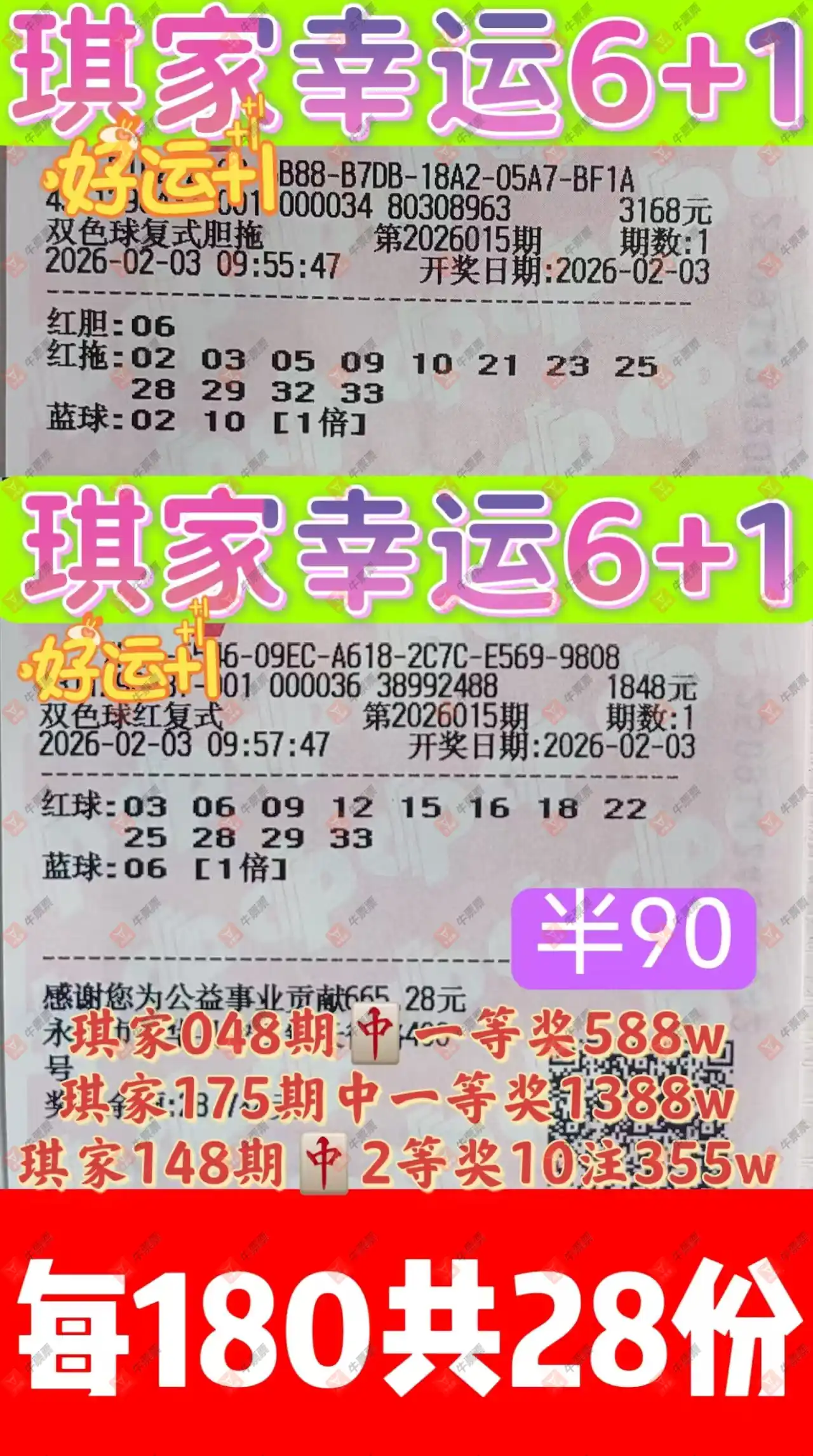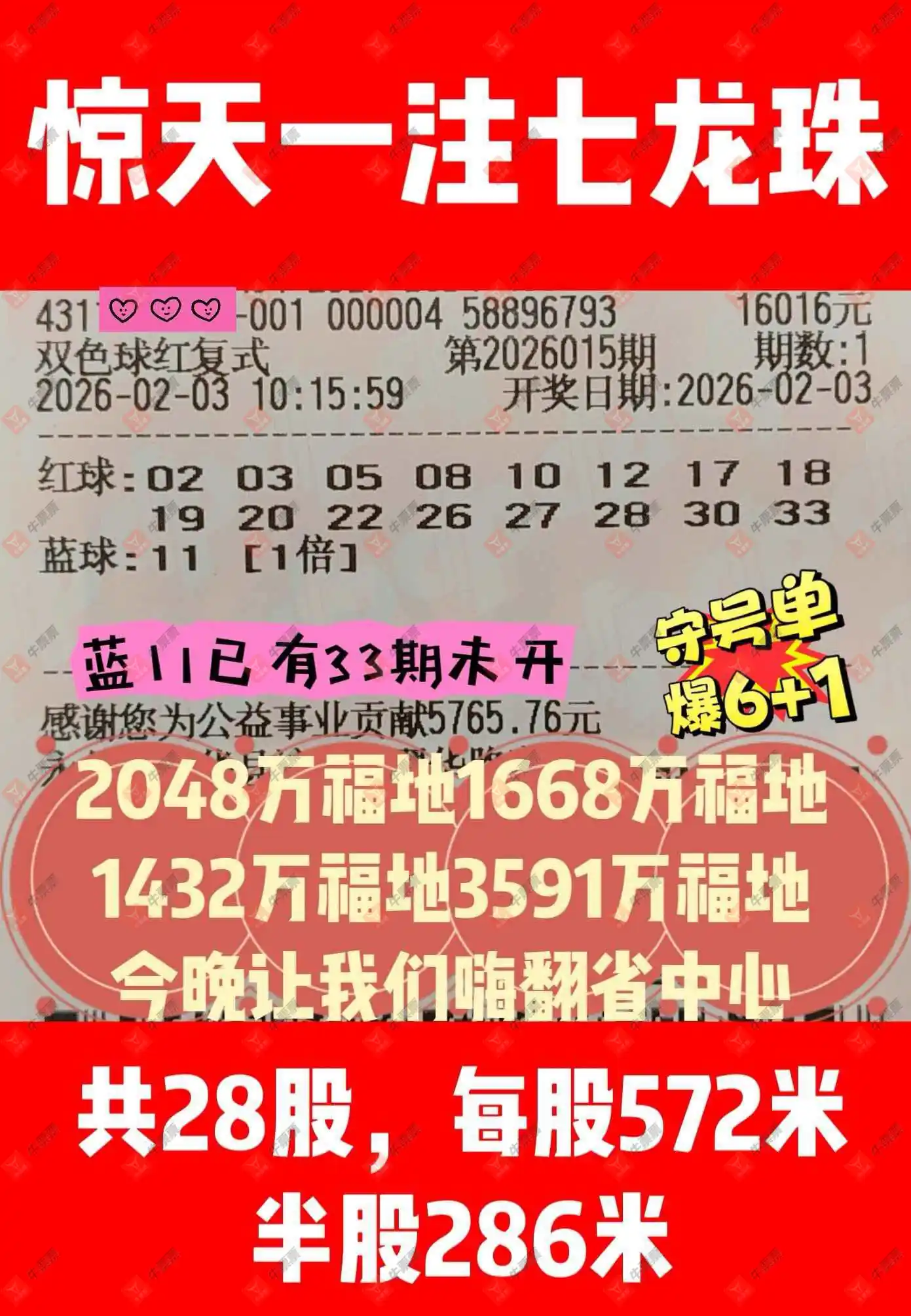 晒中015期双色球合买票