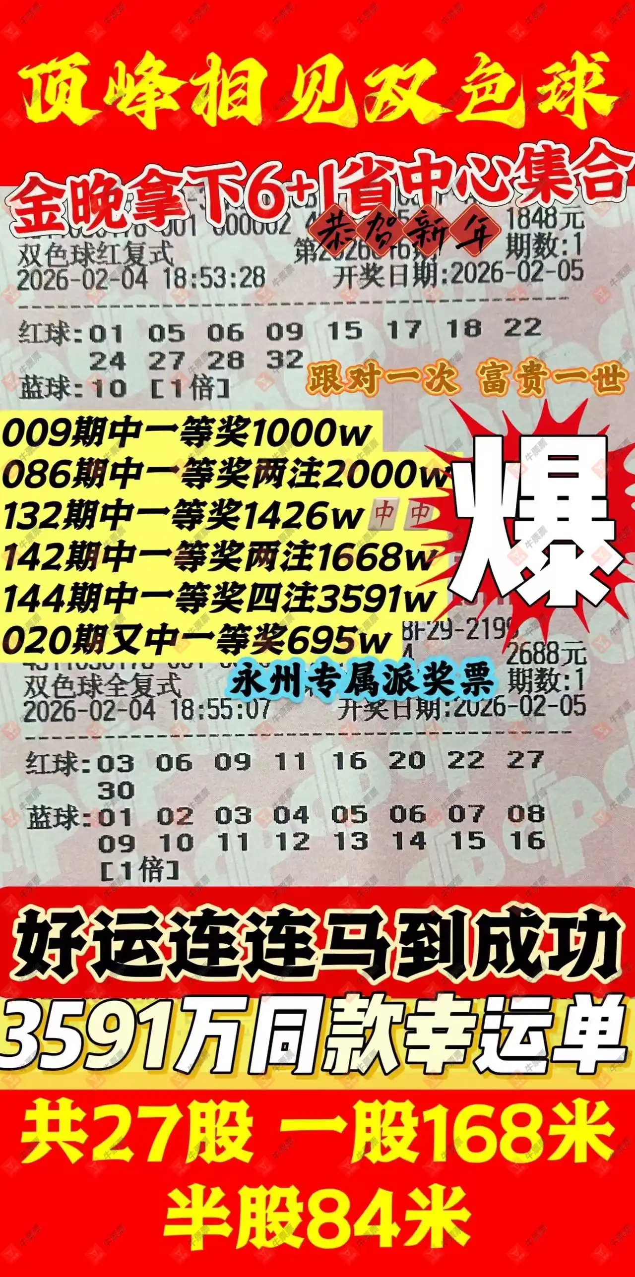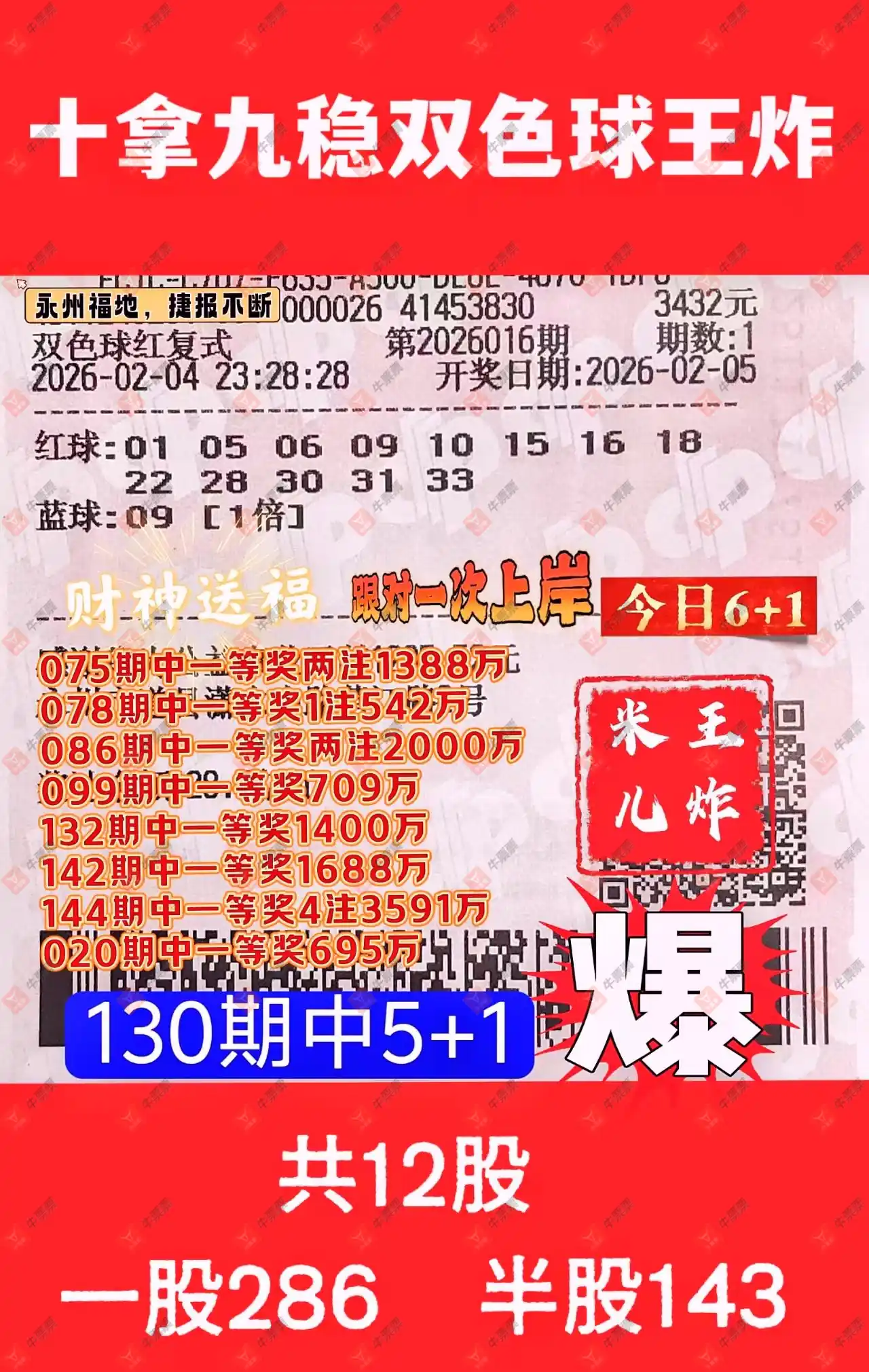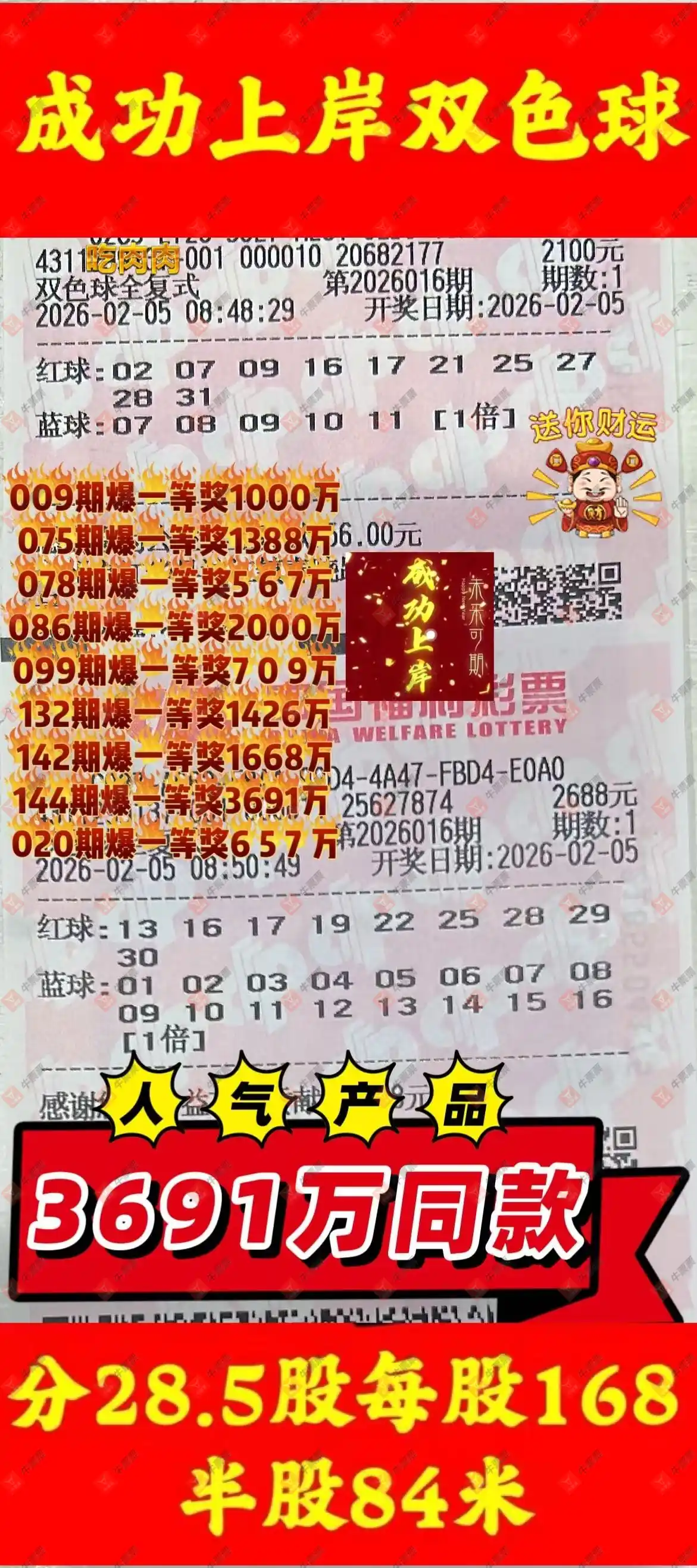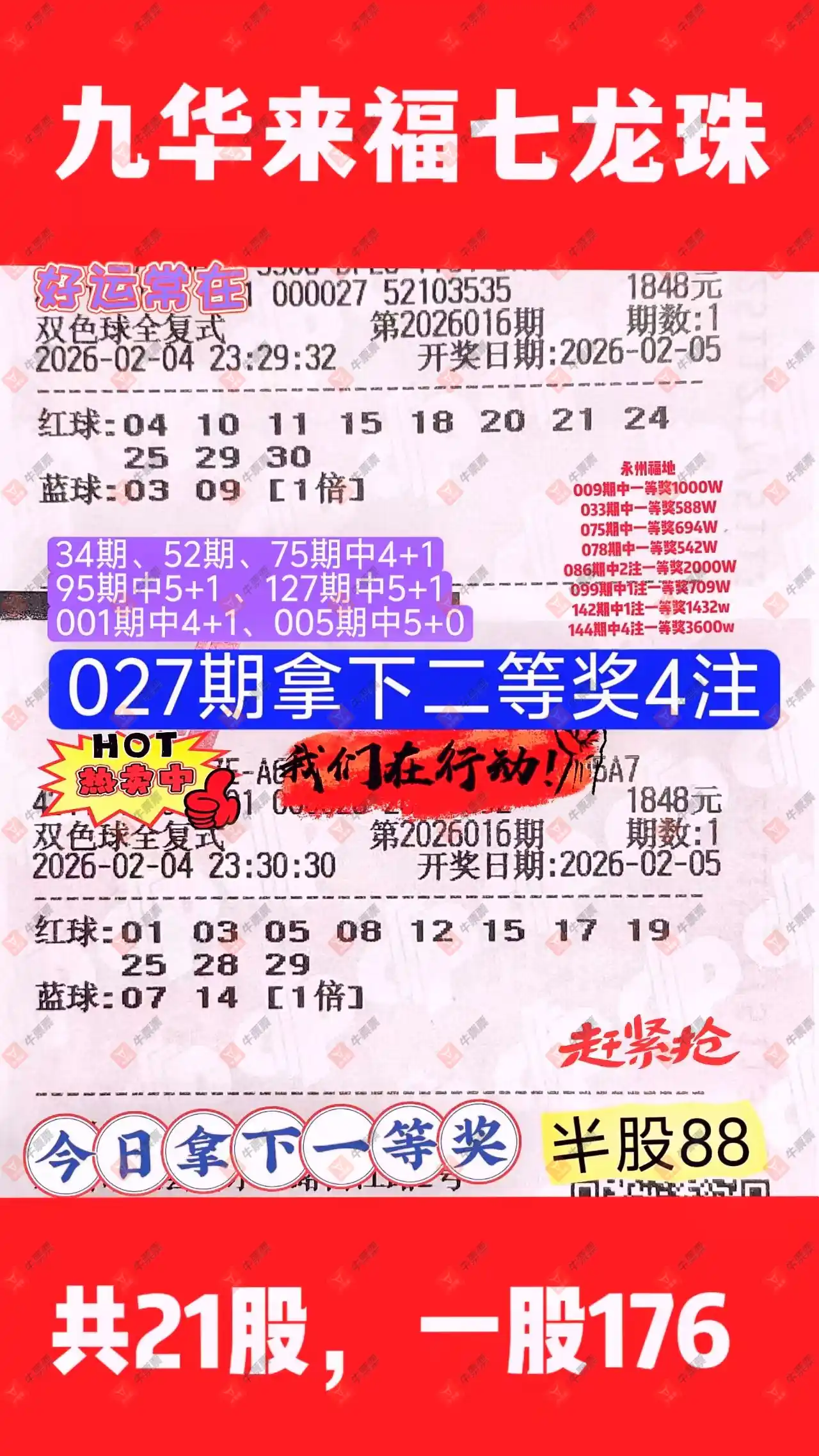 晒中016期双色球合买票
