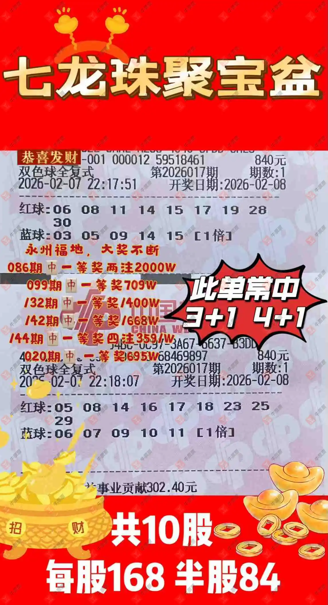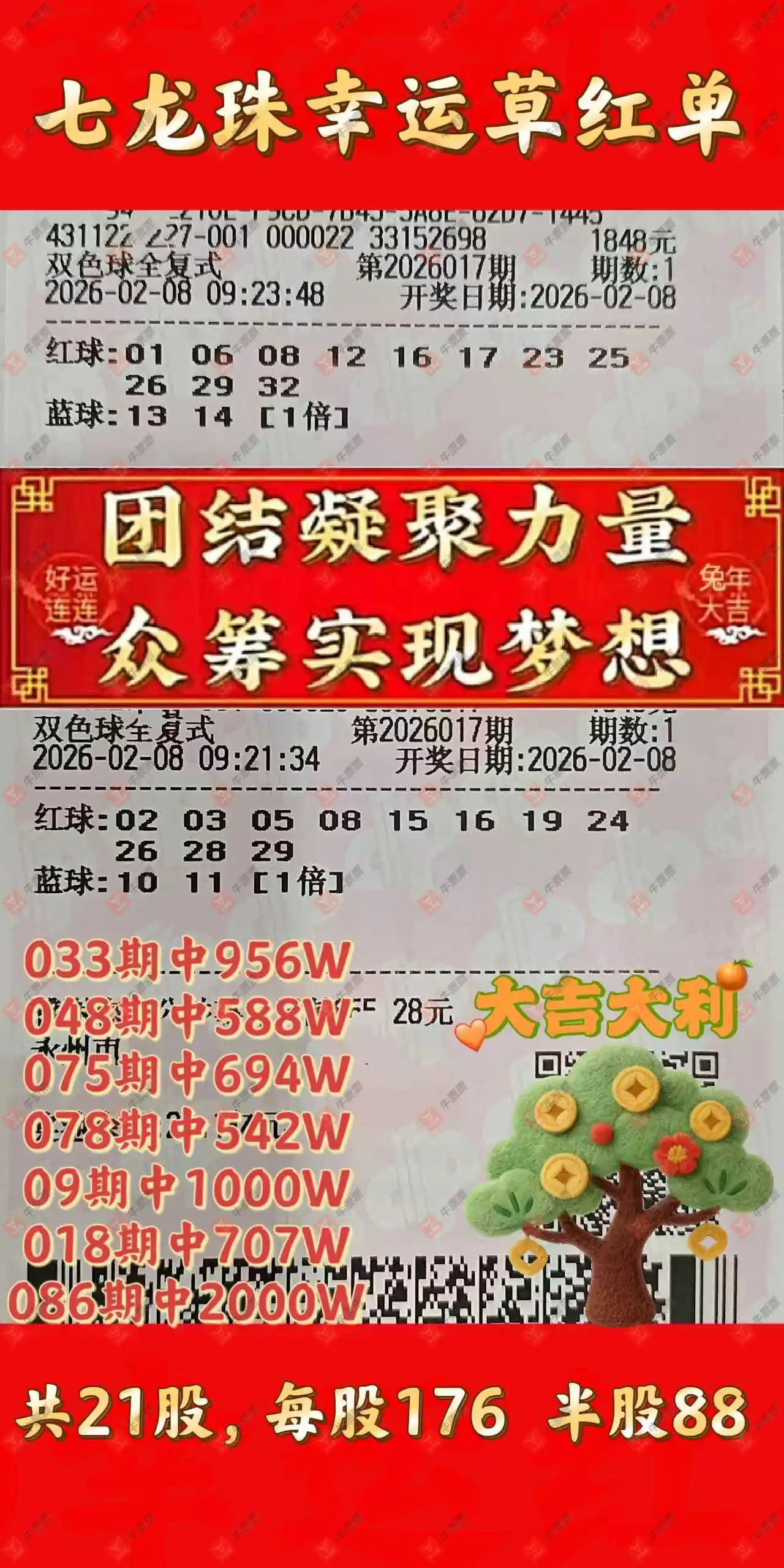晒中017期双色球合买票参考