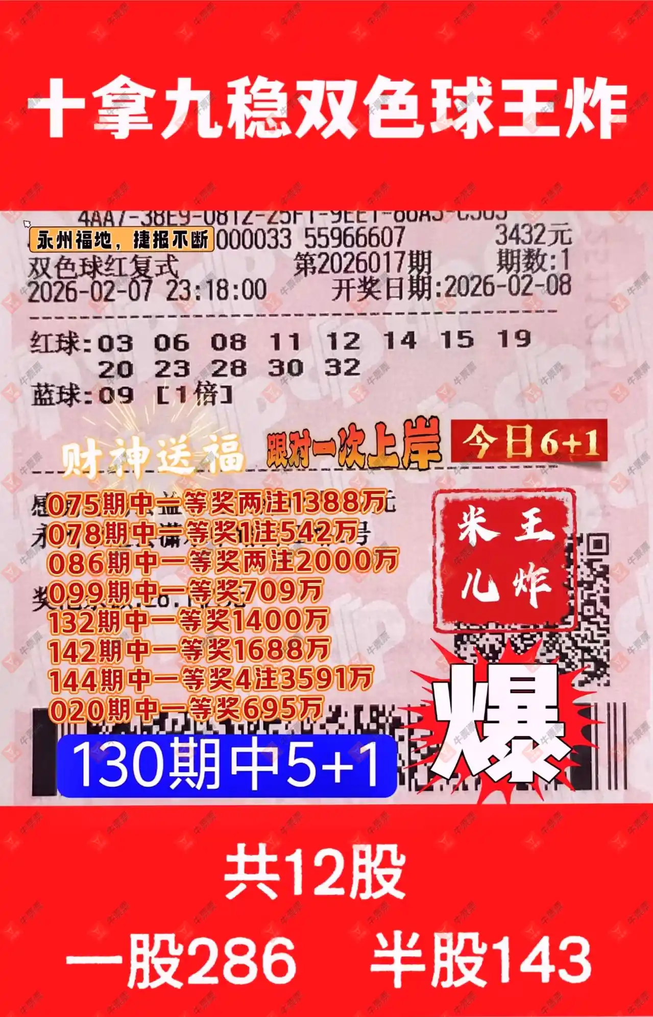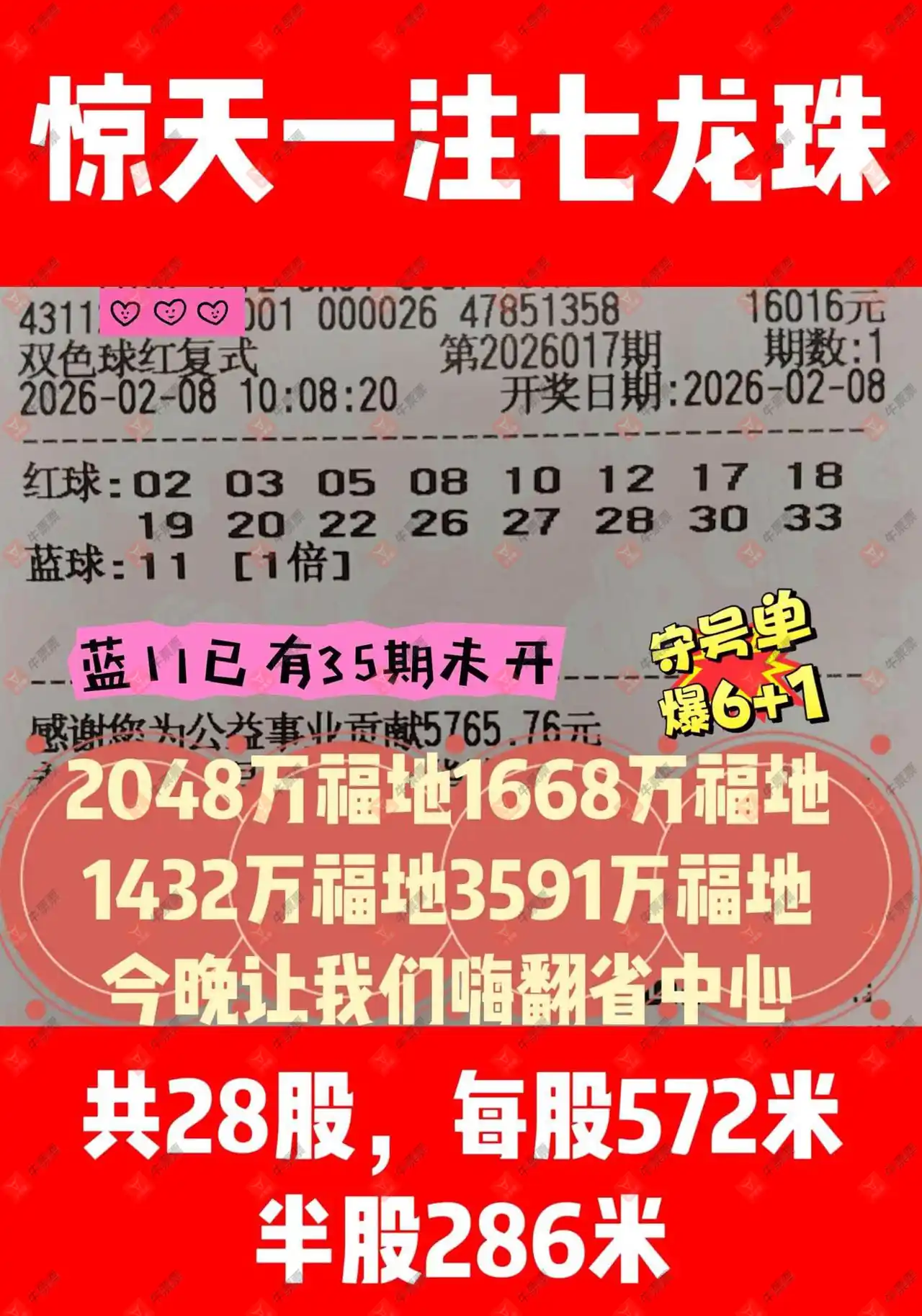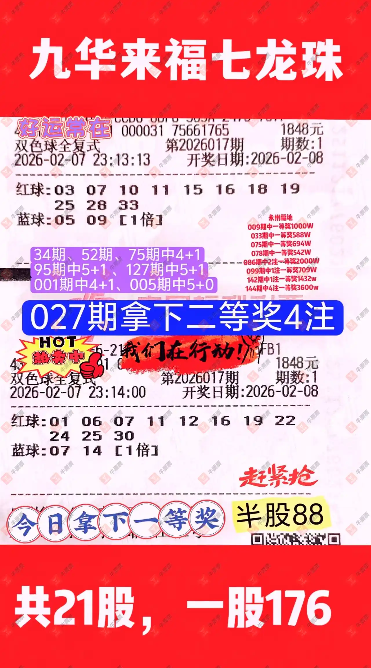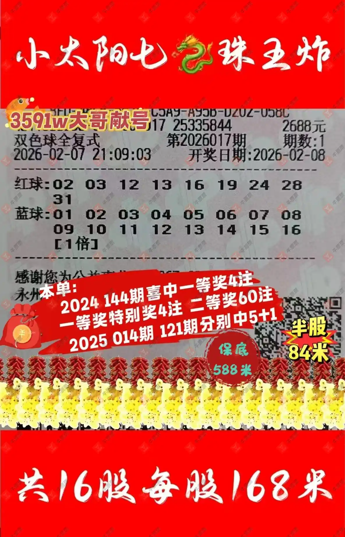 晒中017期双色球合买票