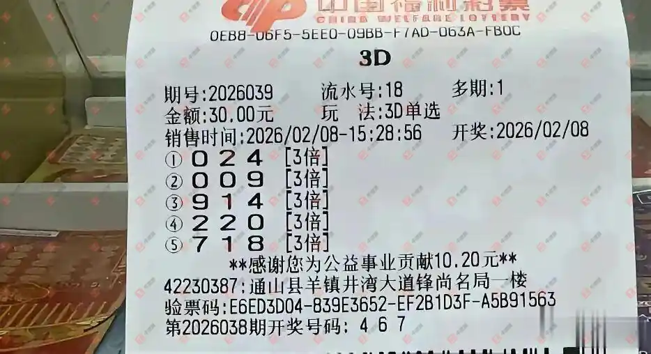 福彩3D 2026039期