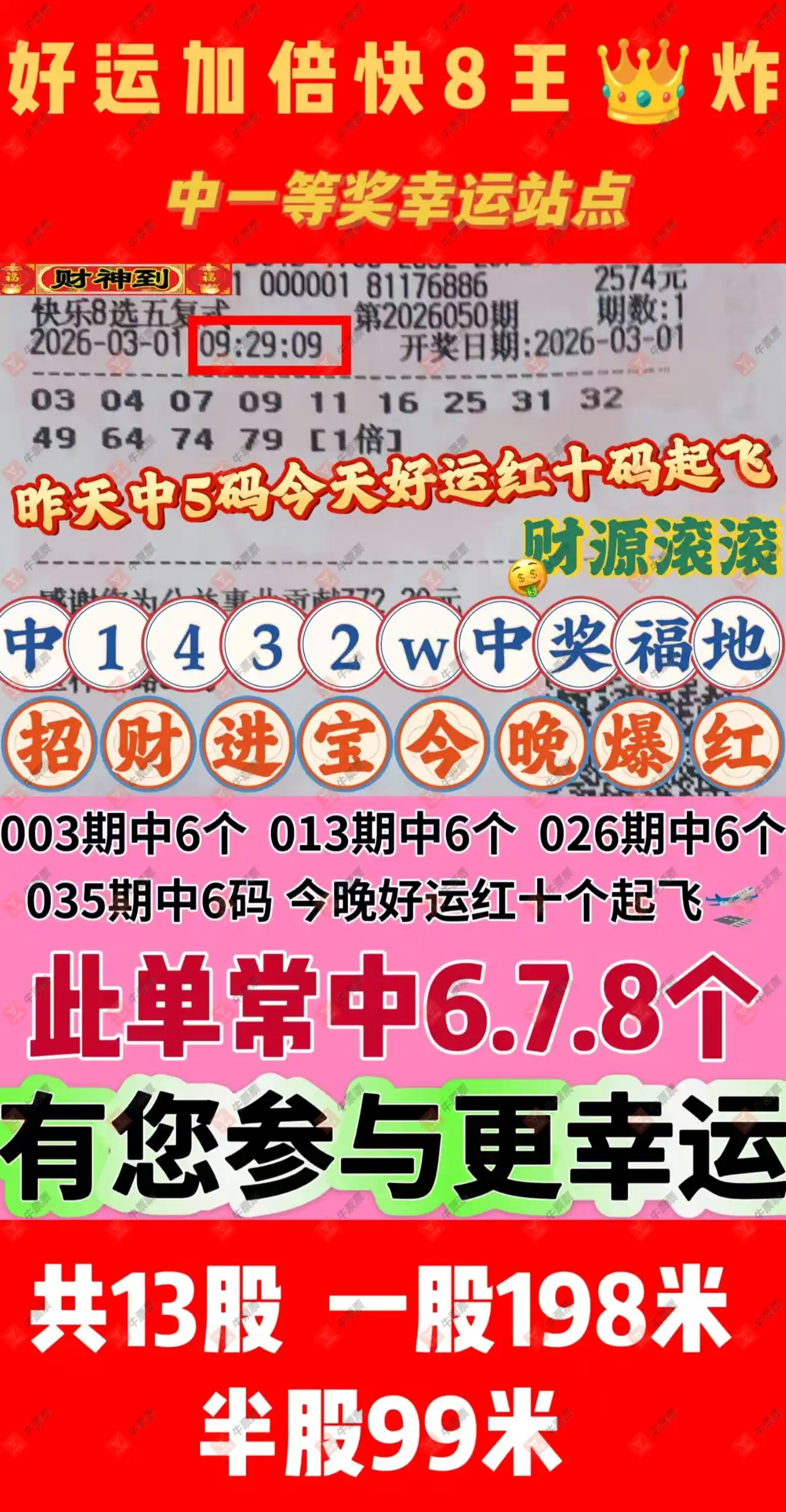 晒中050期快八合买票参考