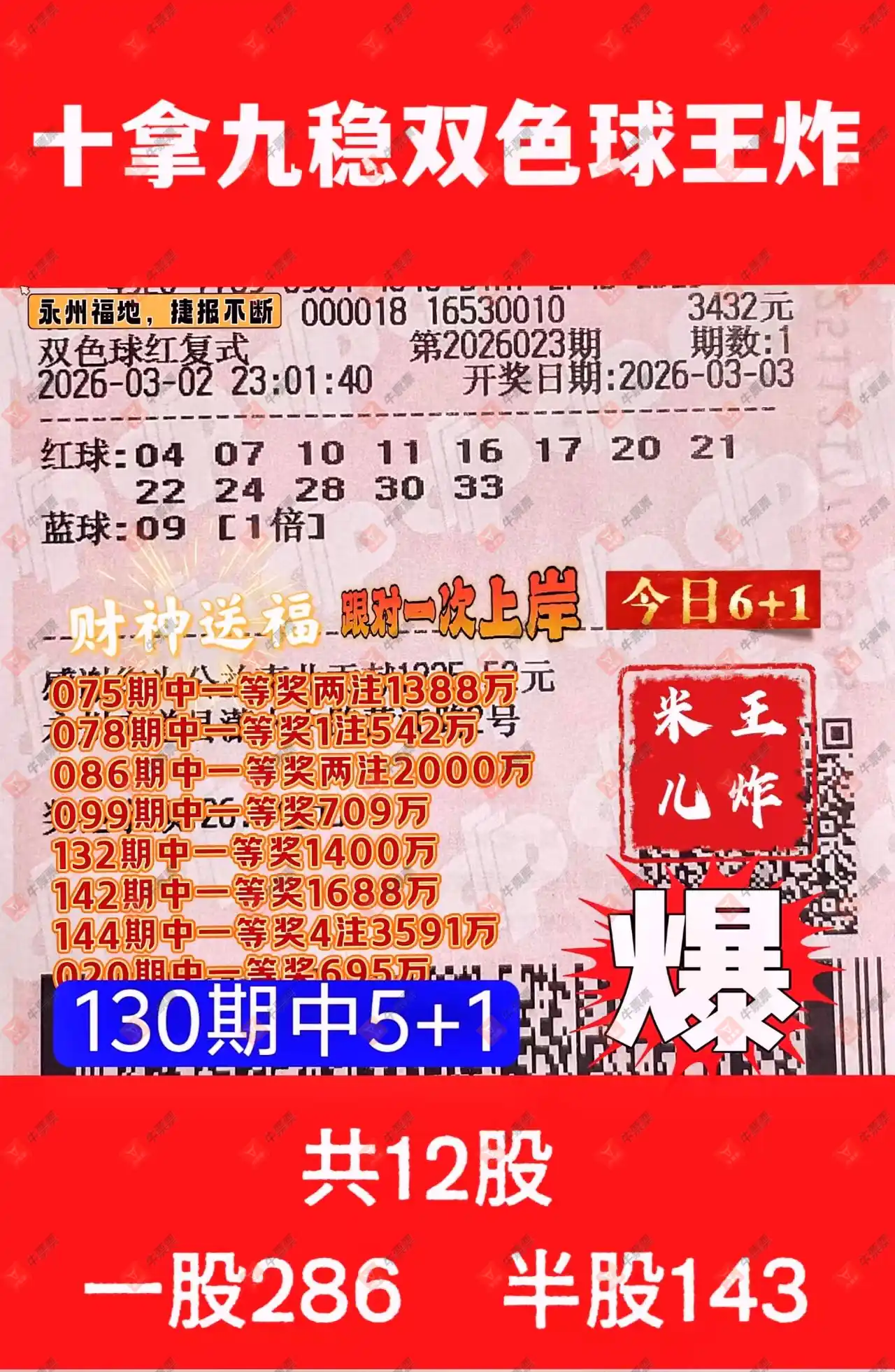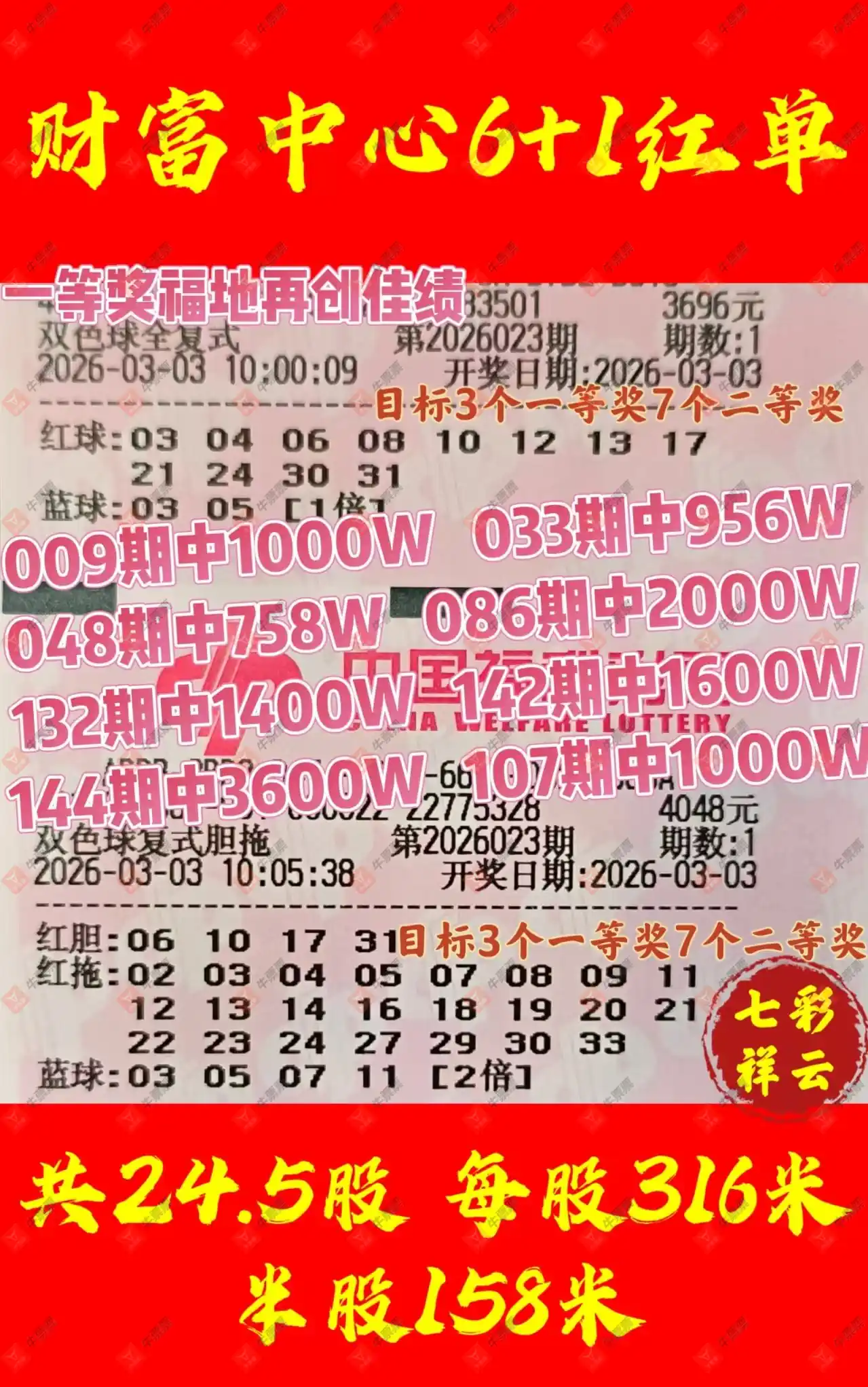 晒中023期双色球合买票参考