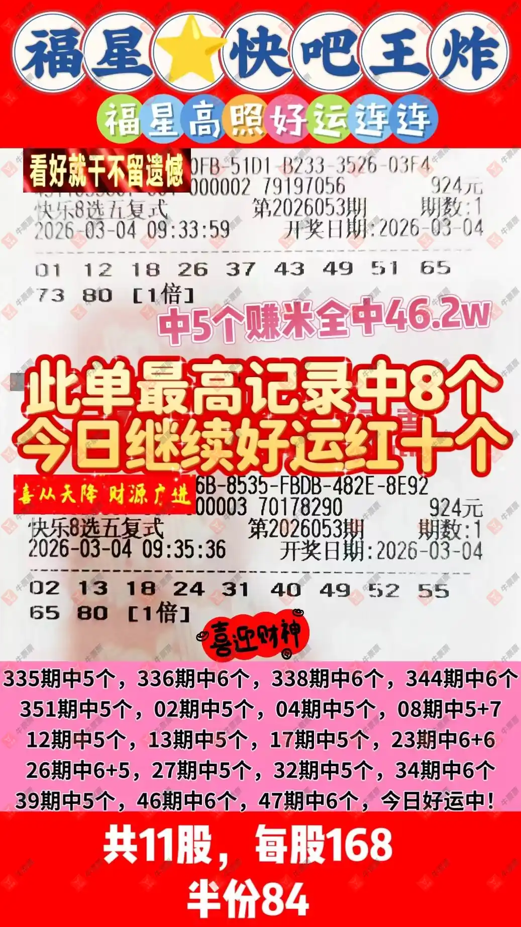 晒中053期快八合买票参考