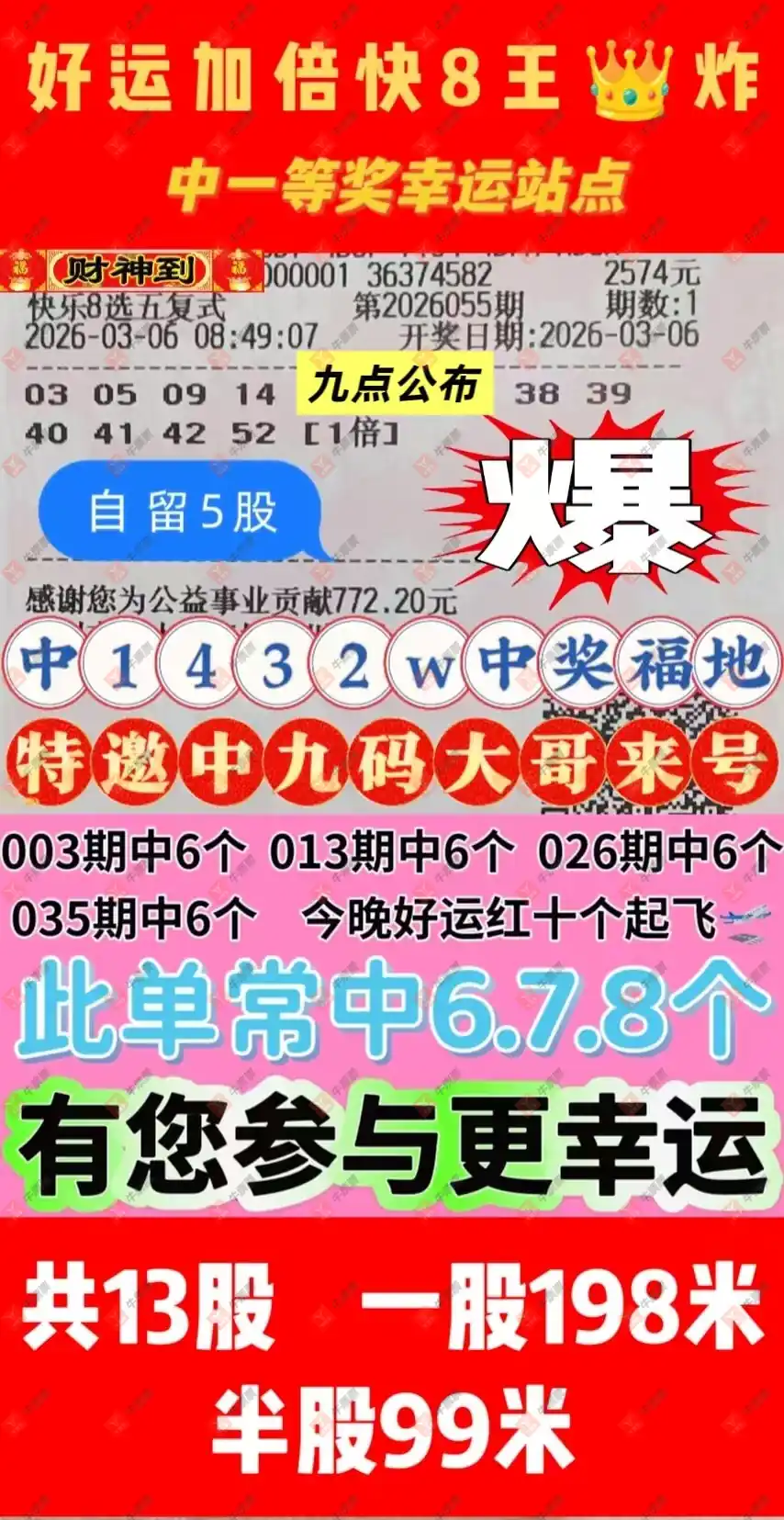 晒中055期快八合买票参考