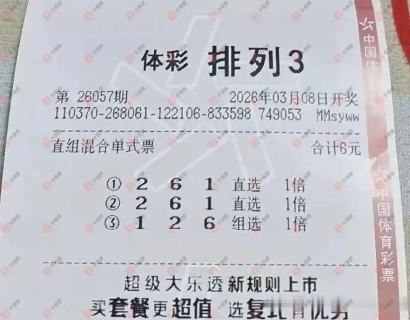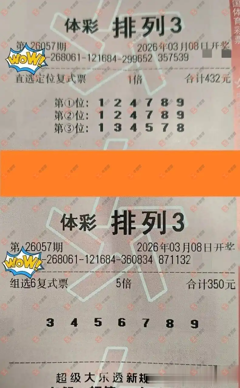 晒中排2026057期 毒8 双胆68 三胆068 和值8/9/10 五码01368