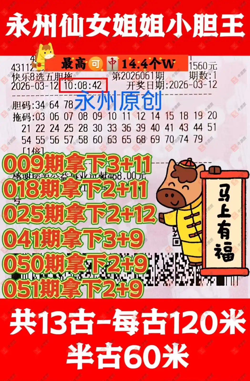 晒中061期快八合买票参考