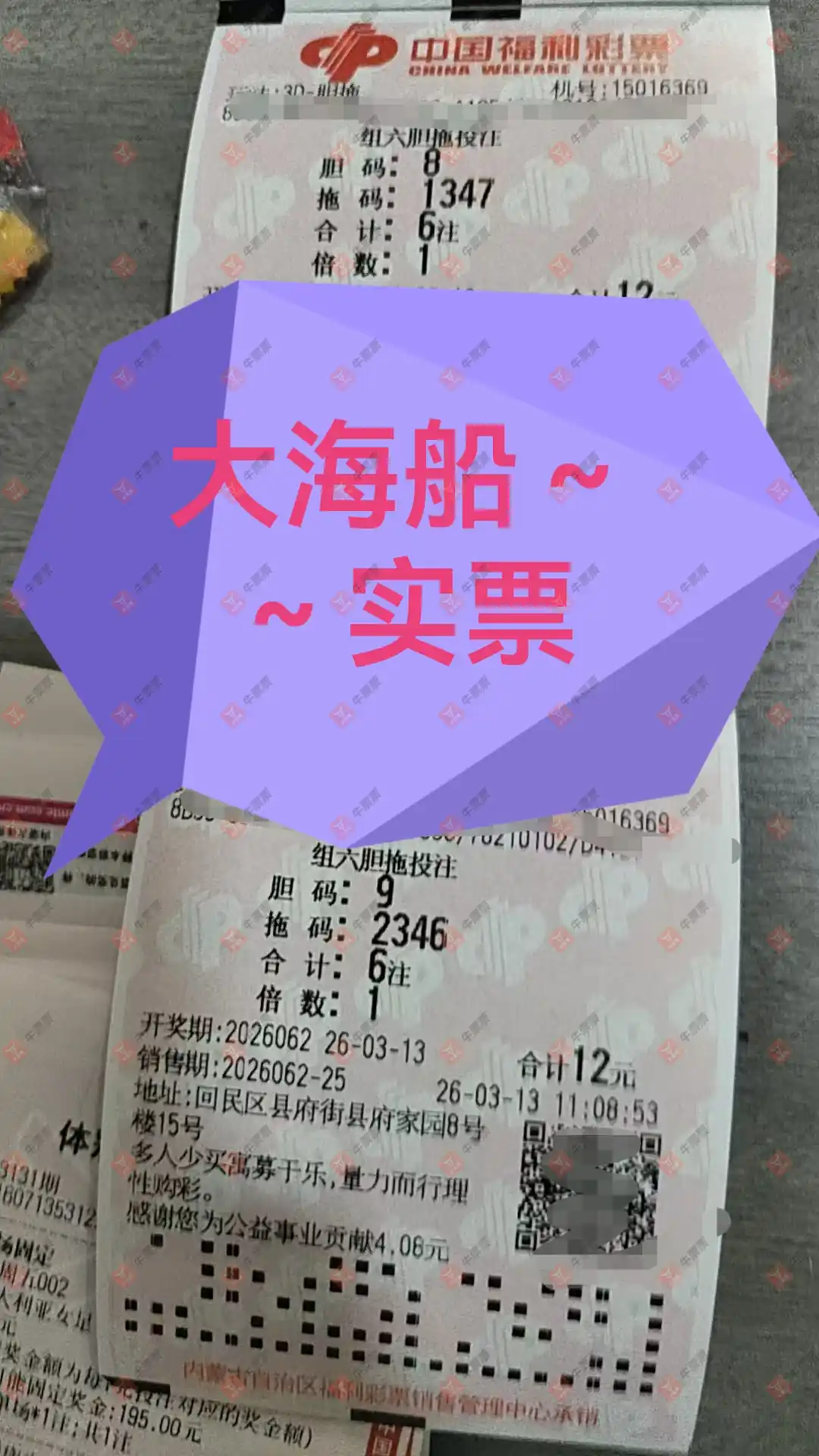 晒中🌈🌈🌈注:晒出部分个人实票,今期网上购买于~内蒙古区(正在举行派奖活动中)内实体店,并非抄袭、或搬运不是自买的票面参加晒票娱乐…。☀☀☀3D:今期个人看好胆码~789,组六形态,参考杀码~5。 💥💥💥玩彩有风险,理性参考。