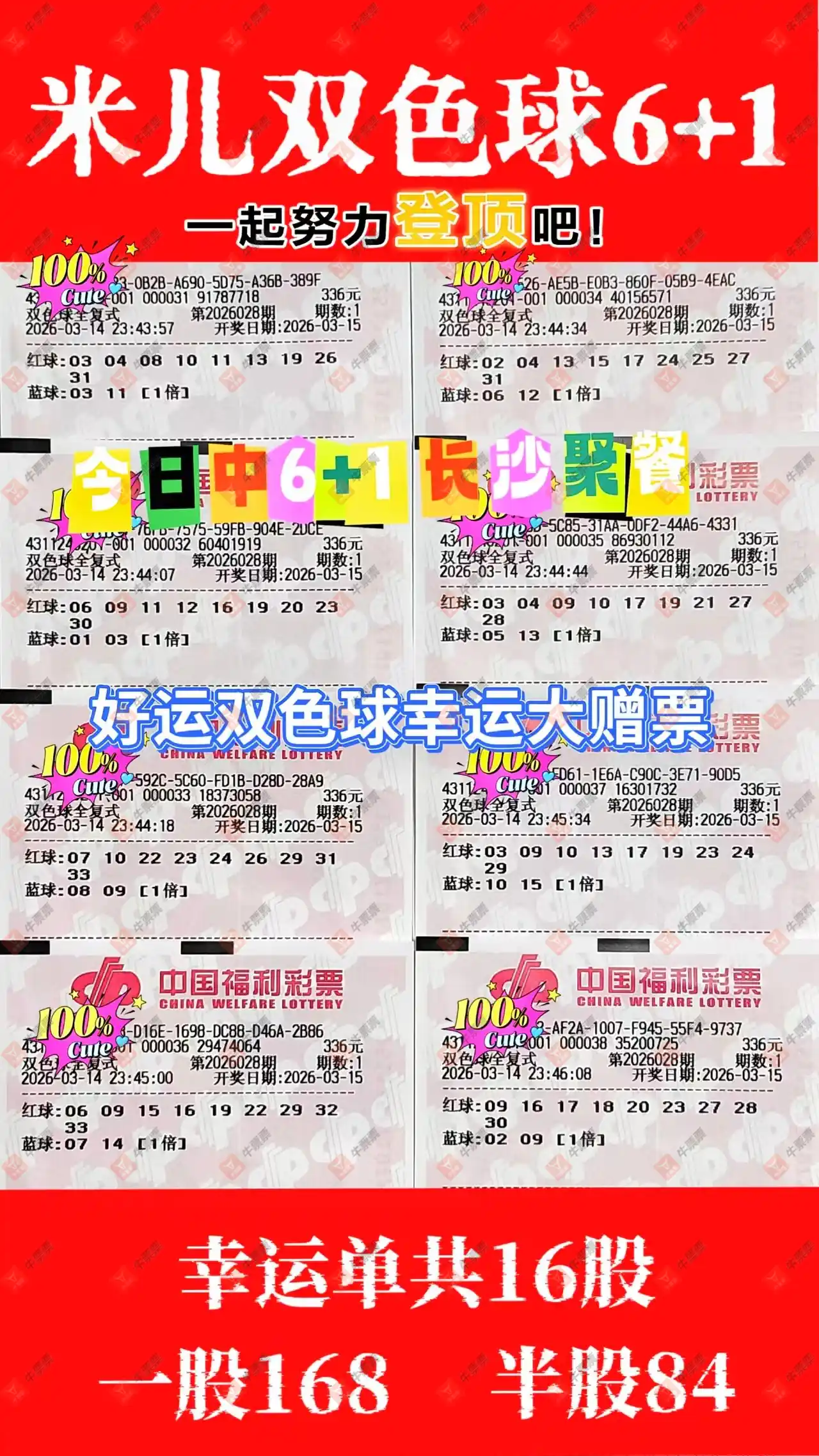 晒中028期双色球合买票参考