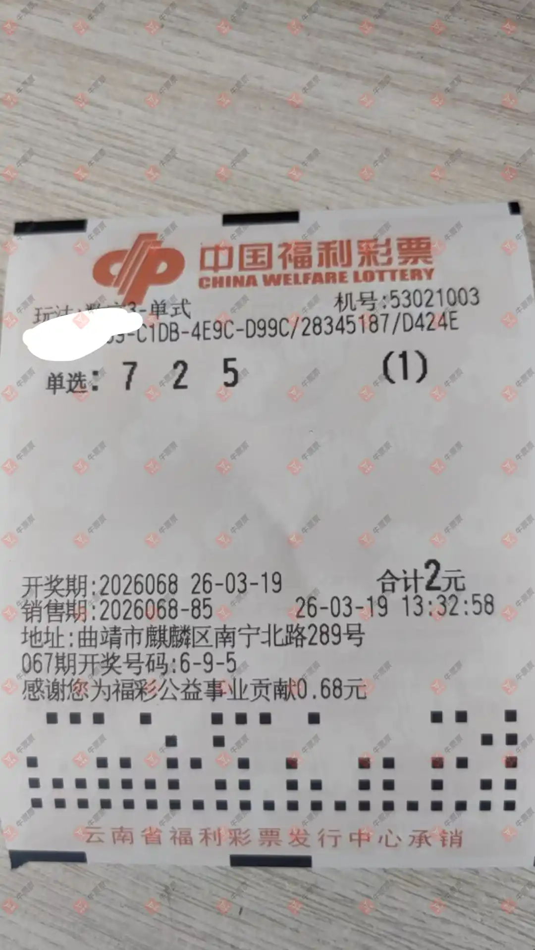 福彩3D 2026068期