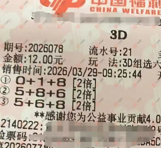 福彩3D 2026078期