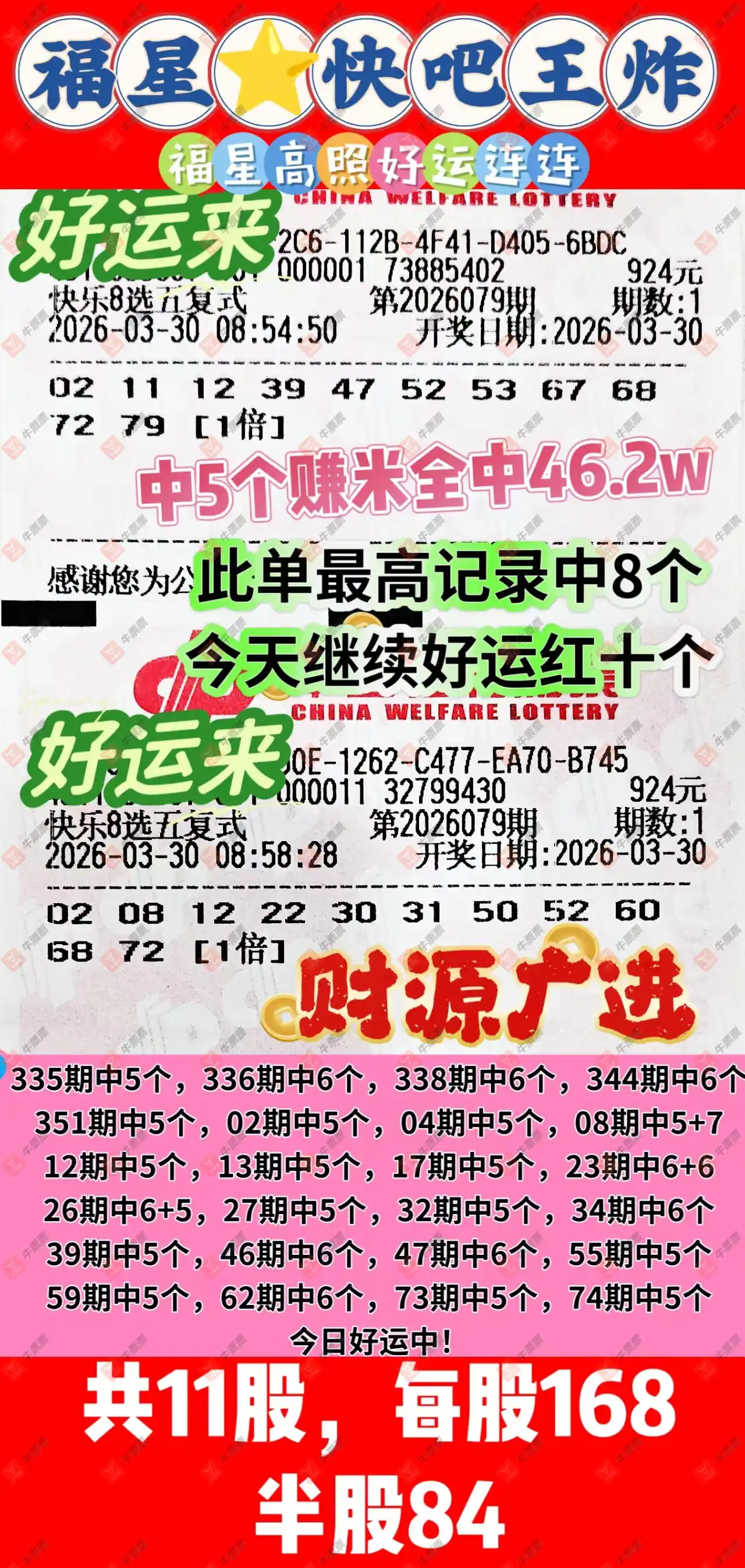 晒中079期快八合买票参考