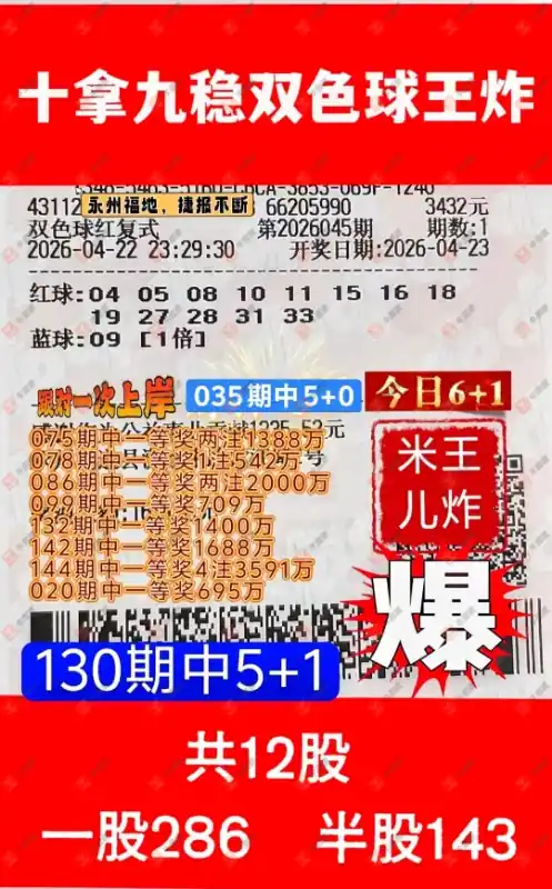 晒中045期双色球合买票参考