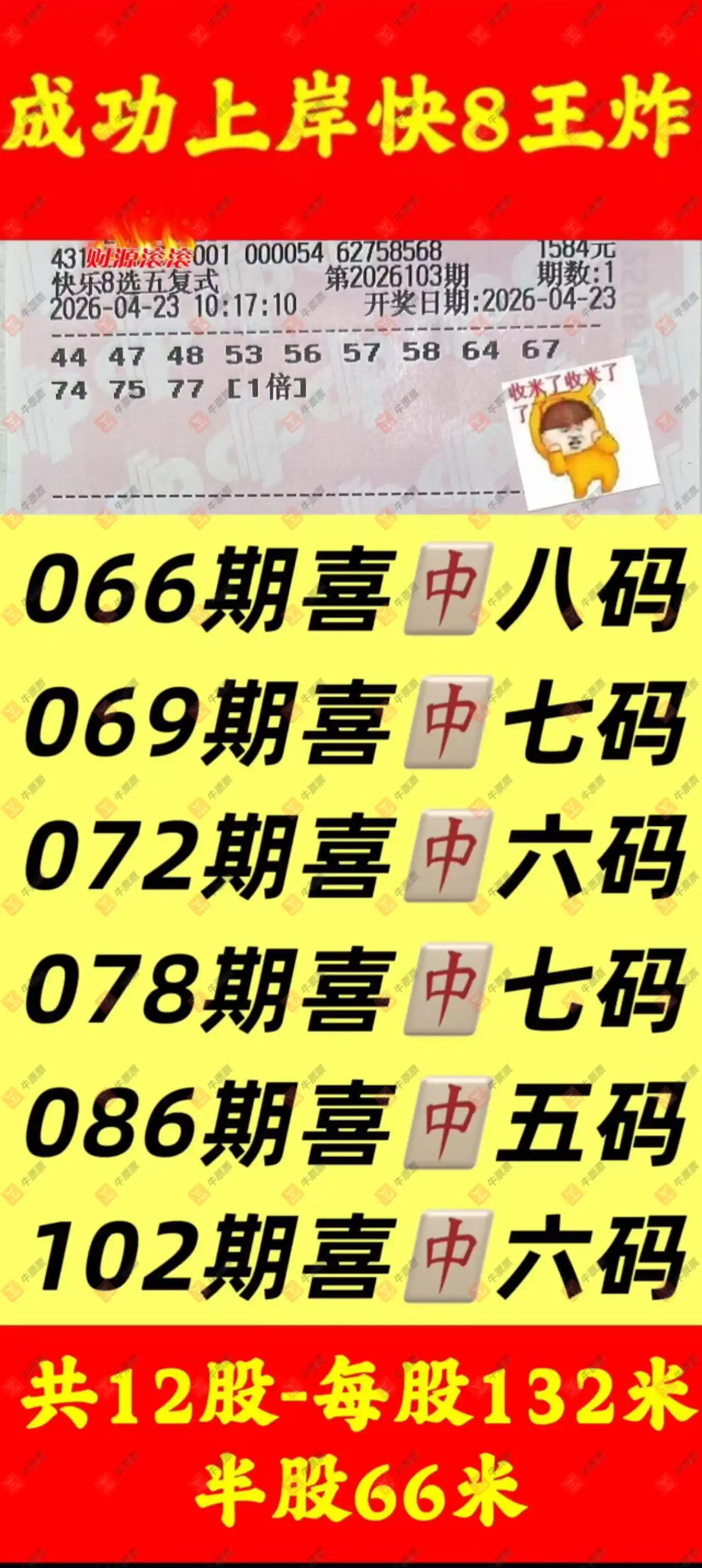 晒中103期快八合买票参考