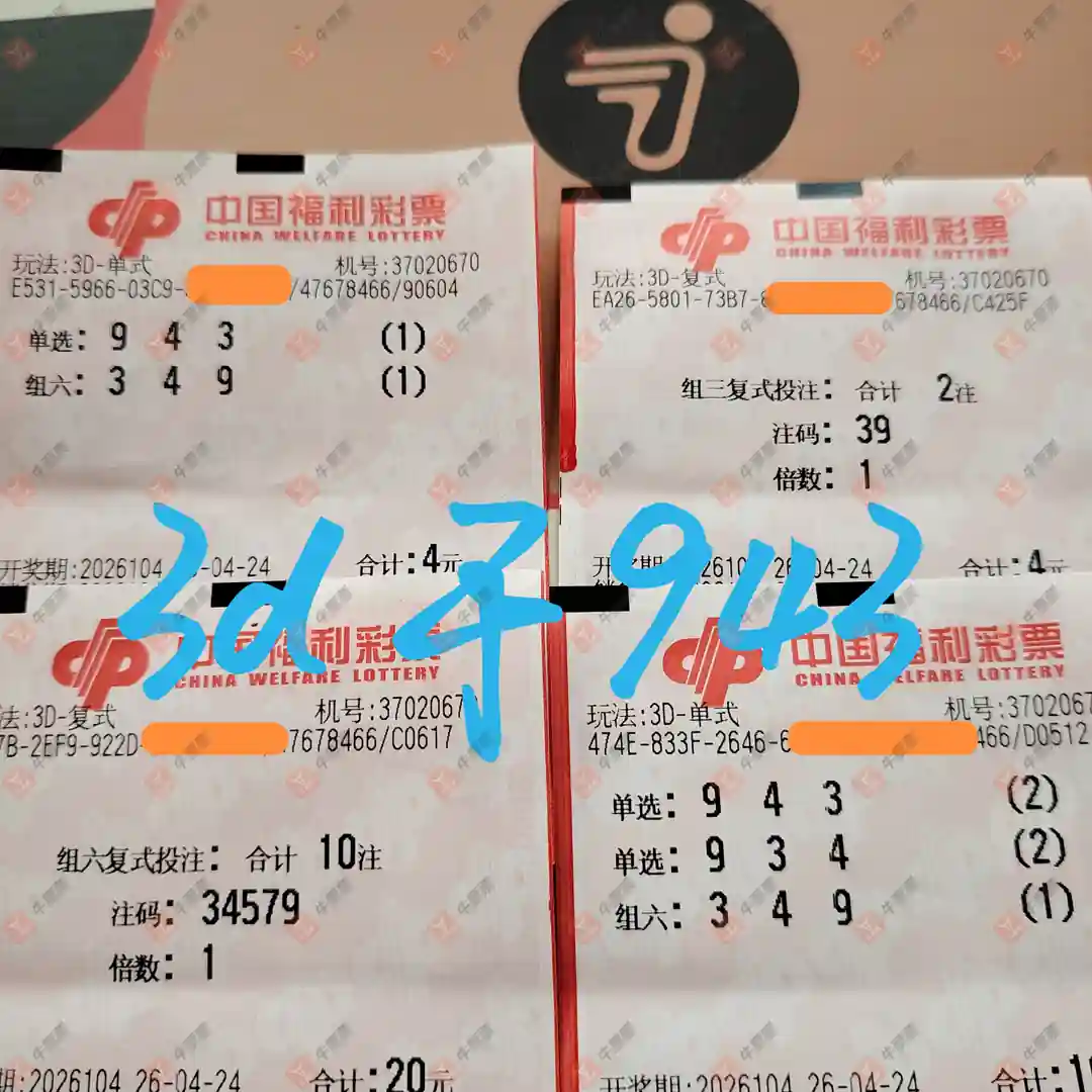 福彩3D电脑软件筛选出来4柱943、934、947、957次选795、794、933、399形态:组六54%的概率。组六5码:34579