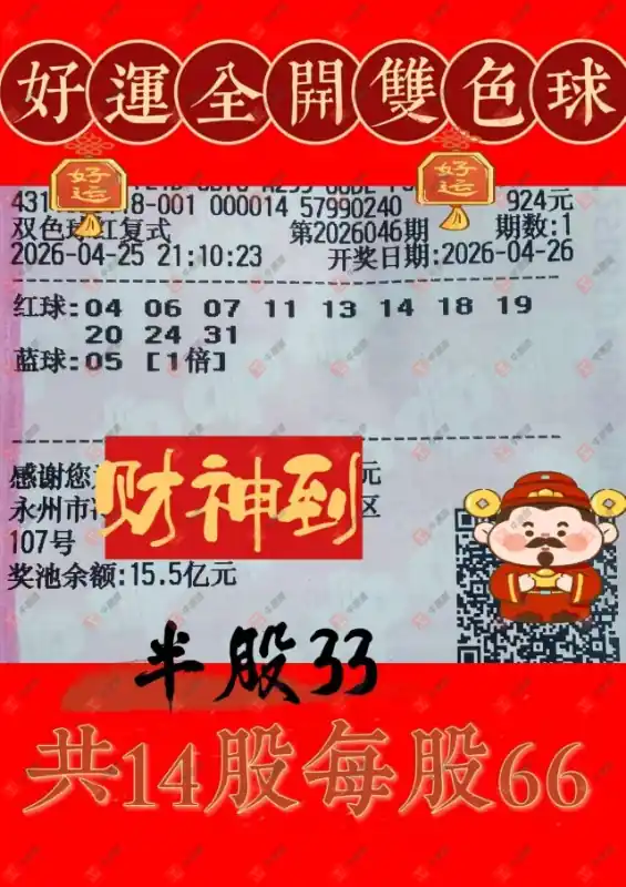 晒中046期双色球合买票参考