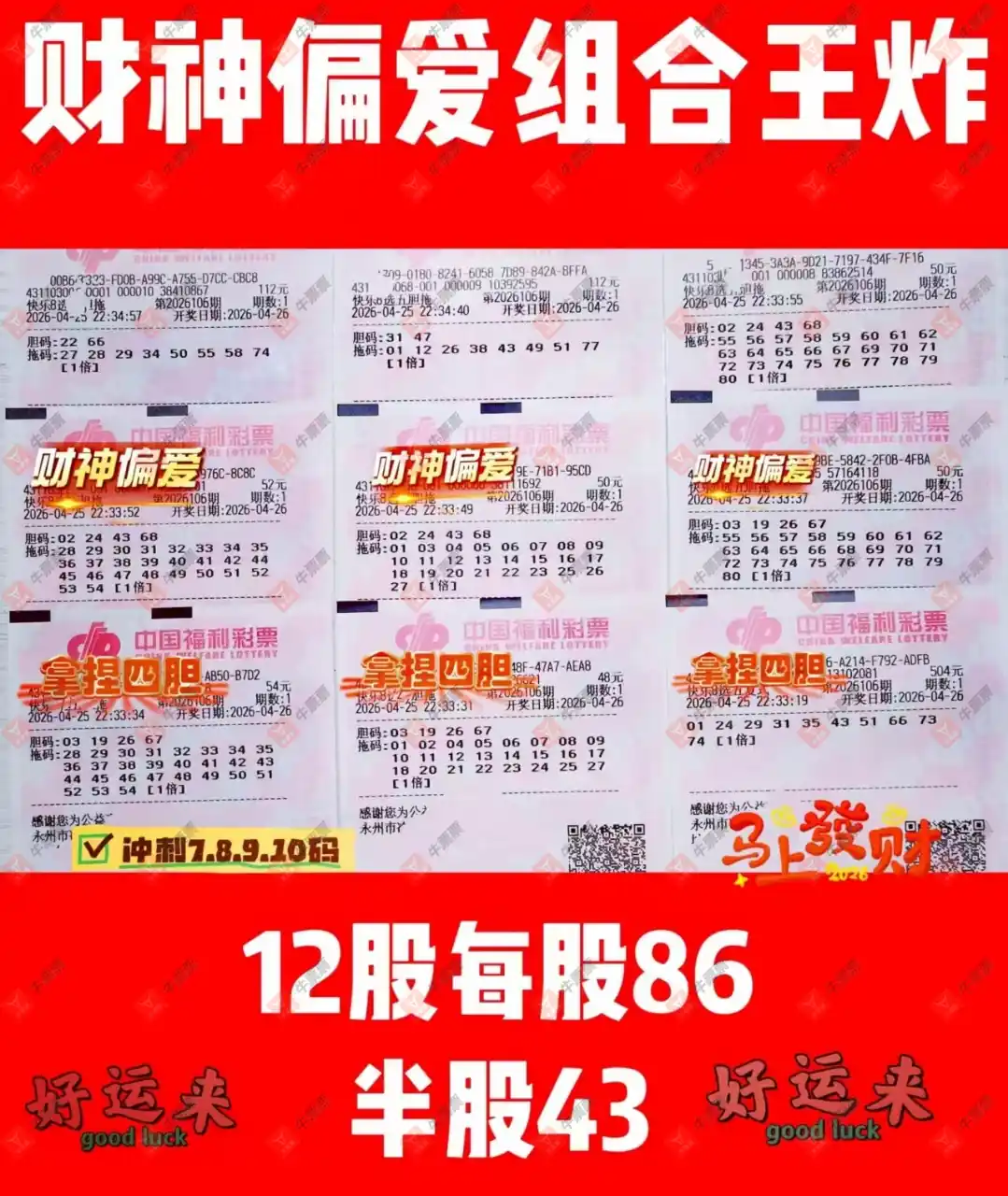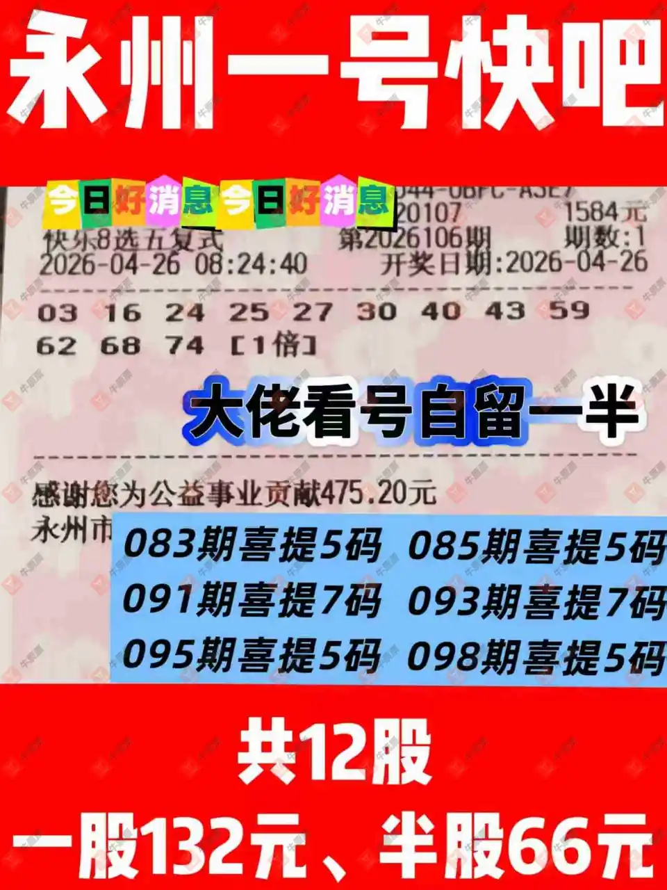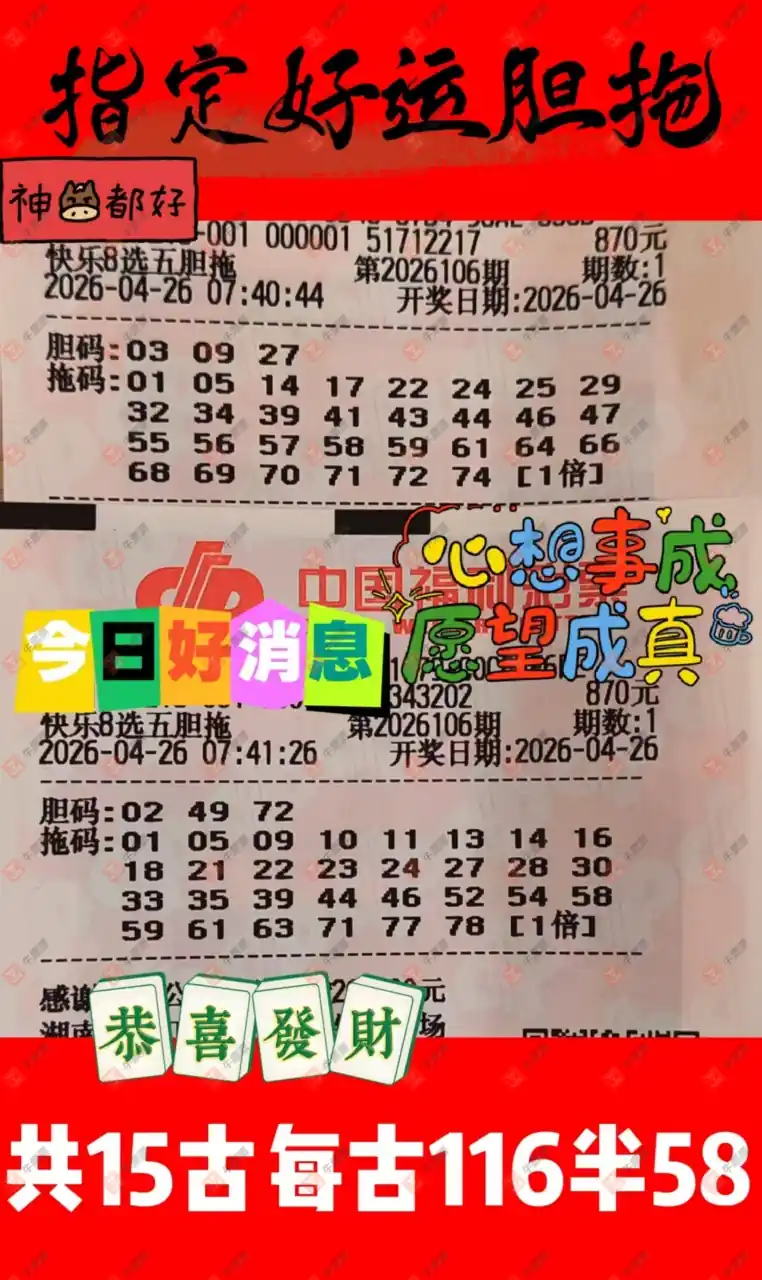 晒中106期快八合买票参考