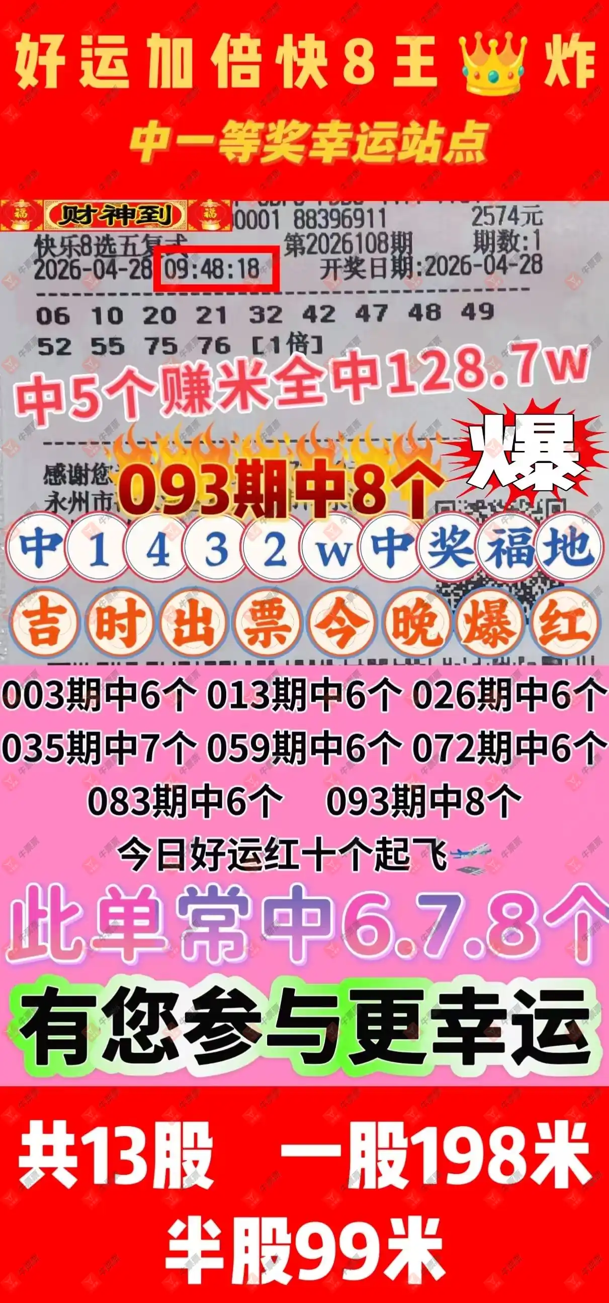 晒中108期快八合买票参考