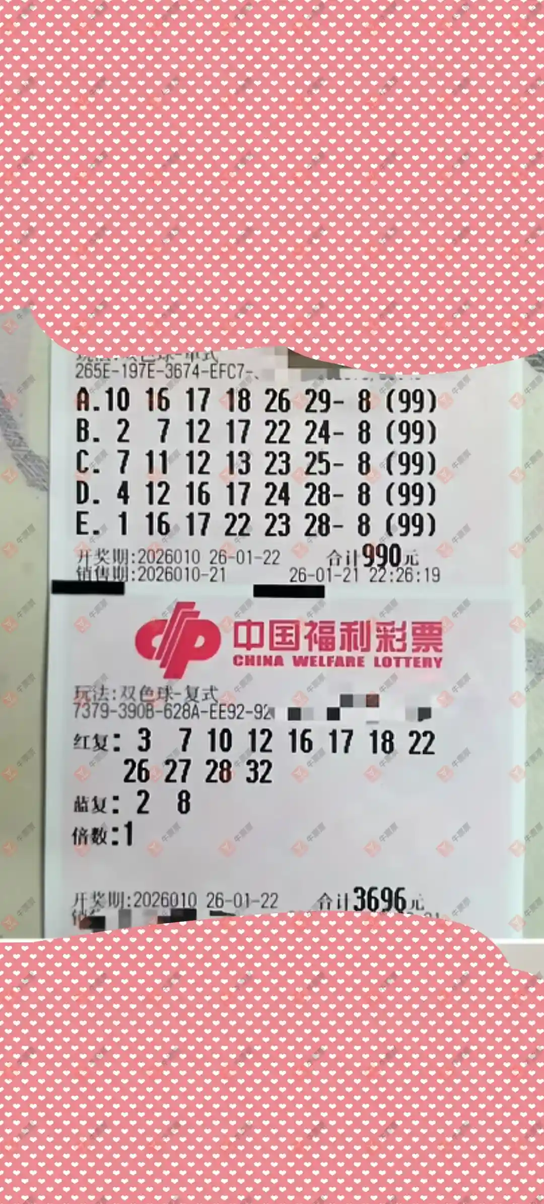 双色球多组实票参考,可参与