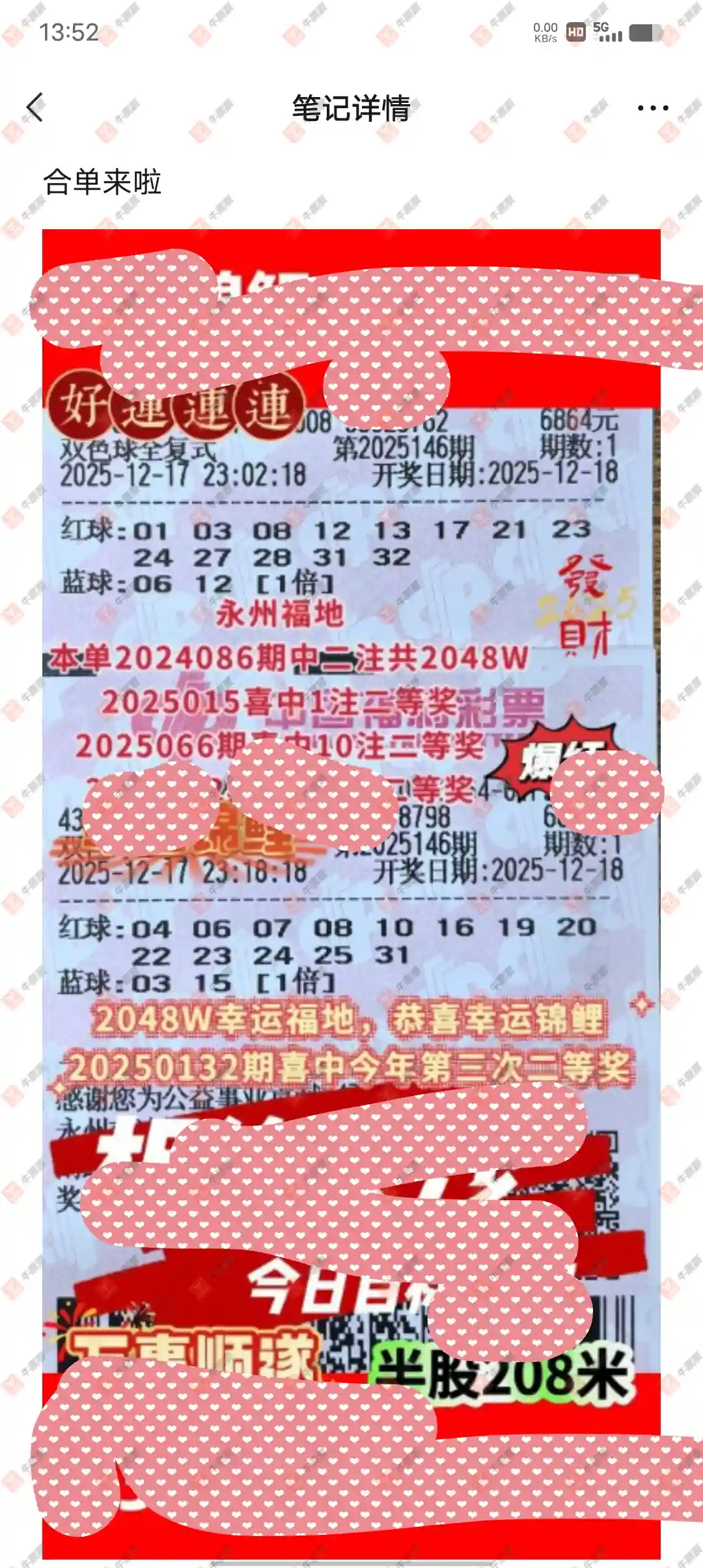 145期双色球合买票