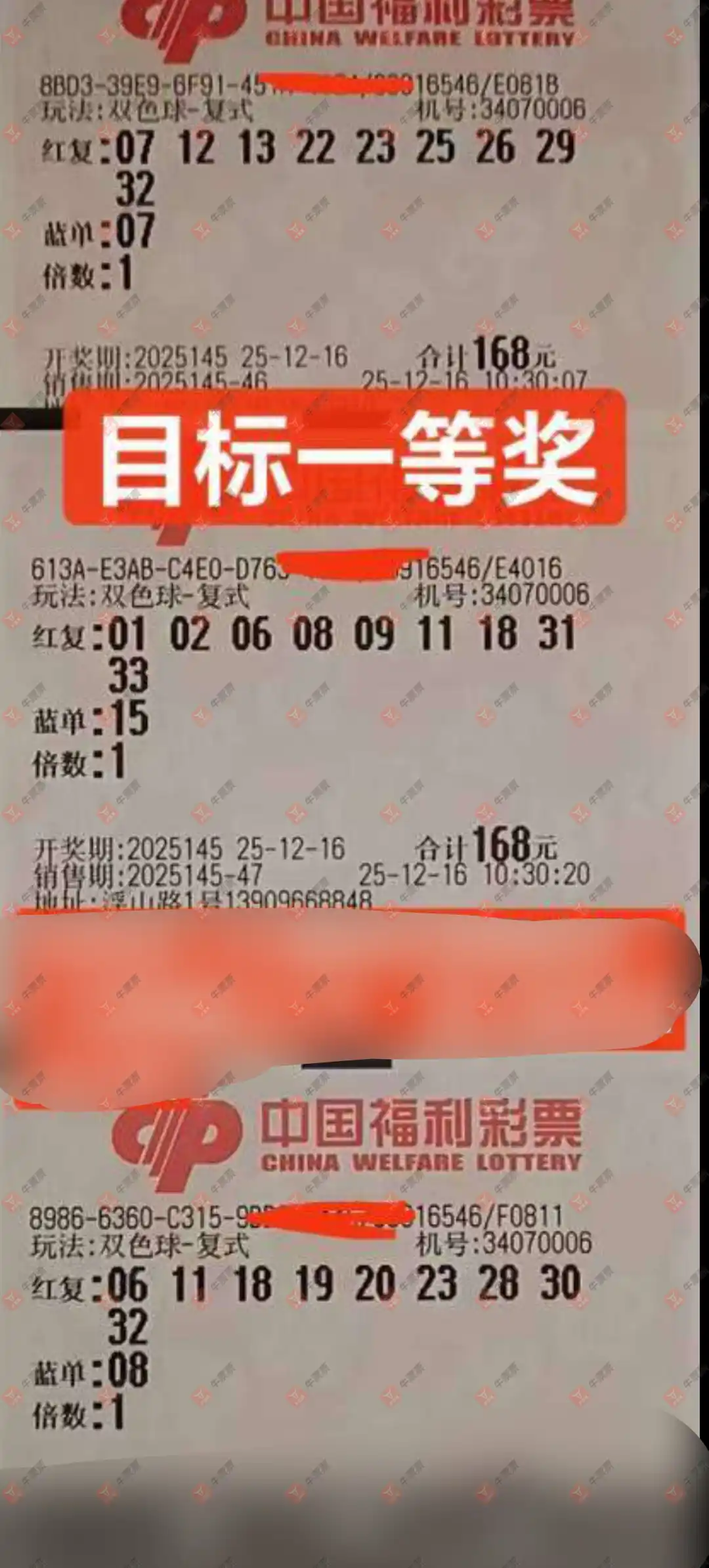 145期双色球合买票