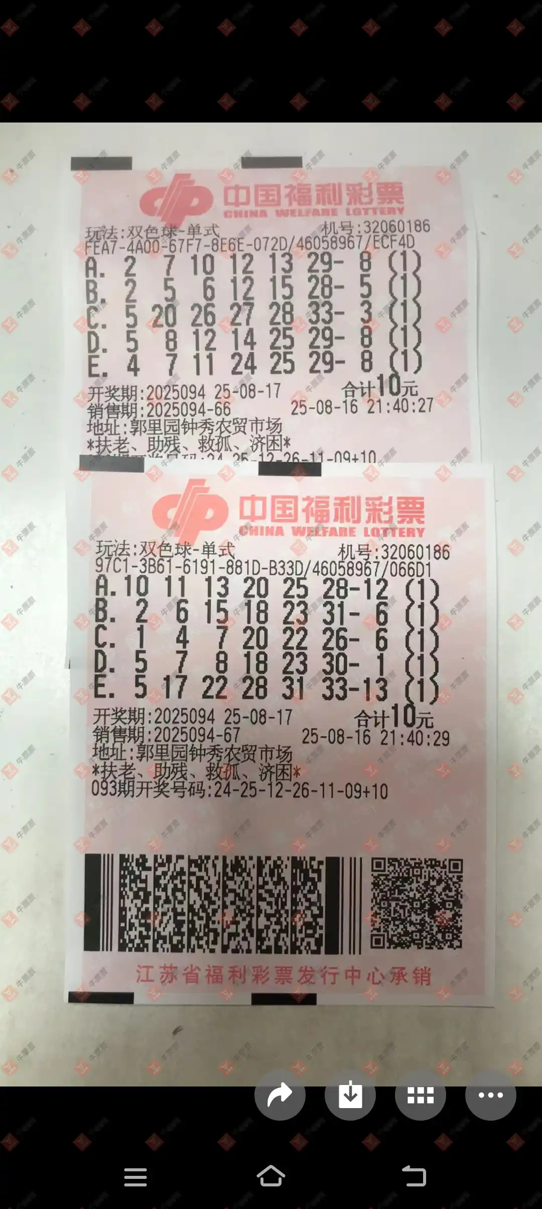 双色球 2025095期 晒中