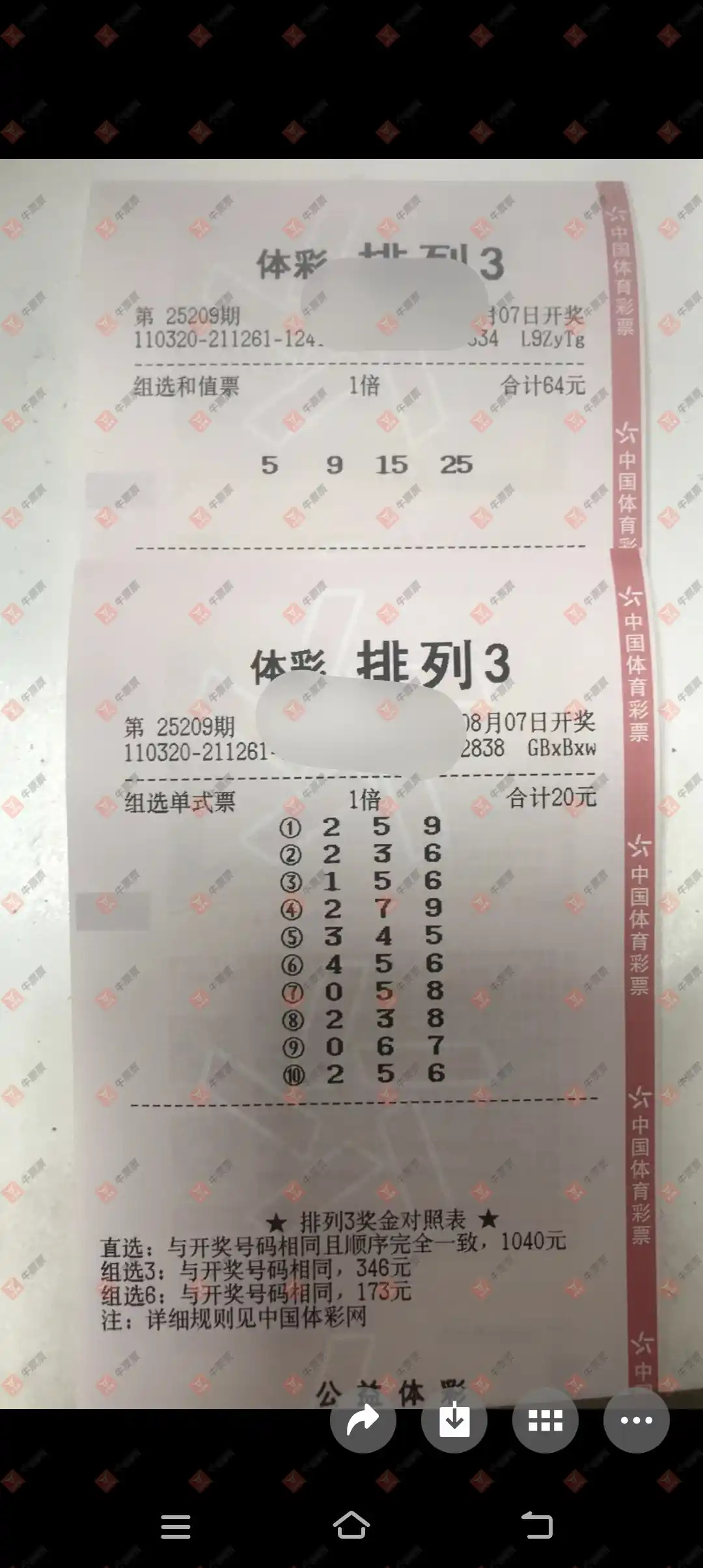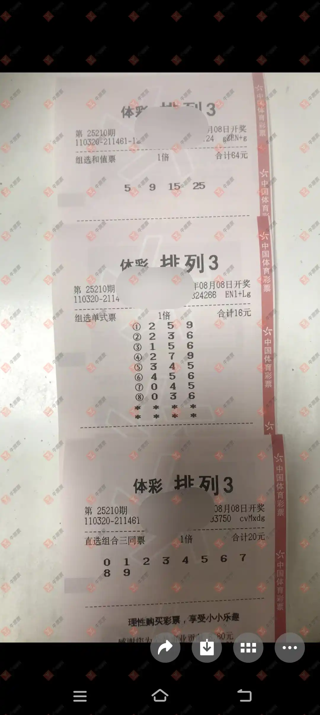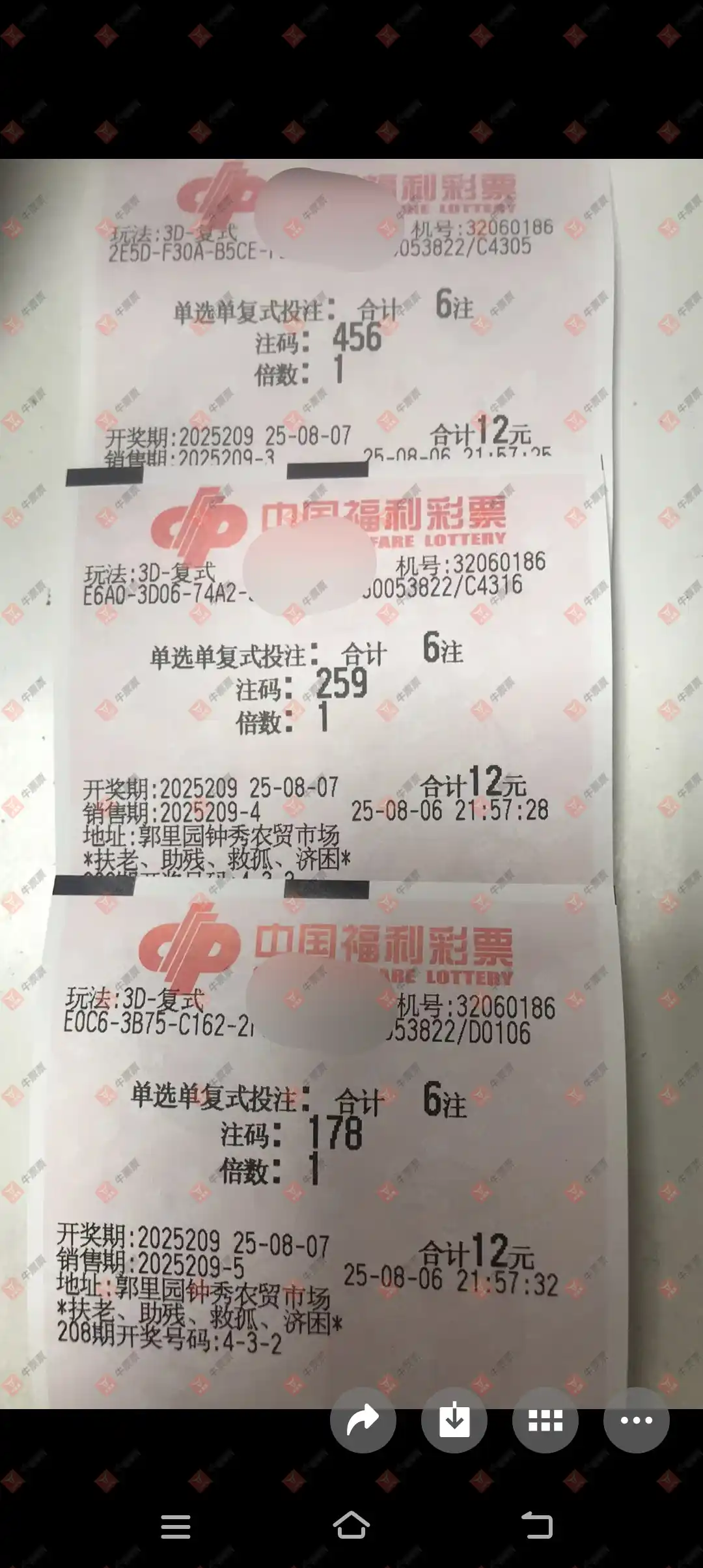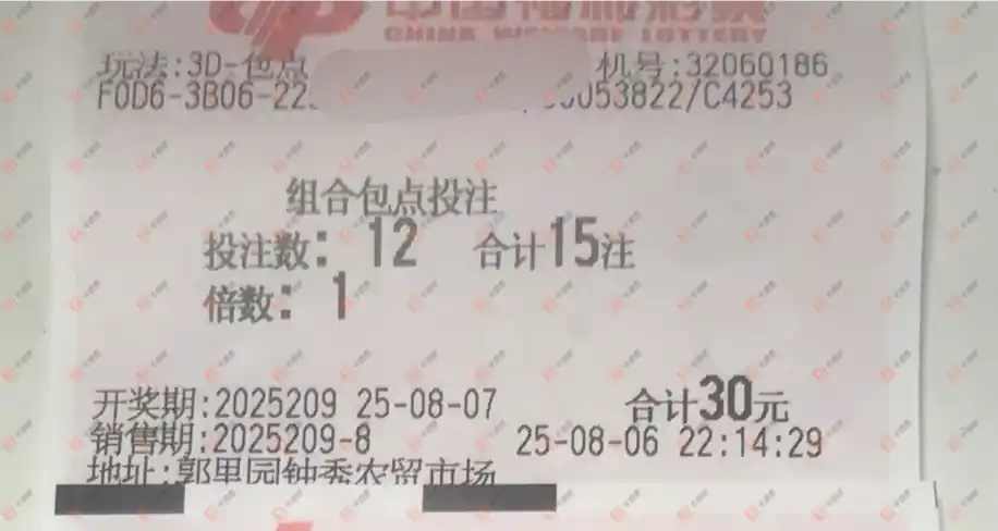 福彩3D 2025208期 晒中