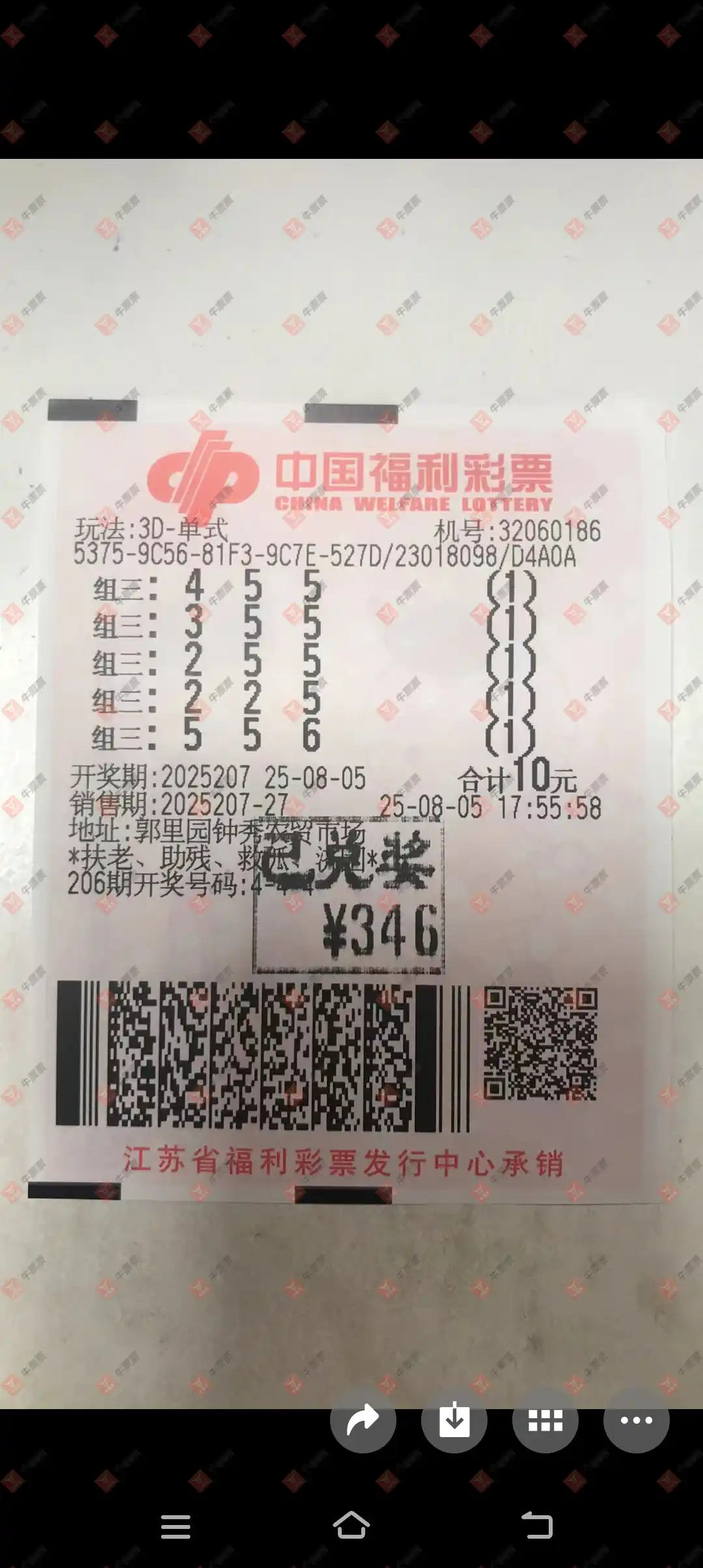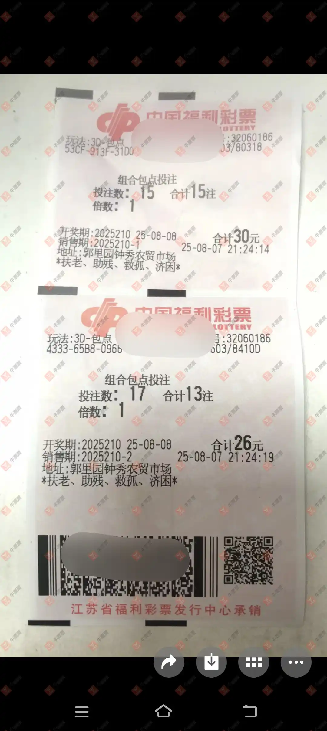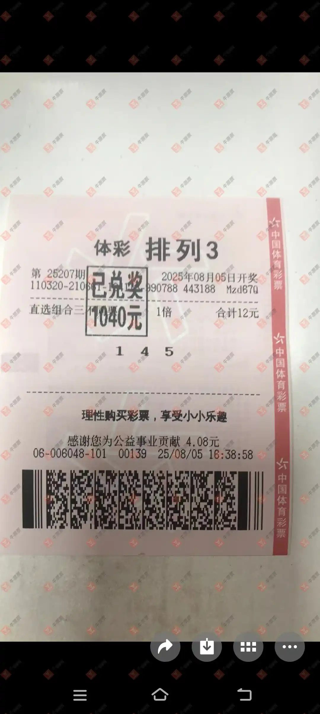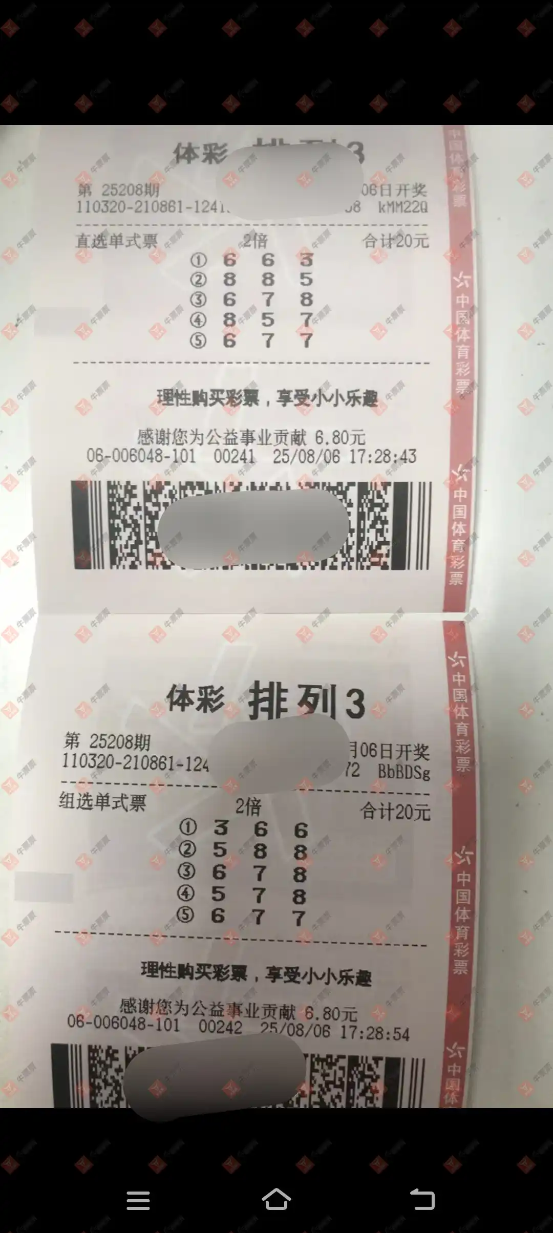 福彩3D 2025208期 晒中