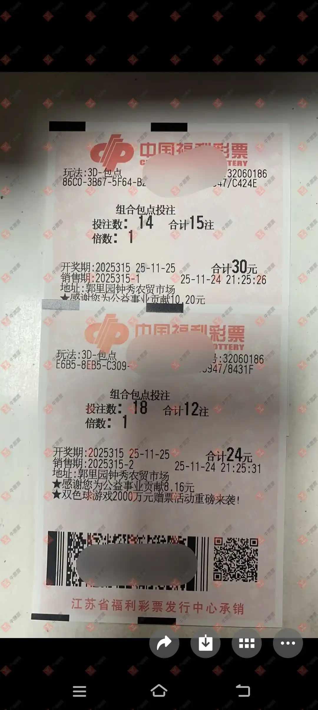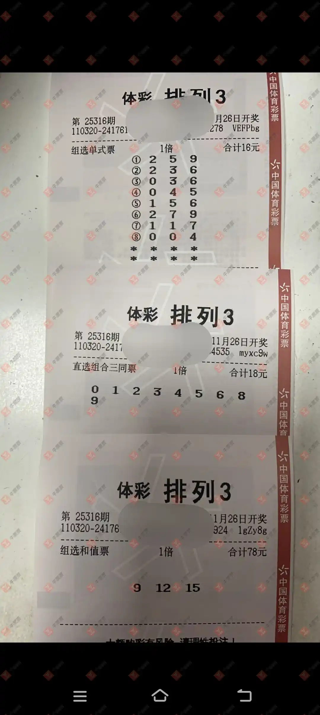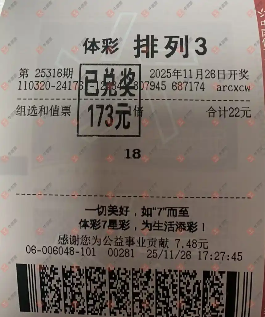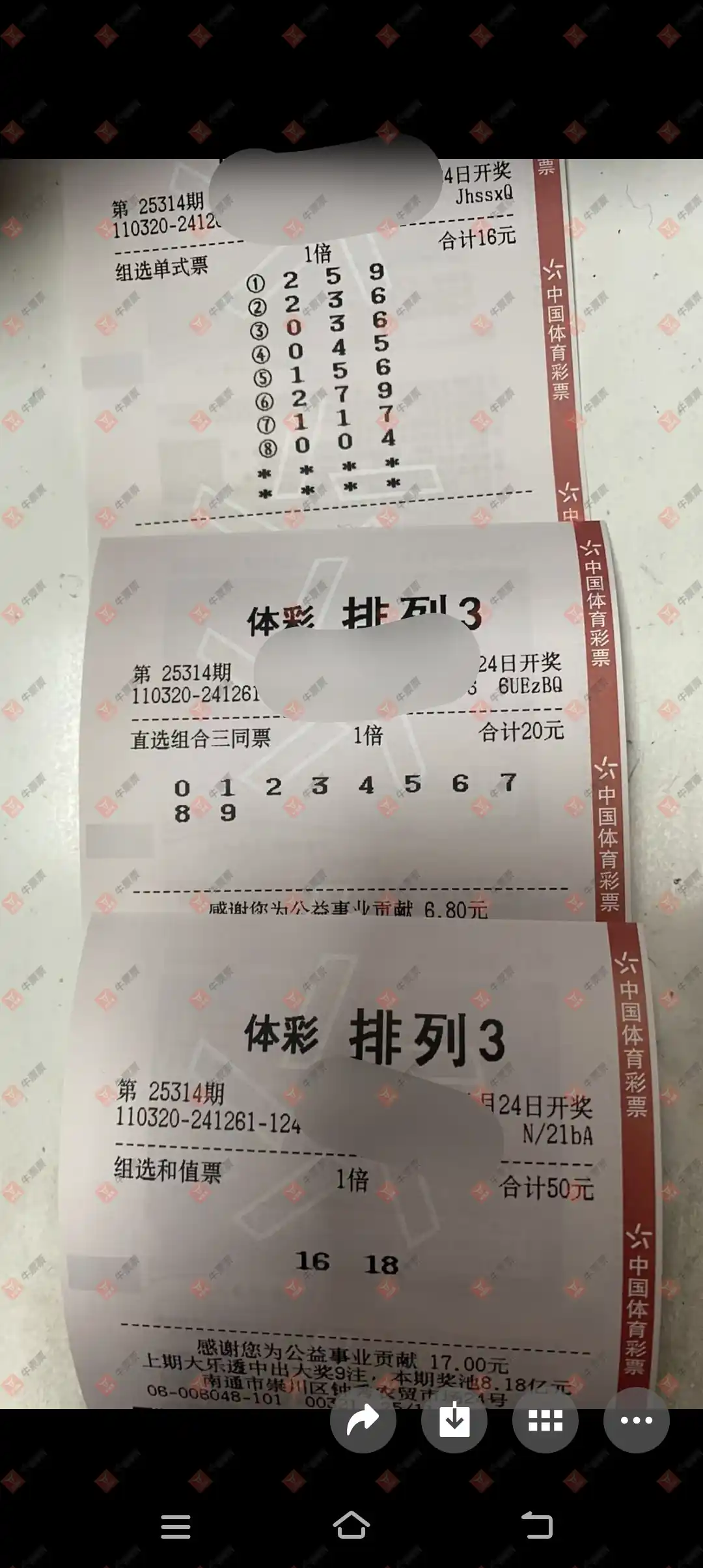 福彩3D 2025318期 晒中