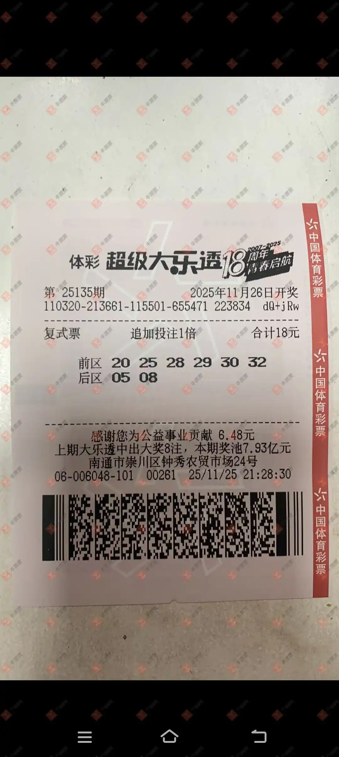 双色球 2025136期 晒中