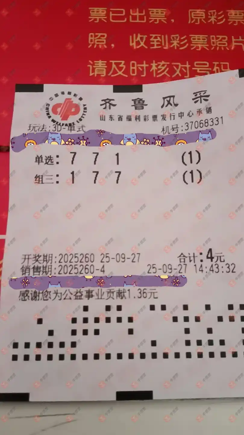 福彩3D 2025259期