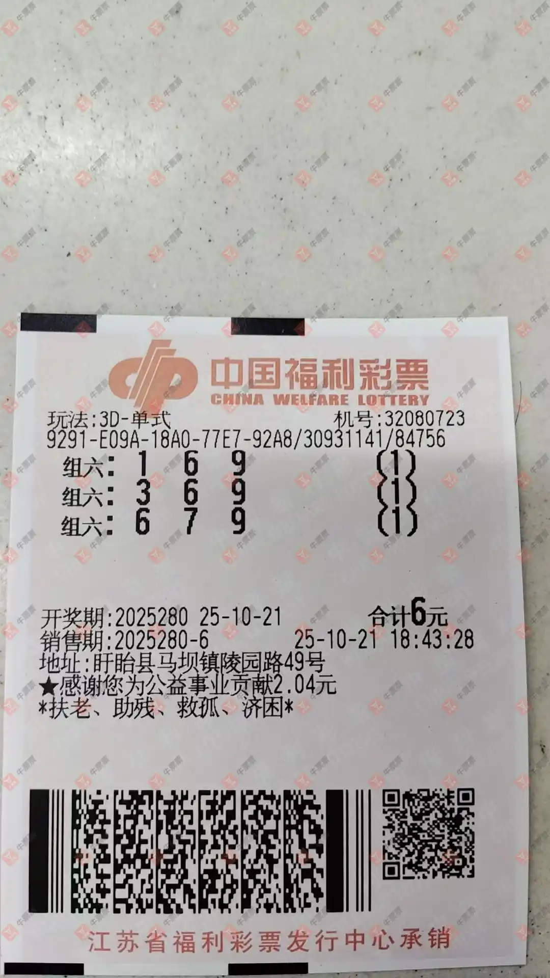福彩3D 2025283期