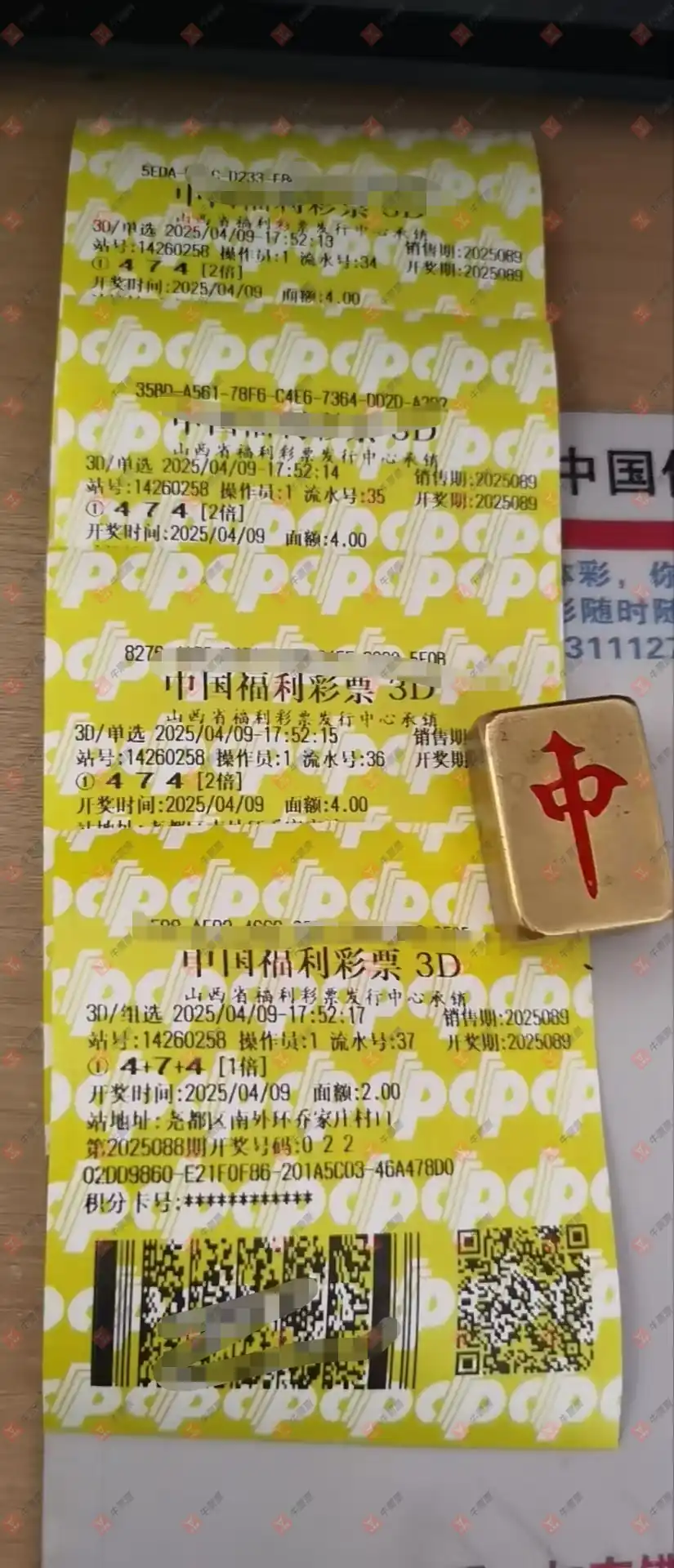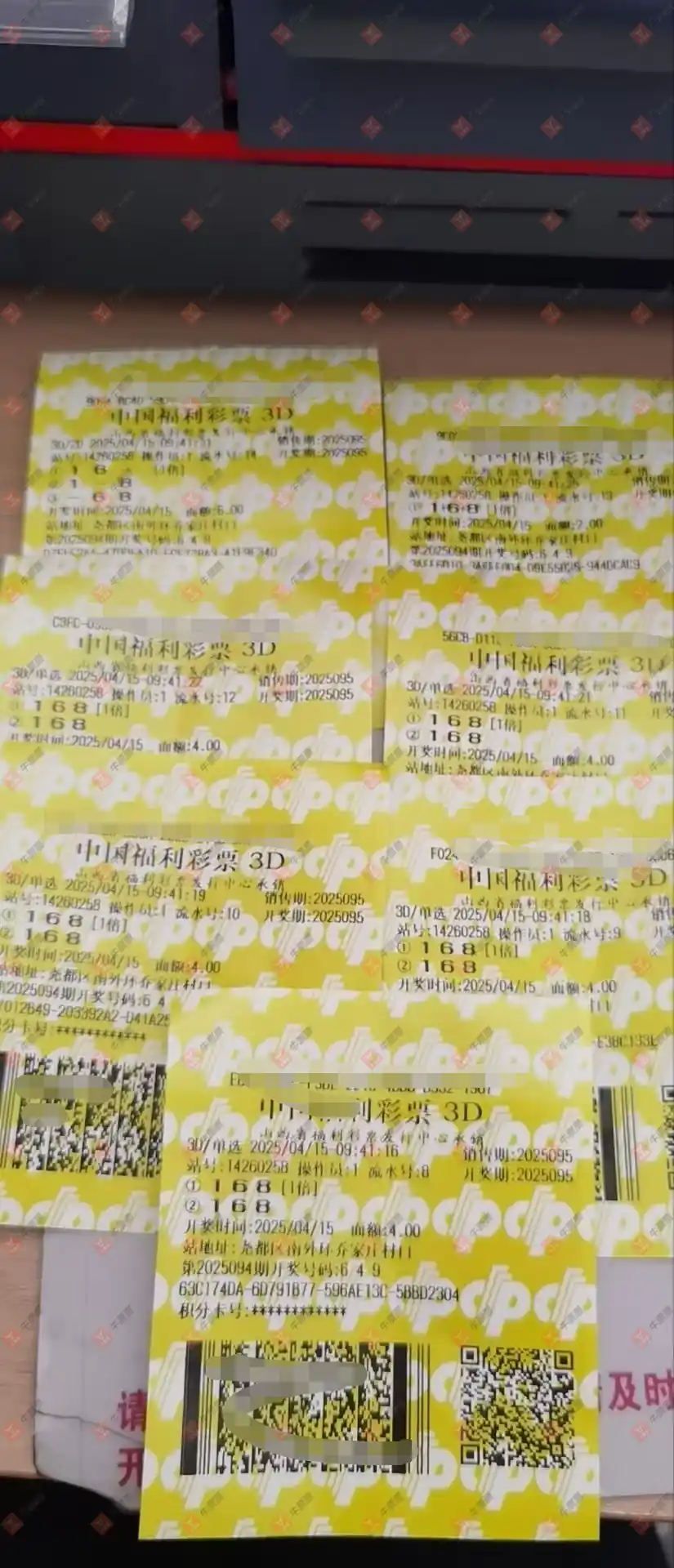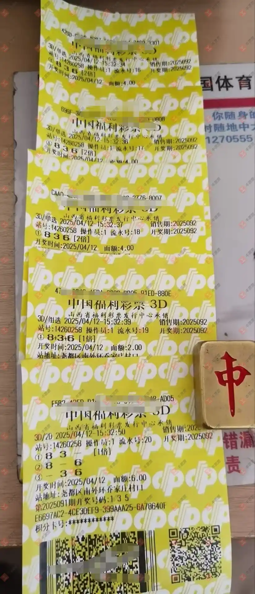福彩3D 2025095期 晒中