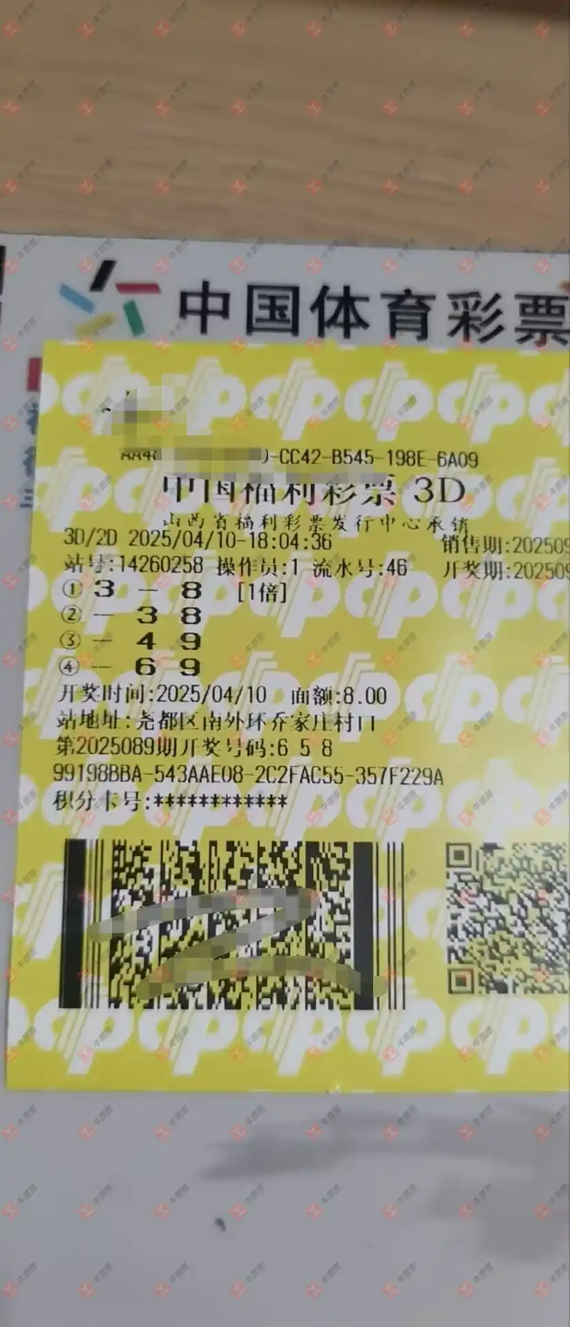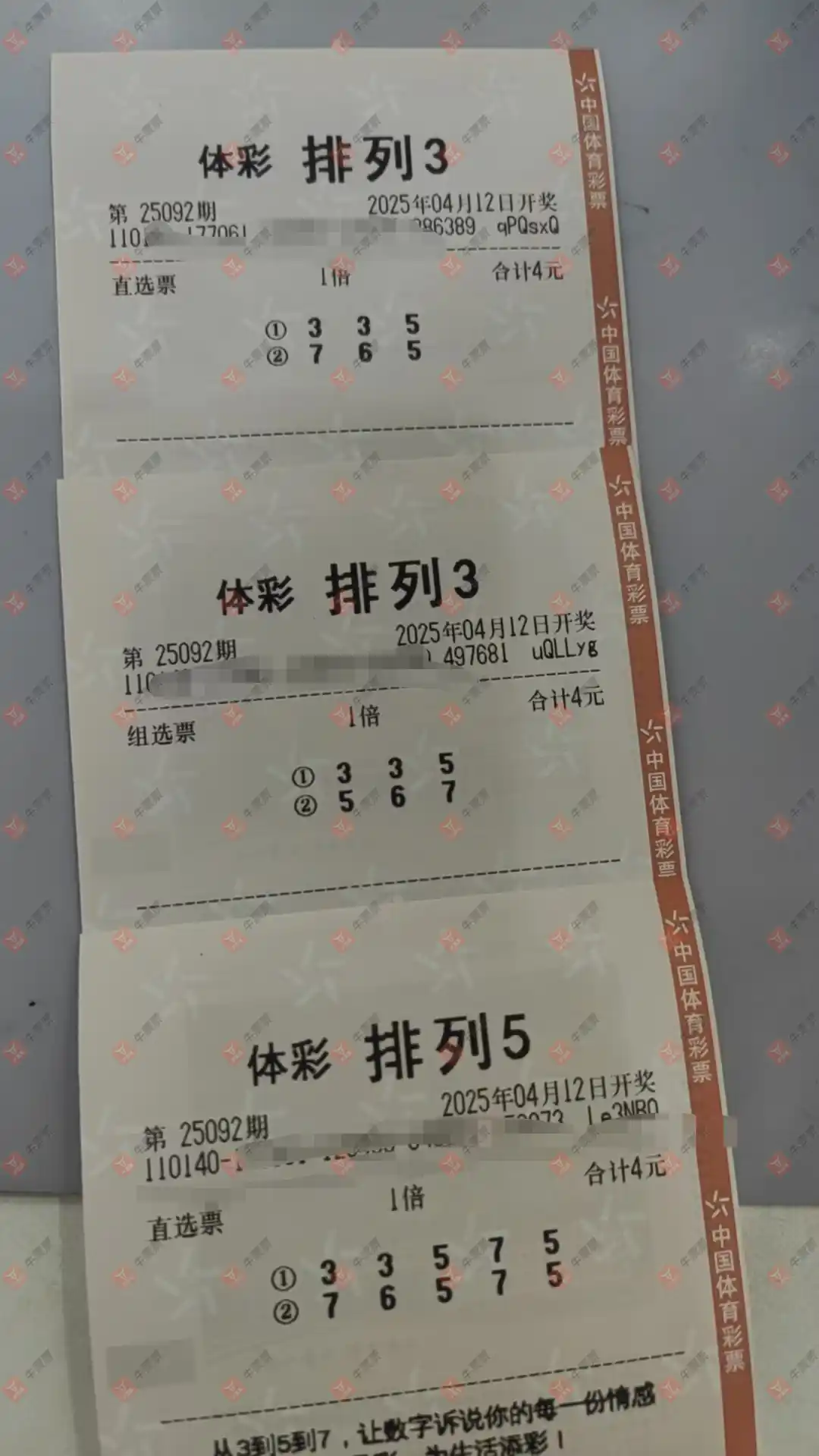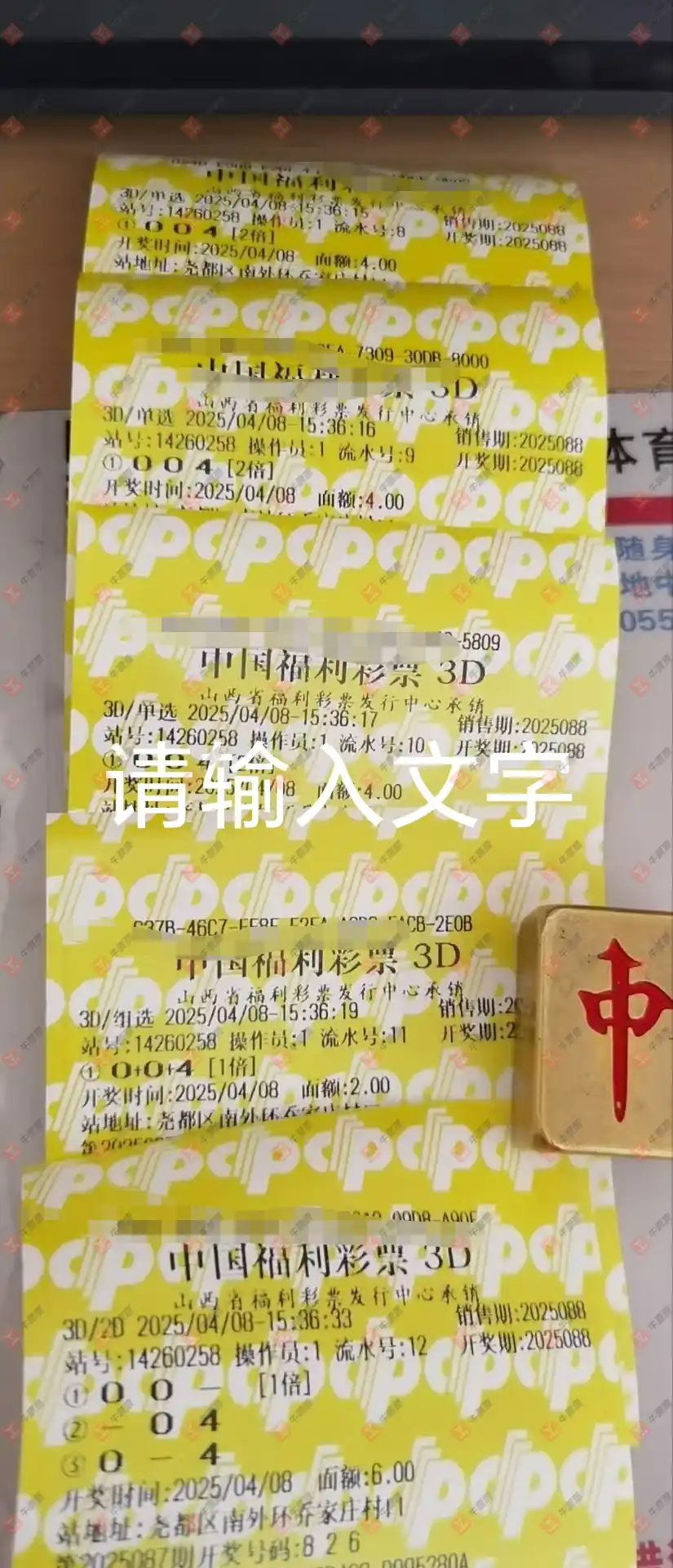 福彩3D 2025095期 晒中
