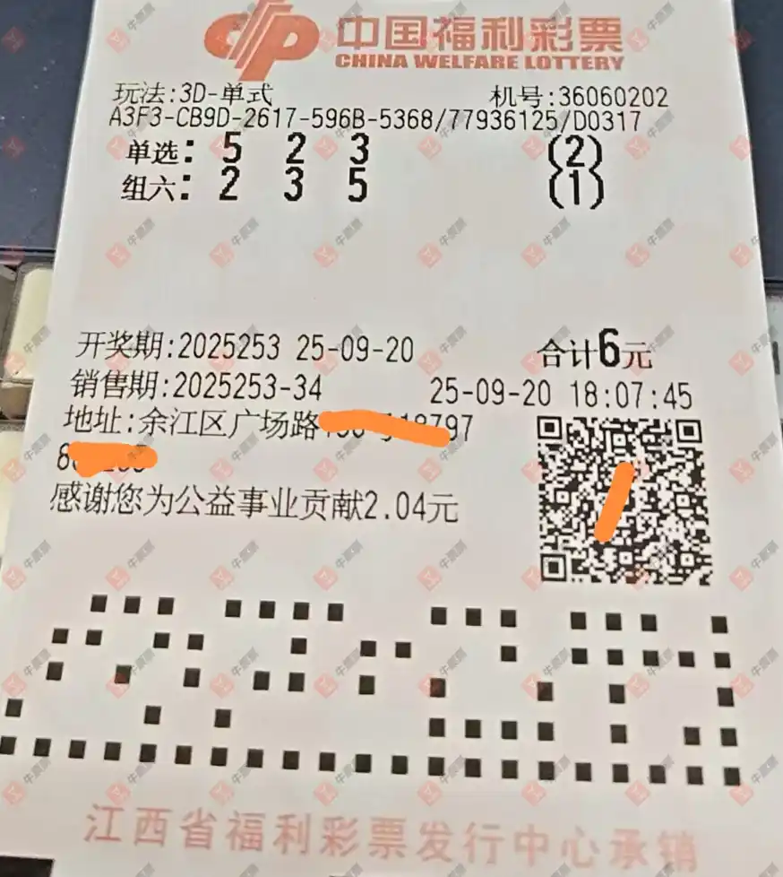 福彩3D 2025253期