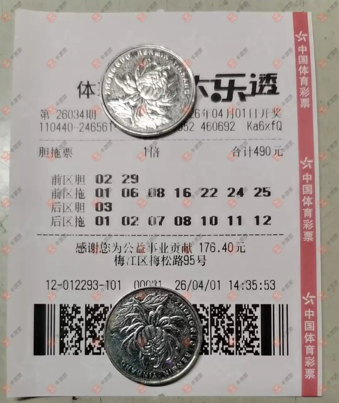 大乐透 2026035期 晒中