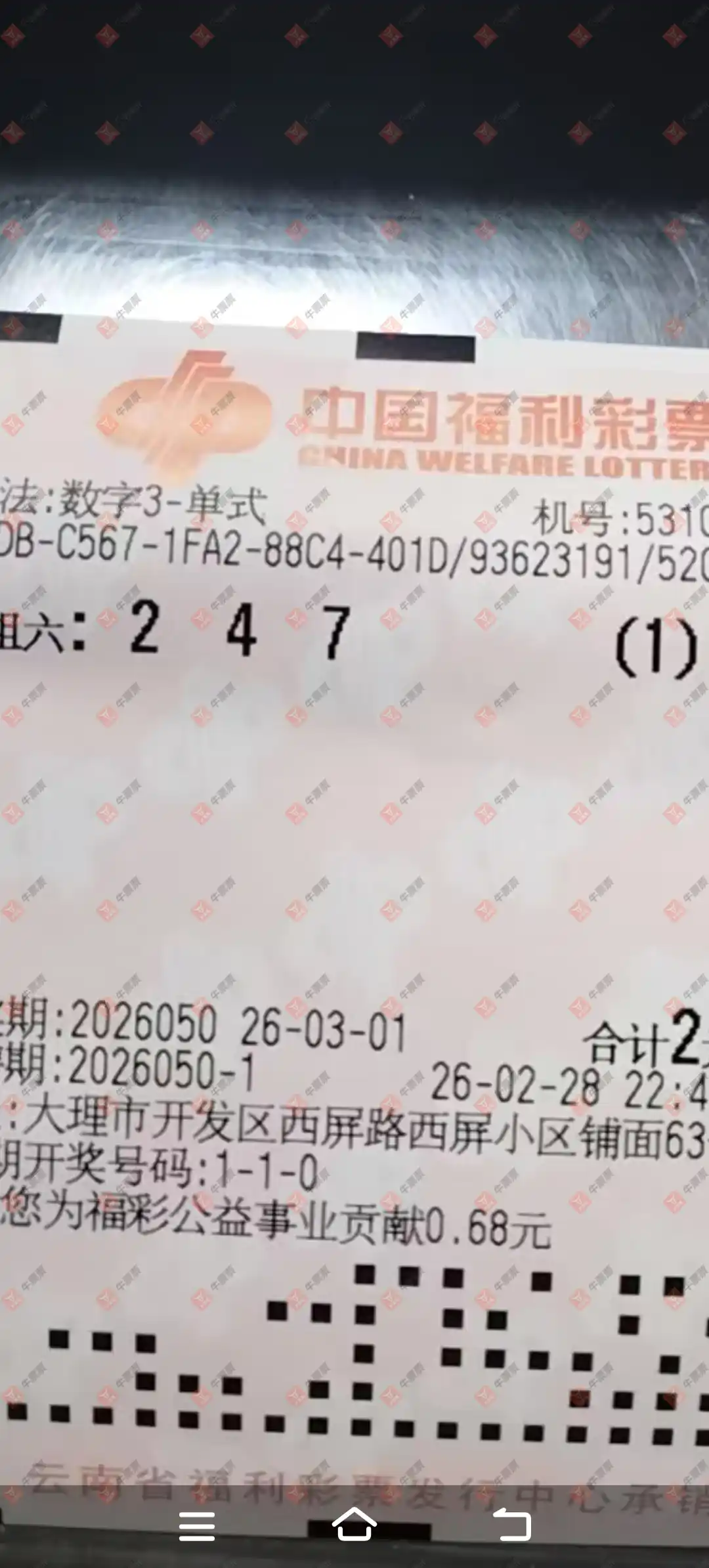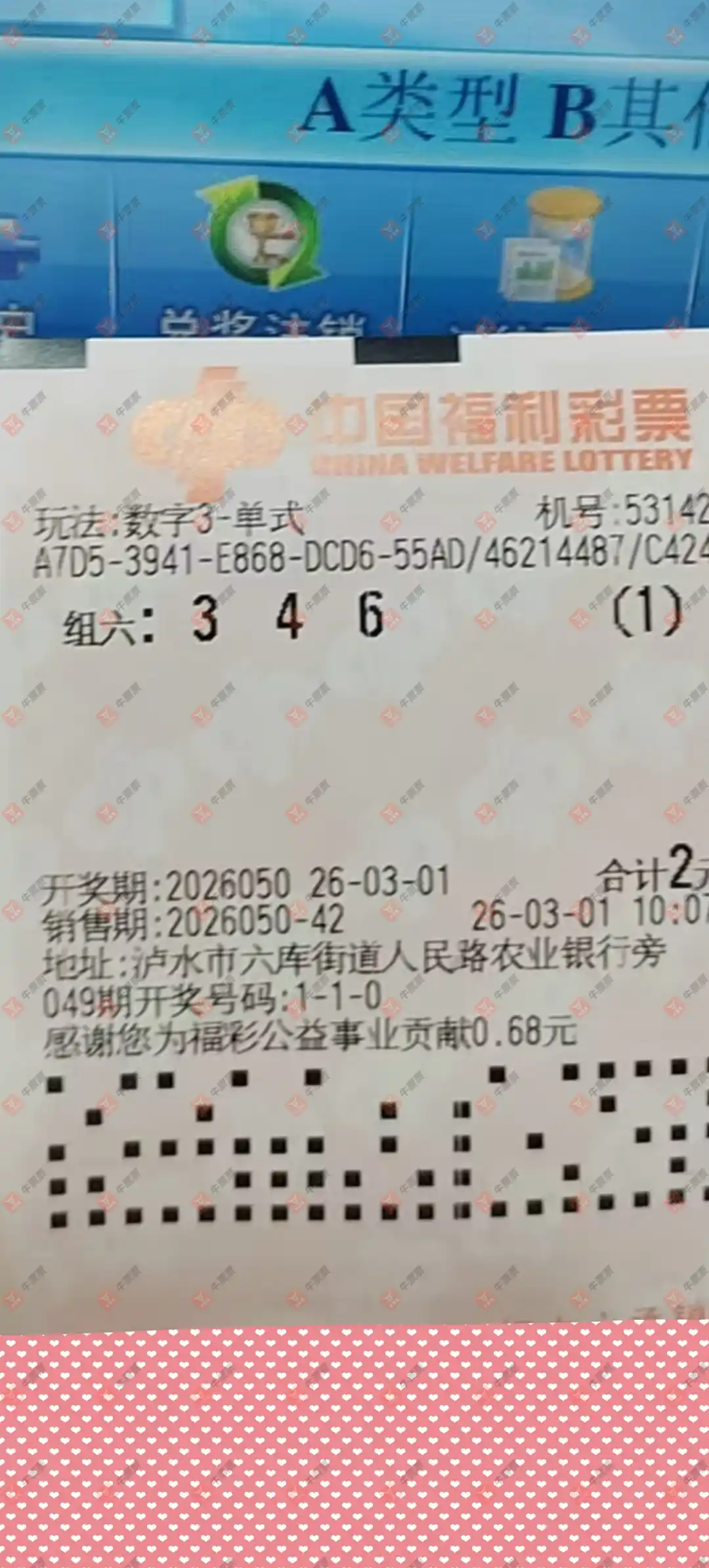 福彩3D 2026049期 晒中